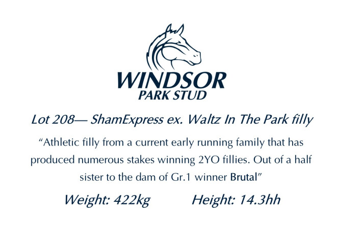 SHAMEXPRESS (NZ) (Bay 2009-Stud 2014). 3 wins-1 at 2-to 1200m, VRC Newmarket H., Gr.1. Leading NZ First Season Sire in 2017-18. Sire of 100 rnrs, 51 wnrs, inc. SW Embrace Me (MVRC Typhoon Tracy S., Gr.3), Cyber Attack, London Express, Qiji Express - Happy Qiji (H.K.), SP Diva Express and of Hard Press, Dune Field, Bothered, Coventina Bay, Dor Dor, Express Dreams, Express Fantasy, Fairy Me Home, Gunga Din, Tiny Terror, etc. 1st dam WALTZ IN THE PARK, by Thorn Park. Placed at 3 in NZ and Aust. Sister to TE AKAU ROSE, three-quarter-sister to ALBERTON PARK, MAGIC BRIAR, half-sister to Alberton Princess (dam of BRUTAL, TALARIA), Dancing Bridges (dam of TESTARHYTHM), Alberton Rose (dam of CAVALRY ROSE). This is her sixth foal. Dam of four foals to race, two winners- Beerinawineglass (f. by Mastercraftsman). Winner at 1400m, 2d BRC Doomben 10000 P. Yulong Express (g. by Shamexpress). Winner at 1200m in Singapore. Switch Play (c. by Shamexpress). Placed at 2 in 2019-20, 3d ATC Too Darn Hot at Darley 2YO H. Shammgod (f. by Shamexpress). Placed at 3 in 2019-20 in Aust. 2nd dam STRAUSSBRIDGE, by Straussbrook. 2 wins at 2 at 1000m, Counties Challenge S., L. Half-sister to ALBERTON STAR (dam of LADY ALBERTON, ALBERTON PARK), SIR ALBERTON, Alberton Magic (dam of MAGIC BRIAR). Dam of 9 foals, 8 to race, 6 winners, inc:- TE AKAU ROSE (Thorn Park). 3 wins-2 at 2-at 1200m, NZ$131,335, Matamata Breeders' S., Gr.2, 2d Taranaki 2YO Classic, Gr.3, CJC Canterbury Belle S., L, Wanganui JC Fillies' S., L. Dam of 5 winners- Wassergeist (Fastnet Rock). 4 wins at 1200m, 1400m in Aust. and Singapore, MRC Chandler Macleod P., 3d MRC Gothic S., L. Shapita (Foxwedge). 3 wins-1 at 2-at 1100m, 1200m, A$91,790, WATC Yellowglen H., 2d WATC Placid Ark S., L, 4th WATC Burgess Queen S., L. Alberton Princess (Golan). 2 wins at 1400m, Counties RC Briscoes Pukekohe H., 3d Taranaki 2YO Classic, Gr.3. Dam of 4 winners- BRUTAL (O'Reilly). 5 wins-1 at 2 and 3 in succession-1200m to 1600m, A$2,632,150, to 2019-20, ATC Doncaster H., Gr.1, Premiere S., Gr.2, VRC Antler Luggage P., L, MVRC Mitchell McKenzie S., L, MRC Ladbrokes.com.au 2YO H., 2d ATC George Ryder S., Gr.1, 3d ATC Sydney S., Gr.3, Southern Cross S., Gr.3. TALARIA (O'Reilly). Winner at 2 at 1100m, Counties RC Murdoch Newell S., L. Dancing Bridges (Danske). Winner at 2 at 1200m, STC Vodka Cruiser 2YO H., 2d AJC Reginald Allen H., L, 3d AJC TL Baillieu H., L. Dam of- TESTARHYTHM (Testa Rossa). 5 wins-1 at 2-1200m to 1350m, A$342,250, Gosford RC Takeover Target S., L, ATC Latch-On Education Program H., Perfection Fresh H., 3d STC Run to the Rose H., Gr.3. Alberton Rose. 3 wins at 1200m, Waikato RC Ready to Run Sale H. Dam of- CAVALRY ROSE (Charge Forward). 3 wins-2 at 2-at 1200m, A$437,750, MRC Thoroughbred Club S., Gr.3, ATC Inglis 2YO Classic, 2d ATC Magic Night S., Gr.2, 4th MVRC Red Anchor S., Gr.3, ATC Reginald Allen H., L, Canberra RC Black Opal S., L. Producer. |