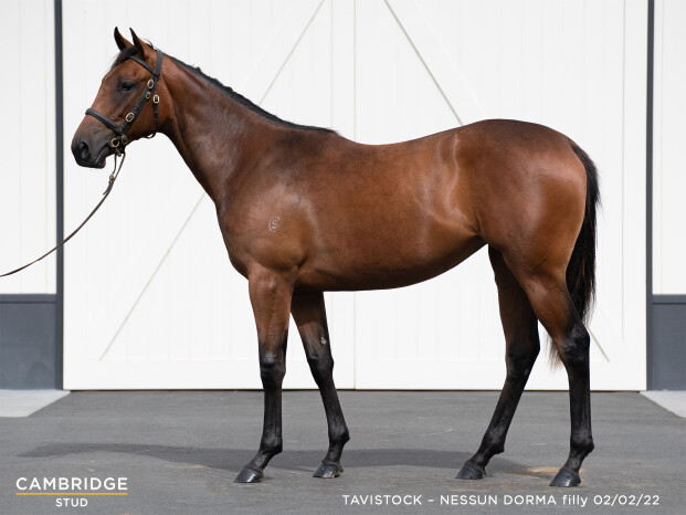 TAVISTOCK (NZ) (Bay 2005-Stud 2010). 6 wins-1 at 2, Waikato Draught Sprint, Gr.1. Champion Sire in Hong Kong in 2015-16. Sire of 595 rnrs, 396 wnrs, 33 SW, inc. SW Werther (HKJC Queen Elizabeth II Cup, Gr.1), Tarzino, Tavago, Johnny Get Angry, Volkstok'n'barrell, Toffee Tongue, Tavi Mac, Entriviere, The Holy One, Tavidream - Circuit Glory (H.K.), Hasselhoof, Tralee Rose, Tomelilla, Hiflyer, Gunstock, Flying Mascot, etc. 1st dam NESSUN DORMA, by Lawman. Placed at 3 in France. Half-sister to NOW WE CAN, NEW HARZBURG, Now Again, Now Forever. This is her third foal. Her second foal is a 2YO. Dam of one foal to race- L'Operateur (g. by Siyouni). Winner at 7½f in 2021 in GB. 2nd dam NOTRE DAME, by Acatenango. 3 wins at 2000m, 2200m in Germany. Sister to NOEL, half-sister to NOROIT. Dam of 13 foals, 12 to race, 9 winners, inc:- NOW WE CAN (Martillo). 7 wins-5 in succession-1900m to 2900m, €273,900, US$155,840, Grand Prix de Chantilly, Gr.2, Longchamp Prix Lord Seymour, L, Chantilly Prix Meydan Hotel, 2d Grand Prix de Chantilly, Gr.2, Belmont Gold Cup Invitational S., L, Lyon-Parilly Prix Bedel, L, 3d Chantilly Prix du Conseil de Paris, Gr.2, Saint-Cloud Prix Maurice de Nieuil, Gr.2, Belmont Gold Cup Invitational S., Gr.3, Saint-Cloud Prix de Boulogne, L, 4th Woodbine Canadian International S., Gr.1, Chantilly Prix de Barbeville, Gr.3, La Coupe de Maisons-Laffitte, Gr.3. NEW HARZBURG (Siyouni). 2 wins at 2200m, 4000m in Germany, Mülheim Silbernes Band der Ruhr, L, 4th BMW Preis Düsseldorf, L. Now Again (Lomitas). 4 wins at 1850m, 2000m in Germany, 2d Hannover Grosser Preis des Hannover Airport, L, 4th Hamburg Credit Suisse Rennen, L, Krefeld Preis der Sparkasse, L, Munich Nereide Rennen, L. Now Forever (Tiger Hill). Winner at 1750m in Germany, 2d Baden-Baden Preis der BHF Bank, L, 4th Munich Dallmayr Coupe Lukull, L. Dam of- Now We Know (Kendargent). 3 wins 1600m to 2350m, €149,900, to 2021, Deauville Prix Valparaiso Sporting Club, 2d Deauville Prix Quincey, Gr.3, 3d Chantilly Prix Le Fabuleux, L, Grand Prix du Nord, L, Deauville Prix Nureyev, L, 4th Craon Prix Haras de la Haie Neuve, L. Nota Bene. 2 wins at 2400m, 2500m, 2d Deauville Prix de la Cour. Dam of- Not After Hours (Wiener Walzer). 2 wins at 2000m, 2400m, 3d Toulouse Prix Panacee, L, Grand Prix de Clairefontaine, L, 4th San Sebastian Copa de Oro de San Sebastian, L, Nantes Derby de l'Ouest, L. 3rd dam Noble Princesse, by Windwurf. Winner at 2000m in Germany, 2d Dortmunder Stutenpreis, L. Sister to NOBLE ROI, NOUVEAU ROI, three-quarter-sister to New Wonder, half-sister to NIGHT BLUE (dam of NEW MOON, NOUVELLE REINE), NOILLY PRAT, NOSTRO AMORE (dam of NOBLE PRINCE). Dam of 9 foals, 8 to race, 7 winners, inc:- NOROIT (Monsun). 2 wins at 2011m, 2464m, Frankfurt Europachampionat, Gr.2, 2d Munich Grosser Preis Dallmayr Bayerisches Zuchtrennen, Gr.1, 3d Grosser Preis von Baden, Gr.1, Cologne Preis von Europa, Gr.1. NOEL (Acatenango). Champion Older Male Stayer in Italy in 1999 & 2000. 11 wins-3 in succession-2000m to 2916m, Milan Premio Federico Tesio, Gr.3, Rome Premio Roma Vecchia, L, Mülheim Mulheim Steher Cup, L. |