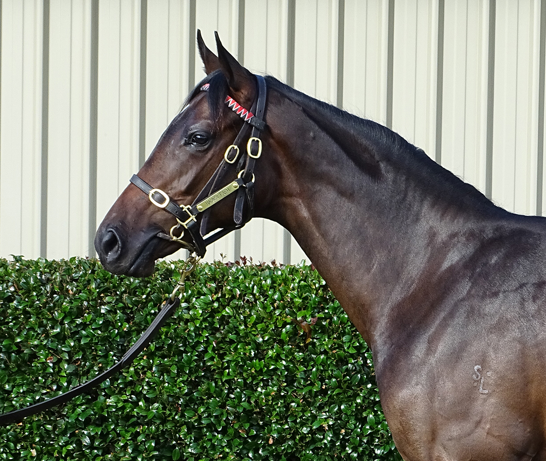 IFFRAAJ (GB) (Brown 2001-Stud 2007). 7 wins-1 at 2, Goodwood Lennox S., Gr.2. Leading NZ Sire of 2YOs in 2015-16. Sire of 1434 rnrs, 856 wnrs, 72 SW. His SH-bred progeny inc SW Gingernuts (New Zealand Derby, Gr.1), Jon Snow, Turn Me Loose, Wyndspelle, Fix, Serena Miss, Melt, Who Dares Wins, Kisses, Order Again, So Wotif, etc. His NH-bred progeny inc SW Ribchester, Rizeena, Jungle Cat, Chriselliam, etc. 1st dam STRICTLY TIME, by O'Reilly. Unplaced. Sister to Filey, three-quarter-sister to Tantamount, Amathea (dam of SAVARIA), half-sister to TEMPLE HILLS, Rosecroft (dam of ALL ABOUT MAGIC). This is her fourth live foal. Her third foal is a 2YO. Dam of two foals to race, inc:- Baxstreetboy - Play to Win (H.K.) (g. by Burgundy). 2 wins at 1200m, 1340m to 2019-20 in NZ and HK, HKJC Harbour H. 2nd dam SOLTANTO, by Tights. 7 wins 1300m to 2200m, NZ$97,640, ARC Clifford P., Gr.2, Farewell H., October H., 2d ARC Championship S., Gr.1, Royal S., Gr.3, 3d Paeroa RC Karaka Bloodstock Mile H., L, 4th New Zealand Oaks, Gr.1. Half-sister to SOLVEIG (dam of GREIG, LADY SOLVIL), QUIBBLE (dam of CROSS SWORDS), REASONING, Solstice (dam of CULMINATE). Dam of 11 foals, all raced, 9 winners, inc:- TEMPLE HILLS (Marju). 6 wins-3 in succession-1400m to 1600m, NZ$125,700, A$82,370, ARC Great Northern Challenge S., Gr.3, SAJC Penny Edition S., L, 2d STC Shannon S., Gr.2, 3d BOP RC Japan-New Zealand International Trophy, Gr.2, MRC Coongy H., Gr.3. Filey (O'Reilly). 5 wins at 1400m, 1600m, NZ$111,700, ARC Ernst & Young H., 2d Waikato RC Gasmate S., Gr.3, 3d Te Aroha JC New Zealand Thoroughbred Breeders' S., Gr.1, Cambridge JC Travis S., Gr.2. Tantamount (Last Tycoon). 6 wins 1200m to 1600m, ARC Lion Red H., 2d Counties RC Auckland Thoroughbred Breeders' S., Gr.2. Producer. Rosecroft. Unplaced. Dam of 3 winners- ALL ABOUT MAGIC (Showcasing). 4 wins-3 at 2-800m to 1400m, NZ$108,800, to 2020-21, CJC Champagne S., L, 2d Otago RC New Zealand Bloodstock Airfreight S., L, 3d CJC War Decree S., Gr.3. 3rd dam SOLILOQUY, by Sobig. 13 wins-3 at 2-at 1200m, 1400m, Waikato RC Lion Brown Sprint, Gr.1, Avondale JC Classic S., Gr.3, Masterton RC Lowland S., Gr.3, 2d ARC Railway H., Gr.1. Half-sister to KUBLA KHAN, COUNT AJAX. Dam of 12 named foals, 11 to race, 9 winners, inc:- SOLVEIG (Imposing). NZ Filly of the Year. 14 wins-1 at 2-1100m to 2400m, New Zealand Oaks, Gr.1, WRC DB 1600 S., Gr.1. Producer. QUIBBLE (Ruling). 7 wins-1 at 2-1200m to 1600m, WRC North Island Challenge S., L, ARC Vancouver H. Dam of 5 winners- CROSS SWORDS (Grosvenor). 10 wins 1100m to 3200m, A$909,506, AJC Sydney Cup, Gr.1, Summer Cup, Gr.3, STC Sky High S., L. Solano. Winner at 1200m. Grandam of- SAVARIA (Savabeel). Top Filly on The 2014-15 NZ 3YO Free H (1600m+). 5 wins 1400m to 3200m, NZ$423,575, A$10,000, New Zealand Oaks, Gr.1, Hawkes Bay Lowland S., Gr.3, Wellington Cup, Gr.3. |