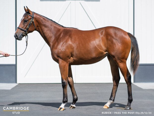 RUBICK (AUS) (Bay 2011-Stud 2015). 3 wins-2 at 2, MRC Schillaci S., Gr.2. Leading Sire of 3YOs in Aust. in 2019-20. Sire of 153 rnrs, 64 wnrs, inc. SW Yes Yes Yes (ATC Todman S., Gr.2), Rubisaki, Condo's Express, SP Jet Propulsion, One Shy Ruby, The Face, Alburq, Biscara, Excess Funds, Montelena, Masseuse, Krameric and of My Ruby, Erno, Rubic Rose, Ruuca, Wilmot Pass, Cafe Rizu, El Buena, Peggy Selene, Belitsa, etc. 1st dam PASS THE POST, by Untouchable. 6 wins 1200m to 1726m, A$123,388, MRC Guinot Skincare H., Le Pine Funerals H., 2d MRC Cove Hotel H., 3d VRC Sportingbet H. Half-sister to FLYING RUBY (dam of FLYING ARTIE). This is her fourth foal. Her third foal is a 2YO. Dam of one foal to race- Something Grand (f. by Artie Schiller). Placed at 2 in 2019-20 in Aust. 2nd dam PARKHILL'S FLYER, by Brigand. Unplaced. Half-sister to BETTER LOOSEN UP, Pure Imagination (dam of ALL IMAGINATION). Dam of 14 named foals, 11 to race, 8 winners, inc:- FLYING RUBY (Rubiton). 6 wins-3 in succession-1200m to 1600m, A$309,662, TRC Bow Mistress S., L, VRC Sunday Herald Sun P., MRC Swell Time H., 2d MRC Mannerism S., Gr.3, NSA Great Strides CF Cup, 3d VRC National Jockey Celebration Day Victoria P., Gr.3, MRC WW Cockram S., Gr.3, TRC Bow Mistress S., L. Dam of 5 winners- FLYING ARTIE (Artie Schiller). Leading 3YO Male on the 2016 WTR (Sprint). Champion 3YO Colt in Australia in 2016-17. 3 wins-1 at 2-to 1200m, A$1,281,000, VRC Coolmore Stud S., Gr.1, MRC Blue Sapphire S., Gr.3, Blue Diamond Prelude (c&g), Gr.3, 2d MRC Blue Diamond S., Gr.1, VRC Maribyrnong P., Gr.3, 3d ATC Golden Slipper S., Gr.1. Belflyer (Bel Esprit). 14 wins 1000m to 1600m, A$1,009,880, ATC Kosciuszko P., 2d Clarence River JC Ramornie H., L. 3rd dam BETTER FANTASY, by Better Boy. 5 wins 1400m to 2400m in Aust. Dam of 14 named foals, 13 to race, 8 winners, inc:- BETTER LOOSEN UP (Loosen Up). Aust. Horse of the Year 1990-91. Champion Older Horse in Australia in 1990-91. 17 wins-1 at 2-1100m to 2400m, A$3,481,125, MVRC WS Cox P., Gr.1, VRC Australian Cup, Gr.1, LKS Mackinnon S., Gr.1, Honda S.H., Gr.1, STC Segenhoe S., Gr.1, WATC Winfield S., Gr.1, Railway S., Gr.1, VRC Turnbull S., Gr.2, Blamey S., Gr.2-twice, MVRC John F Feehan S., Gr.2, Japan Cup, L, AJC Tooheys 2.2 Lite H., NSW Tatt's RC JV Comans H., STC Tooheys Draught Welter H., 2d VRC Australian Cup, Gr.1, AJC Queen Elizabeth Randwick S., Gr.1, STC Canterbury Guineas, Gr.1, SAJC RN Irwin S., Gr.3, VATC Richard Ellis S., L, 3d STC Hill S., Gr.2, VRC Chester Manifold S., L. Pure Imagination. 4 wins-2 at 2-to 1200m, 3d VATC Braeside H. Dam of- ALL IMAGINATION (Loosen Up). 14 wins 950m to 1600m, A$109,515, SAJC Johnnie Walker Classic H., L, Sky Chase Flying H., My Good Man Flying H., A Chorus Line H. Dam of 8 winners-