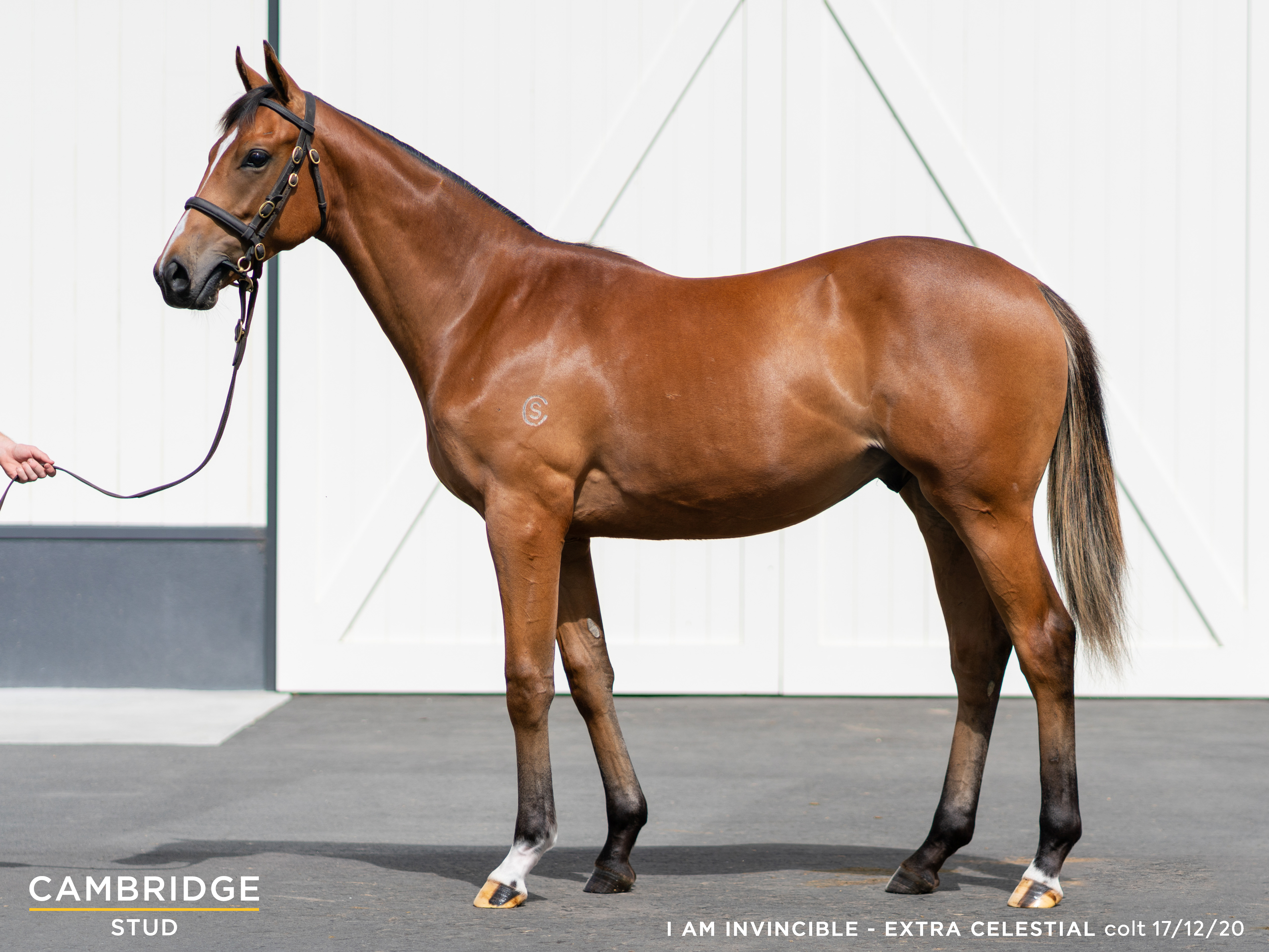 I AM INVINCIBLE (AUS) (Bay 2004-Stud 2010). 5 wins-1 at 2, SAJC DC McKay S., Gr.3. Leading Sire of 2YOs in Aust. in 2018-19. Sire of 695 rnrs, 544 wnrs, 59 SW, inc. SW Loving Gaby (MVRC Manikato S., Gr.1), Brazen Beau, Viddora, I Am a Star, Voodoo Lad, Invincibella, Media Sensation, Oohood, Hellbent, Dame Giselle, Libertini, Fiesta, Illustrious Lad, Pure Elation, Victorem, Invincible Gem, Miss Leonidas, Look to the Stars, etc. 1st dam EXTRA CELESTIAL, by Danehill Dancer. Placed, 2d STC Asbestos Disease Foundation of Australia 2YO H. Half-sister to TURBO STREET, Home on a Wing. This is her sixth foal. Dam of five foals to race, three winners, inc:- SCOTT BASE (g. by Dalghar). Equal Head of the 2017-18 NZ 3YO Free H. 5 wins 1300m to 1600m, NZ$736,750, to 2019-20, Wellington Guineas, Gr.2, BOP RC Japan-New Zealand International Trophy, Gr.2, ARC Karaka Million 3YO Classic, RL, Marton JC Southern Rangitikei Veterinary Services H., 2d CJC Zacinto S., L, 3d WRC Anniversary H., Gr.3, ARC Champagne S., L, Manawatu RC Waka Property Building and Maintenance H., 4th Hawkes Bay Livamol Classic, Gr.1, ARC Avondale Guineas, Gr.2, Taranaki Cup, Gr.3. Golden Organic - Golden Fans (Mac.) (g. by Dalghar). 3 wins-1 at 2-at 1500m in Aust. and Macau, ATC Hyland Race Colours 2YO H., 2d ATC Tab.com.au 2YO P. Shaman (g. by Dalghar). Winner at 2100m, 3d ATC Friday Night Racing H., Cabra-Vale Diggers P. 2nd dam EXTRA TERRESTIAL, by Quest for Fame. 2 wins at 1200m, 1550m, STC Rooty Hill RSL H. Half-sister to HOTEL GRAND, OUTBACK PRINCE. Dam of 10 named foals, 9 to race, 6 winners, inc:- TURBO STREET (Encosta de Lago). 9 wins 1600m to 1800m, US$218,913, A$100,035, Remington Green S., L-twice, MVRC Ranvet H., 2d SAJC Port Adelaide Guineas, L, Spud Lite H., 4th Remington Green S., L. Home on a Wing (Hawk Wing). 2 wins at 1800m, 2000m, A$169,770, ATC Stylecraft H., 2d Newcastle Gold Cup, Gr.3, ATC Miller H. Hard Marker. 5 wins 1250m to 1500m, A$94,950, 4th ATC Pago Pago S., Gr.2. 3rd dam TERRESTIAL, by Star Watch. 2 wins at 1200m, 1600m, AJC Mooltan H., STC Hartshill H. Dam of 8 foals, 6 to race, 5 winners, inc:- OUTBACK PRINCE (Desert Prince). 4 wins-3 at 2-1200m to 1600m, A$841,350, QTC TJ Smith Classic, Gr.1, AJC Hobartville S., Gr.2, Ksar 2YO H., STC Jack Daniel's 2YO H., 2d AJC Spring Champion S., Gr.1, Leger 2YO H., STC Bondi Junction 2YO H., 3d AJC George Main S., Gr.1, STC Rosehill Guineas, Gr.1, Gloaming S., Gr.2, Theo Marks S., Gr.2, 4th STC BMW S., Gr.1, NSW Tatt's RC Ming Dynasty H., Gr.3. Sire. HOTEL GRAND (Grand Lodge). 3 wins at 1600m, 2000m, A$598,860, AJC Spring Champion S., Gr.1, Canterbury Guineas, Gr.1, Newcastle JC Spring S., Gr.3, 2d AJC Dulcify H., L, 4th STC Hobartville S., Gr.2. Sire. Virgin Snow. Unraced. Dam of 2 winners-
