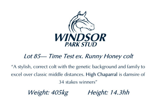 TIME TEST (GB) (Bay 2012-Stud GB 2018, NZ 2018). 6 wins-1 at 2-7f to 10½f, £349,934, US$315,000, Newmarket Joel S., Gr.2, York S., Gr.2, Royal Ascot Tercentenary S., Gr.3, (2000m course record), Sandown Brigadier Gerard S., Gr.3, 2d Belmont Manhattan S., Gr.1, Saratoga Fourstardave H., Gr.1, Belmont Fort Marcy S., Gr.3. Out of SW Passage of Time (Criterium de Saint-Cloud, Gr.1). His oldest SH-bred progeny are yearlings. 1st dam RUNNY HONEY, by High Chaparral. 2 wins at 1400m, 3100m. Half-sister to BIZZWINKLE. This is her second foal. Her first foal is a 2YO. 2nd dam BIZZ, by Volksraad. 3 wins 1400m to 2000m, Hawkes Bay Dunstan Feeds Championship Qualifier. Dam of 7 named foals, 5 to race, 3 winners, inc:- BIZZWINKLE (Rip Van Winkle). 6 wins 2000m to 3200m, NZ$250,000, A$11,250, CJC New Zealand Cup, Gr.3, ARC Iconic Sunday Markets H., Stratford Cup, Waikato RC Immigration Specialists H., 2d Te Aroha Cup, Otaki Maori RC St Leger Trial, 3d New Zealand St Leger, L, Benalla Gold Cup. Murdoch. Winner at 1200m, 3d ARC Tip Top Trumpet H., Waikato RC Te Rapa New World H. 3rd dam BUSY BEE, by Diplomatic Agent. 2 wins at 1400m. Half-sister to JOLLY JAKE, SWEET GEM, Our Secret Weapon, Buzz (dam of YACQUINA BAY). Dam of 6 foals, all raced, 5 winners, inc:- Chater Lane. 2 wins at 2000m, HKJC Peninsula Golden Jubilee Challenge Cup H., Fuzhou H., 2d HKJC Village H., Ritto H., 3d HKJC Shing Yip H. Beeline. 3 wins at 1600m, 2025m, 3d Otago RC Yamanin Vital H. Dam of- Lemon Honey. 5 wins 1200m to 1400m, Marton JC Lee European H., 3d Otago RC Transpacific Waste H. 4th dam HONEYPOT, by Sucaryl. Unraced. Dam of 8 named foals, all raced, 6 winners, inc:- JOLLY JAKE (Three Legs). Champion 3YO in NZ. 9 wins 1200m to 3620m, US$19,800, NZ$165,335 in U.S.A. and NZ, New Zealand Derby, Gr.1, Avondale Guineas, Gr.2, ARC Blandford H., Westminster H., 2d Counties RC Auckland Thoroughbred Breeders' S., Gr.3, ARC Guineas Trial, L. Sire. SWEET GEM (In the Purple). 9 wins 1050m to 1450m, VRC Frances Tressady S., Gr.3, SAJC Eagle Farm S., Advanced H., Graduation S.-twice, 2d SAJC Warren Jones H., 4th VRC Frances Tressady S.H., Gr.3. Our Secret Weapon (Three Legs). 11 wins-1 at 2-1200m to 2200m, CJC Aylesbury H., 2d Otago RC Dunedin Guineas, L, 3d Gore Guineas, L. Sire. Lady Beebee. 5 wins 1200m to 2130m, Timaru RC Gateway Rentals H., Otago RC Browns Furnishers H. Grandam of- BULL'S EYE (Rivotious). 9 wins 1000m to 1800m, A$49,738, HK$7,223,325, HKJC Happy Valley Trophy, L, 3d STC Darby Munro S., L. ECSTATIC - AFRICAN FOREST (H.K.) (Sandtrap). 2 wins at 2 at 1200m, Foxton RC Castletown S., L, 4th ARC Great Northern Foal S., L. Buzz. Placed. Dam of 10 winners- YACQUINA BAY (Oregon). 8 wins 1100m to 2020m, A$243,431, BTC Chairman's H., Gr.3, 2d STC Royal Parma S., L, 4th AJC Villiers S., Gr.2, Hawkesbury Gold Cup, Gr.3. |