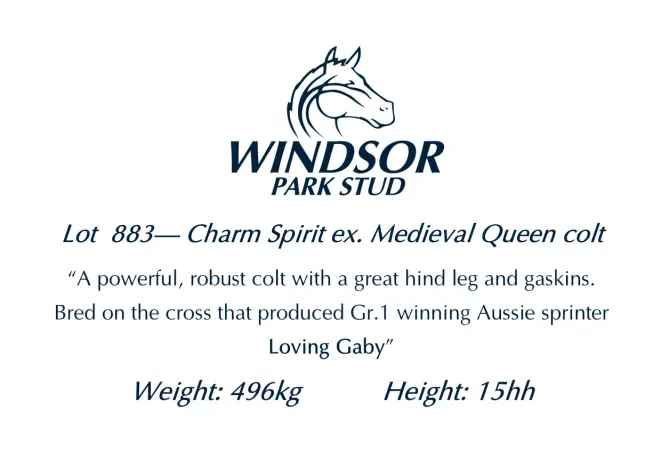 CHARM SPIRIT (IRE) (Bay 2011-Stud 2015). 6 wins-1 at 2, Ascot Queen Elizabeth II S., Gr.1. Leading NZ First Season Sire in 2018-19. Sire of 293 rnrs, 160 wnrs, inc. SW Aretha (Matamata Breeders S., Gr.2), Fascino, Kick On, Scorpz, Lilikoi, Yourtimeisnow, Time Scale, Fantastic Spirit, SP Like a Charm, Charming Kid, Epistrophy, Sansom, Sea Race, Air Force Jet, Coco Charm, Dream Memory, Jessely, Kassaba, Lambeth Walk, etc. 1st dam MEDIEVAL QUEEN, by Mastercraftsman. Unraced. Half-sister to Mia le Fay (dam of LADY LE FAY), Lady Gee (dam of LORD BADGER). This is her third living foal. Her second foal is a 2YO. Her first foal is an unraced 3YO. 2nd dam GUINEVERE, by Fairy King. Unraced. Blood-sister to Anna Pallida (dam of PIMPERNEL), half-sister to EAGLE MOUNTAIN, DANK, SULK (dam of IBN BATTUTA), WALLACE, Slink (dam of BYE BYE BIRDIE). Dam of 11 named foals, 10 to race, 8 winners, inc:- Mia le Fay. 2 wins at 1600m, 2242m, QTC Round the World H. Dam of- LADY LE FAY (Thorn Park). 6 wins 1400m to 2100m, NZ$75,245, A$168,650, Feilding JC Anzac H., L, 2d ATC Angst S., Gr.3, Lord Mayor's Cup, L, 4th ATC Queen of the Turf S., Gr.1. The Tidy Express (Volksraad). 5 wins 1600m to 2100m, NZ$141,560, ARC Carbine Club Trophy, 2d Waikato Cup, Gr.3, Hawke's Bay Gold Cup, Gr.3, 3d ARC Eagle Technology S., Gr.3, 4th Counties Cup, Gr.3. Lady Gee. Winner at 1600m in South Africa. Dam of- LORD BADGER (Badger's Drift). 8 wins-1 at 2-1000m to 2000m, Fairview East Cape Guineas, L, 3d Fairview Champion Juvenile Cup, Gr.3. 3rd dam MASSKANA, by Darshaan. 3 wins at 1800m, 2000m, 3d Saint-Cloud Prix Monade. Three-quarter-sister to MIRISI, half-sister to MASSYAR, MAD-JARISTAN. Dam of 12 foals, 9 to race, 6 winners, inc:- EAGLE MOUNTAIN (Rock of Gibraltar). Champion 3YO in Ireland in 2007 (Int.). 5 wins-2 at 2-1200m to 2000m, Cathay Pacific Hong Kong Cup, Gr.1, Curragh Beresford S., Gr.2, Royal Whip S., Gr.2, Newmarket Joel S., Gr.3, 2d The Derby, Gr.1, Breeders' Cup Turf, Gr.1. Sire. DANK (Dansili). Champion Turf Female in USA in 2013. Joint Champion Older Female Miler in Ireland in 2013. 7 wins-3 in succession-1m to 1¼m, Breeders' Cup Filly & Mare Turf, Gr.1, Arlington Park Beverly D S., Gr.1. SULK (Selkirk). Champion 2YO Filly in France in 2001. Champion 3YO Female Stayer in GB in 2002. 2 wins at 2 at 1400m, 1609m, Longchamp Prix Marcel Boussac, Gr.1, 2d Longchamp Prix Royal Oak, Gr.1. Producer. WALLACE (Royal Academy). 2 wins at 1m, Ascot Silver Trophy, L, 2d Doncaster Park S., Gr.3, Kempton Easter S., L, 3d Epsom Diomed S., Gr.3. Anna Pallida. Winner at 1¼m, 2d Newmarket NSPCC H. Grandam of- GOLD TOWN (Street Cry). 4 wins-2 at 2, 3 in succession-1037m to 1600m in GB and U.A.E, Meydan UAE Two Thousand Guineas, Gr.3. Slink. Unraced. Dam of 3 winners- BYE BYE BIRDIE (Oasis Dream). 2 wins at 2 at 5f, 6f, Curragh Balanchine S., Gr.3, 2d Curragh Equisoftlive.com 2YO Fillies S. Dam of 3 winners- DELPHI (Galileo). 4 wins in succession 1m to 1¾m, €84,950, in 2020, Curragh Irish St Leger Trial, Gr.3, Leopardstown Nijinsky S., L. |