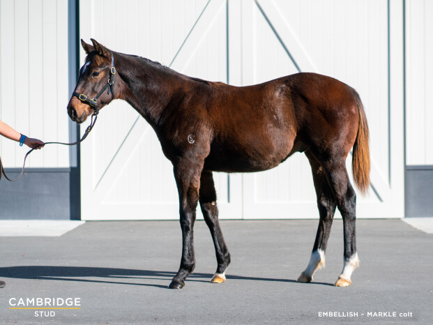 EMBELLISH (NZ) (Brown 2014-Stud 2019). Equal Head of the 2017-18 NZ 3YO Free H. 3 wins 1200m to 1600m, NZ$476,185, A$23,000, New Zealand Two Thousand Guineas, Gr.1, 2d ARC Karaka Million 3YO, RL. Brother to SW Diademe (Te Aroha JC NZ Thoroughbred Breeders' S., Gr.1) and SP Deadly Shadow. Three-quarter-brother to SP Lucetta and SP Relucent. Half-brother to SP Roop All. His oldest progeny are foals. 1st dam MARKLE, by Stratum. Winner at 1400m. This is her first foal. 2nd dam Fairy Star, by More Than Ready. Placed at 2, 3d SAJC Cinderella S., L. Three-quarter-sister to Lizard Island, half-sister to Marsannay. Dam of 3 named foals, 2 to race, 1 winner, inc:- 3rd dam BOURGOGNE, by Choisir. 2 wins at 1305m, 1600m in Aust. Half-sister to BULLA BORGHESE (dam of BOUND FOR EARTH), Cresta Run. Dam of 8 named foals, all raced, 6 winners, inc:- Lizard Island (Sebring). 2 wins at 1600m, A$480,625, MRC Ern Jensen Funerals H., Pakenham RC Evergreen Charity Raceday P., 2d MRC Caulfield Guineas, Gr.1, Caulfield Classic, Gr.3, VRC Anzac Day S., L. Marsannay (Snitzel). 3 wins-1 at 2-1200m to 1550m, A$120,530, to 2020-21, ATC Heineken H., 3d ATC Up & Coming H., Gr.3, Gosford Guineas, L, GCTC Magic Millions Rising Stars P., ATC Rosehill Bowling Club H. Fairy Star (More Than Ready). Placed. See above. 4th dam FIONNAY, by Crested Wave. Unraced. Half-sister to ASCONA, ANDERMATT, ST GALLEN, Celerina (dam of OKIWI BAY). Dam of 9 named foals, 7 to race, 6 winners, inc:- BULLA BORGHESE (Belong to Me). 4 wins-2 at 2-1200m to 2500m, A$464,000, VRC Oaks, Gr.1, AJC National Telecoms Group 2YO H., 3d AJC Reginald Allen H., L, 4th VRC Wakeful S., Gr.2. Dam of 6 winners- BOUND FOR EARTH (Northern Meteor). 2 wins-1 at 2-at 1200m, 1250m, ATC Furious S., Gr.2, Australian Turf Club H., 2d ATC Darby Munro S., L, 3d ATC Flight S., Gr.1, Tea Rose S., Gr.2, BRC Sires' Produce S., Gr.2. Romanus (Encosta de Lago). 4 wins-1 at 2-at 1200m, 1400m, STC North Ryde RSL 2YO H., 3d AJC Skyline S., Gr.3, 4th STC Pago Pago S., Gr.2. Melpomene (Elusive Quality). 3 wins 1300m to 1550m, STC Freeway Hotel Pool Competition H., 3d MRC Twilight Glow S., L. Dam of- CALLIOPE (Exceed and Excel). 2 wins at 2 at 1000m, 1200m, A$202,000, ATC Magic Night S., Gr.2, Gimcrack S., L. ZETHUS (Exceed and Excel). Winner at 2 at 1100m, A$110,500, in 2020-21, ATC Canonbury S., Gr.3, 2d ATC Agency Real Estate 2YO H. Thalia (Medaglia d'Oro). Placed at 2 & 3, 3d VRC Thoroughbred Breeders S., Gr.3. Dam of 3 winners- AQUITAINE (Exceed and Excel). 4 wins-3 in succession-1000m to 1200m, A$266,450, in 2019-20, BRC Mick Dittman P., L. Cresta Run (Commands). 3 wins at 1400m, AJC Ho Ho Ho H., STC AAMI Golden Slipper Day H., 3d GCTC Magic Millions 3YO Trophy, RL. |