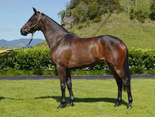 ALMANZOR (FR) (Bay or Brown 2013-Stud France 2018, NZ 2018). 8 wins-3 at 2-1400m to 2100m, Chantilly Prix du Jockey Club, Gr.1, Leopardstown Irish Champion S., Gr.1, Ascot Champion S., Gr.1. Brother to SP Troarn. Sire of His oldest SH-bred progeny are 2YOs. His NH-bred progeny inc Faro de San Juan and of the placegetters Dissociate, French Franc, Noonie, Queen Trezy, Saving Grace, etc. 1st dam PEARLS, by Sudurka. 3 wins 1400m to 2200m, 3d Levin RC New World Levin H. Half-sister to Social Element. This is her third live foal. Dam of one foal to race- Foogayzee (g. by Showcasing). Winner at 1400m in 2020-21, WRC Vernon & Vazey Truck S., 2d Manawatu RC Tui Backing a Winner H. 2nd dam PARE, by Prized. Placed at 3. Dam of 6 named foals, all raced, 4 winners, inc:- Social Element (Savabeel). 7 wins-4 in succession-2000m to 4200m, A$408,165, to 2021-22, ATC Theraces H., 2d ATC City Tattersalls Club Cup, L, Qld Tatt's RC Queensland Cup, L, Port Macquarie Cup, ATC TAB Rewards H., 3d Port Macquarie Cup, 4th ATC City Tattersalls Club Cup, L. Quarry Rock. 2 wins at 1600m, 2050m in Aust. 3rd dam OCEAN CHARM, by Crested Wave. Unraced. Half-sister to VICKEY AV. Dam of 7 named foals, all raced, 3 winners, inc:- Aspen Nikita. Winner at 2000m in Aust. 4th dam TONE, by Oncidium. Placed. Sister to Kingston Key, half-sister to Chubb (dam of (OUR) CACHE), Fix (dam of OUR CURE, BIG GREY ROO). Dam of 12 foals, 9 to race, 8 winners, inc:- VICKEY AV (Imperial March). 2 wins at 2400m, Great Northern Oaks, Gr.2, AJC Avenger H., 2d Queensland Oaks, Gr.1, 3d AJC Anniversary H., L, 4th AJC St Leger, Gr.2. Producer. Three Tone. 5 wins at 1600m, 2200m, ARC TVNZ Network News H., WRC Maidstone H., 2ZB Golden Jubilee H., 2d Waikato RC Highview Stud H. Stone. 2 wins at 1800m, 2200m, Avondale JC Bluebird Foods Championship H. 5th dam KEY, by Fair's Fair. Top filly on The 1961-62 NZ 3YO Free H. 16 wins-3 at 2-6f to 11f, WRC Desert Gold S., Gr.2, Manawatu RC Awapuni Gold Cup, Gr.2, AJC Villiers S., Gr.3, WRC North Island Challenge S., Gr.3. Half-sister to (THE) TUMBLER, Shut. Dam of 8 foals, 6 to race, 5 winners, inc:- Chubb (Faux Tirage). 3 wins 1m to 10½f, 3d New Zealand Oaks, Gr.2. Dam of- (OUR) CACHE (In the Purple). 2 wins at 1600m, 2000m, South Australian Oaks, Gr.1, AJC Windbag H. Producer. Saving. Unraced. Dam of 7 winners- SHINDIG (Straight Strike). 8 wins-1 at 2-1200m to 1600m, A$449,758, STC Coolmore Classic, Gr.1, Triscay S., L. Dam of 7 winners-