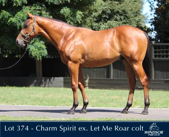 CHARM SPIRIT (IRE) (Bay 2011-Stud 2015). 6 wins-1 at 2, Ascot Queen Elizabeth II S., Gr.1. Leading NZ First Season Sire in 2018-19. Sire of 388 rnrs, 236 wnrs, 11 SW, inc. SW Aretha (Matamata Breeders S., Gr.2), Fascino, Kick On, Sansom, Scorpz, Lilikoi, Yourtimeisnow, Fantastic Spirit, Lord Charming, Time Scale, Honorable Spirit, SP Autobahn, Like a Charm, Charming Kid, Epistrophy, Sea Race, Qaiser, Air Force Jet, etc. 1st dam Let Me Roar, by Rip Van Winkle. 6 wins in succession from only 7 starts 1200m to 1400m, NZ$87,435, Te Aroha JC Team Wealleans H., BOP RC NZB Insurance Pearl Series H., Waikato RC ANZ at Te Rapa H., 3d ARC Easter S., Gr.2. Sister to Lubaya, half-sister to LION TAMER. This is her third foal. Her second foal is a 2YO. Her first foal is an unraced 3YO. 2nd dam LIONESS, by Generous. Unraced. Half-sister to Blue Grass. Dam of 11 foals, 8 to race, 6 winners, inc:- LION TAMER (Storming Home). Joint Top of 2010-11 Australasian 3YO Classification (Ext.). 6 wins-3 at 2-1100m to 2500m, NZ$90,375, A$1,234,000, Victoria Derby, Gr.1, MRC Underwood S., Gr.1, ARC Champagne S., L, NSW Tatt's RC Ming Dynasty H., L, Counties Challenge S., L, WRC Carpet One 2YO H., 2d MVRC AAMI Vase, Gr.2, 3d Waikato RC Star Way S., L, 4th Hawkes Bay Makfi Challenge S., Gr.1. Let Me Roar (Rip Van Winkle). 6 wins. See above. Lubaya (Rip Van Winkle). 3 wins 1360m to 1600m, NZ$83,322, Manawatu RC Summer Cup, Hawkes Bay Mulcaster Bloodstock H., 2d Feilding Gold Cup, L, Hawkes Bay Per Incanto H., 3d Manawatu Breeders' S., Gr.3. Botti. 4 wins-1 at 2-1200m to 2200m to 2020-21, Manawatu RC Resonant H., 3d ATC Rosehill Bowling Club H., 4th Wanganui Guineas, L. Miss Lioness. 3 wins at 1350m, 1600m. Dam of- Draft Day. Winner at 1200m in 2021-22, MRC Ladbroke it P. 3rd dam BLUE SATIN, by Pompeii Court. 2 wins at 1400m, 1670m. Half-sister to Blue Music. Dam of 8 named foals, 7 to race, 3 winners, inc:- Blue Grass (Postponed). 3 wins to 2000m, 3d Taranaki 2YO Classic, Gr.3. 4th dam (MY) BLUE DENIM, by A Chara. 10 wins-2 at 2-1000m to 3200m, NZ$136,835, A$261,000, STC HE Tancred S., Gr.1, AJC Queen Elizabeth Randwick S., Gr.1, Auckland Cup, Gr.1, Rotorua Challenge S., Gr.3, 2d VRC Melbourne Cup, Gr.1, AJC Sydney Cup, Gr.1, VATC Sandown Cup, Gr.2, ARC Mitchelson Cup, L, 3d AJC Oaks, Gr.1, ARC Royal S., Gr.2, STC Storm Queen S., Gr.2, Manawatu RC Eulogy S., Gr.3, Manawatu Breeders' S., Gr.3, Te Aroha JC New Zealand Thoroughbred Breeders' S., Gr.3, Avondale JC Stretto S., L. Dam of 8 foals, 7 to race, all winners, inc:- Blue Music (Western Symphony). 2 wins at 2 at 1000m, 1050m, NZ$104,300, 2d New Zealand Oaks, Gr.1, ARC Championship S., Gr.2. Magic Blue. Winner at 1600m, 3d CJC Superstrike Seeds H. Grandam of- HARRIS TWEED (Montjeu). Head of The 2008-09 NZ 3YO Free H. 4 wins 2000m to 2500m, NZ$83,600, A$1,338,400, STC Tulloch S., Gr.2, VRC Bart Cummings H., L, 2d Australian Derby, Gr.1, MRC Caulfield Cup, Gr.1. |