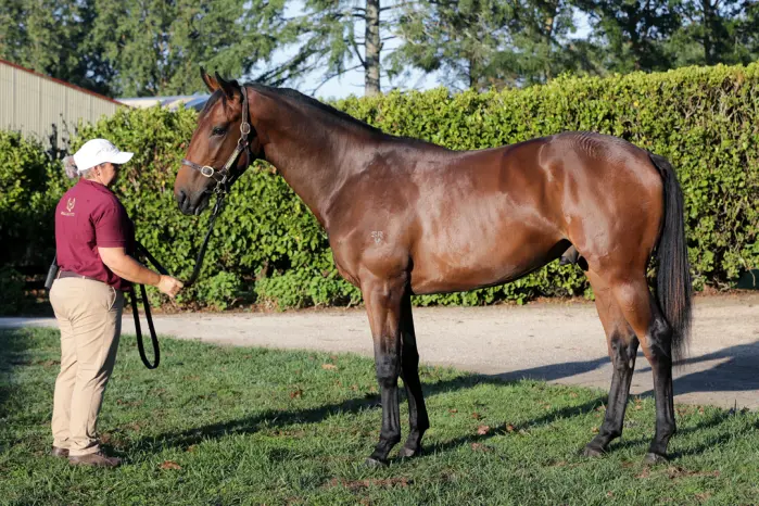 TARZINO (NZ) (Bay 2012-Stud 2017). 4 wins from 1400m to 2500m, A$1,647,050, Victoria Derby, Gr.1, ATC Rosehill Guineas, Gr.1, 2d VRC Australian Guineas, Gr.1, 3d MVRC Dilmah Vase, Gr.2, 4th ATC Australian Derby, Gr.1. Half-brother to the dam of SP Ragnaar - Fast Ball (H.K.). Sire of SP Jungle Magnate and of Te Toki, Gypsy Goddess and of the placegetters Velvet Lady, etc. His oldest progeny are 3YOs. 1st dam PLATINUM COMMAND, by Red Giant. 10 wins 1400m to 1800m, NZ$311,842, CJC Winter Cup, Gr.3, WRC Whyte H., IRT North Island H., CJC Christchurch Casino NZ Cup Trial H., WRC New Zealand Bloodstock Insurance Pearl Series H., CJC Racecourse Hotel & Motor Lodge H., Marton JC Rangitikei Tyre Centre H., 2d CJC Winter Cup, Gr.3, Marton JC Metric Mile, Gr.3, ARC JRA Trophy, CJC Millennium Hotels & Resorts H., 4th CJC Winter Cup, Gr.3, Warstep S., L, Counties RC Karaka Classic, L. Half-sister to Platinum Rapper. This is her first foal. 2nd dam WEDNESDAY ROCKS, by Encosta de Lago. Unraced. Dam of 6 named foals, 5 to race, 4 winners, inc:- PLATINUM COMMAND (Red Giant). 10 wins. See above. Platinum Rapper (Makfi). 4 wins-1 at 2-1200m to 2000m, NZ$100,582, CJC NZB Insurance H., WRC NZB Insurance H., 3d Manawatu Breeders S., Gr.3, Wanganui JC Challenge S., L, 4th CJC Inglewood S., L. Lucky Happy - Carefree Let Go (H.K.). 2 wins at 1200m, HKJC Peel H. Rocklily. Winner at 1300m in 2021-22, ATC First Crop Calyx Foals H. 3rd dam PALATIAL, by Danehill. 3 wins 1400m to 1600m, AJC Sydney City Lexus H., STC Tooheys New H., 2d AJC Gaulus H., STC De Bortoli Wines Staff 2YO H. Sister to DANELAGH (dam of SUBSCRIBE - VENGEANCE OF RAIN (H.K.), DIZELLE, BERNICIA), Villa Bled, half-sister to CABLE - WELL DONE (Mac.). Dam of 1 foal. 4th dam PALATIOUS, by Semipalatinsk. 7 wins 1200m to 3200m, WATC CB Cox S., Gr.2, Perth Cup, Gr.2, 2d Western Australian Oaks, Gr.2, 3d WATC Imperial S., L. Sister to MEMPHIS BLUES, EVASION, Bluetinsk, Russian Trader, Bluiski (dam of KINGS HONOR - BON AMIE (Sing.)), three-quarter-sister to Himalaya Vain. Dam of 8 foals, all winners, inc:- DANELAGH (Danehill). 4 wins-2 at 2-1000m to 1400m, VATC Blue Diamond S., Gr.1, VRC Shamrock Travel H., L, VATC Tranquil Star S., L. Dam of- SUBSCRIBE - VENGEANCE OF RAIN (H.K.) (Zabeel). 10 wins-1 at 2 and 5-1200m to 2400m, HKJC Queen Elizabeth II Cup, Gr.1. DIZELLE (Zabeel). 5 wins-1 at 2-1300m to 2400m, A$983,890, AJC Australian Oaks, Gr.1, MVRC Woodstock Mile Oaks, Gr.2. Dam of- PINOT (Pierro). 3 wins in succession 1800m to 2500m, A$733,275, VRC Oaks, Gr.1, MRC Ethereal S., Gr.3, VRC Kennedy Oaks Trial P. CABLE - WELL DONE (Mac.) (Last Tycoon). 8 wins-2 at 2-at 1000m, 1200m, A$93,540, M$1,666,550 in Aust. and Macau, SAJC Jansz S., Gr.3. |