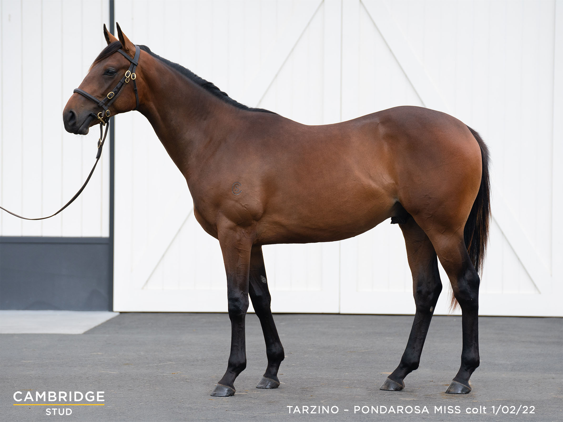TARZINO (NZ) (Bay 2012-Stud 2017). 4 wins from 1400m to 2500m, A$1,647,050, Victoria Derby, Gr.1, ATC Rosehill Guineas, Gr.1, 2d VRC Australian Guineas, Gr.1, 3d MVRC Dilmah Vase, Gr.2, 4th ATC Australian Derby, Gr.1. Half-brother to the dam of SP Ragnaar - Fast Ball (H.K.). Sire of SP Jungle Magnate and of Te Toki, Gypsy Goddess and of the placegetters Velvet Lady, etc. His oldest progeny are 3YOs. 1st dam PONDAROSA MISS, by High Chaparral. 6 wins 1400m to 2100m, NZ$271,635, ARC Easter H., Gr.1, Coca-Cola H., Simply Squeezed H., Waikato RC The Pathways Immigration Specialists H., 2d Rotorua Challenge P., L, 3d ARC Zabeel Classic, Gr.1, Auckland Cup, Gr.1, Waikato RC Arrowfield Stud H., Kingsgate Hotel Hamilton H., 4th ARC Avondale Cup, Gr.2. Sister to ECUADOR. This is her fourth foal. Her third foal is a 2YO. Her second foal is an unraced 3YO. Her first foal is unraced. 2nd dam BAK DA PRINCESS, by Danske. Unraced. Half-sister to BAK DA CHIEF (dam of TE AKAU SHARK). Dam of 10 named foals, 8 to race, all winners, inc:- PONDAROSA MISS (High Chaparral). 6 wins. See above. ECUADOR (High Chaparral). 10 wins 1400m to 2400m, A$1,136,875, ATC Lord Mayor's Cup, L, Carrington S., L, WJ McKell Cup, L, December H., Eremein H., McGrath Estate Agents H., 2d ATC Epsom H., Gr.1, NSW Tatt's RC Tramway S., Gr.2, ATC Doncaster Prelude H., Gr.3, MVRC JRA Cup, Gr.3, Hawkesbury Gold Cup, Gr.3, ATC Lord Mayor's Cup, L, 3d MRC CF Orr S., Gr.1, Futurity S., Gr.1, ATC Warwick S., Gr.2. Rip Em Up. 4 wins 1400m to 2100m to 2020-21, BOP RC Worlds End Bar and Restaurant H., 2d ARC Auckland Alarms H. Prickley Princess. 4 wins 1400m to 1800m, Taranaki RC Seaton Park H. Dam of- Redwood Shadow. Winner at 1600m in 2020-21, 3d VRC Flt Lt Peter Armytage H., MRC Rod Fenwick H., 4th MRC Caulfield Classic, Gr.3. Recurring Dream. Unraced. Dam of- Invincible Jet. 2 wins to 1300m to 2021-22, MRC Ladbrokes Easy Form H. 3rd dam Havitbak, by Bakharoff. 8 wins 1200m to 2100m, ARC Peter Lehmann Wines H., Waikato RC Sitrite Furniture H., Cambridge Thoroughbred Sales H., 2d Waikato RC Mapperley Stud S., Gr.3, 3d Rotorua Challenge P., Gr.3, 4th BOP RC Kiwifruit Cup, L. Dam of 8 foals, 7 to race, 6 winners, inc:- BAK DA CHIEF (Chief Bearhart). 5 wins 2000m to 2400m, NZ$136,125, Waikato Gold Cup, Gr.2, Otaki Maori RC St Leger Trial, ARC Captain Rio H., 2d Northland Cup, 3d Wanganui Cup, L. Dam of 5 winners- TE AKAU SHARK (Rip Van Winkle). 7 wins-3 in succession-1100m to 1600m, NZ$387,250, A$1,091,750, ATC Chipping Norton S., Gr.1, Waikato Sprint, Gr.1, CJC Coupland's Bakeries Mile, Gr.2, Hawkes Bay Spring Sprint H., Gr.3, Hastings-Heart of Hawkes Bay H., Matamata RC Fairview Motors H., 2d ATC Epsom H., Gr.1, Tramway S., Gr.2, Waikato RC Foxbridge P., Gr.2, 3d MVRC WS Cox P., Gr.1, ATC George Ryder S., Gr.1, 4th New Zealand Two Thousand Guineas, Gr.1. Riverina Girl. Placed. Dam of 4 winners- Eclair Journey (Guillotine). 2 wins at 1350m, 1510m in Macau, 3d Macau 4YO Prelude, L, Macau Guineas, L, 4th Macau Derby, L. |