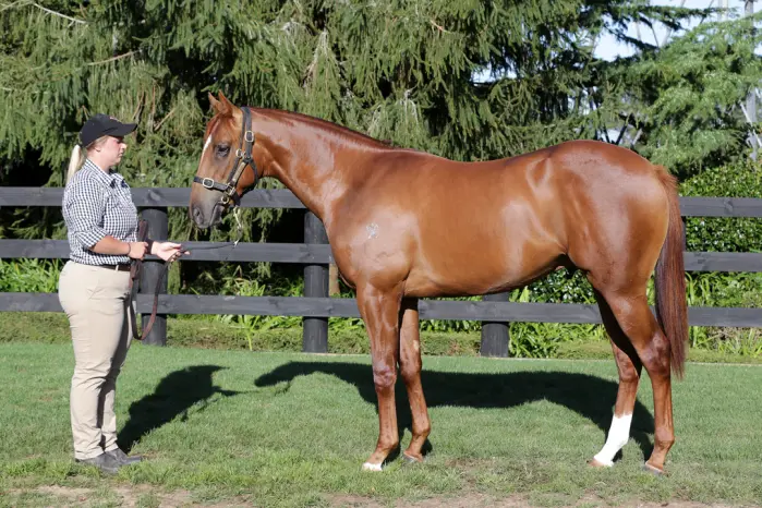 SHOOTING TO WIN (AUS) (Chestnut 2011-Stud 2015). 4 wins-2 at 2, MRC Caulfield Guineas, Gr.1. Sire of 201 rnrs, 118 wnrs, inc. SW Mascarpone (Waikato RC Foxbridge P., Gr.2), Extra Time, Ms Catherine, Tailleur, SP Dom to Shoot, Victorem, Kubrick, Shotmaker, Charleton Eddie, Majestic Shot, Good and Proper, Intrepidacious, Mystery Shot and of Fatale Femme, Picarones, Shooting for Gold, Eclair Breeze, Hillaby, Residue, etc. 1st dam VITRUM, by Van Nistelrooy. Unraced. Half-sister to FILANTE ETOILE, Vega Sicilia (dam of VALBUENA), Macchiato (dam of HARB). This is her sixth foal. Dam of four foals to race, two winners, inc:- Smiling Proud (g. by Guillotine). 3 wins 1360m to 1600m to 2021 in NZ and Singapore. Chase Wind (g. by Darci Brahma). Winner at 1800m in Macau. 2nd dam GEORGIANA, by Nassipour. Unraced. Half-sister to STAR DANCER. Dam of 7 named foals, 5 to race, all winners, inc:- FILANTE ETOILE (Soviet Star). 4 wins 1400m to 2140m, NZ$118,850, QTC Metropolitan H., L, BOP RC Tauranga Hardware & Plumbing H., 2d New Zealand Oaks, Gr.1, Waikato Gold Cup, Gr.2. Producer. Vega Sicilia (Rodrigo de Triano). 3 wins at 1400m, 3d Waikato RC International S., Gr.1, BTC Rough Habit P., L. Dam of 5 winners- VALBUENA (Darci Brahma). Joint Second on the 2012-13 NZ 3YO Free H (1600m+). 5 wins 1400m to 2100m, NZ$58,675, S$227,954, ARC Avondale Guineas, Gr.2, Singapore TC Open S., Open H. Macchiato. 4 wins at 1200m, 1400m, ARC New Year's Day H. Dam of- HARB (Catbird). 4 wins-2 at 2-1000m to 1400m, SAJC Oaklands P., L, HKJC Hang Hau H., Hong Kong Football Club Centenary Challenge Cup. Cortado (Sepoy). Winner at 2 at 1200m, 2d Levin RC Ryder S., L, 3d ARC Dunstan Rising Star Qualifier H., 4th ARC Soliloquy S., L. Cavendish Belle. Unraced. Dam of 2 winners- Belle en Rouge (Burgundy). Winner at 1300m in 2021-22, 3d New Zealand One Thousand Guineas, Gr.1, Matamata RC Soliloquy S., Gr.3. 3rd dam MOUTON MAGIC, by Imposing. Winner at 1600m. Half-sister to TESSUTI, ZEPHYR SOUBA. Dam of 6 foals, 3 to race, all winners, inc:- STAR DANCER (Star Watch). 14 wins 1000m to 2000m, Auckland Classic, Gr.1-twice, VATC Futurity S., Gr.1, AJC Warwick S., Gr.2, ARC King's P., Gr.3, VATC Myer S., Gr.3, Te Aroha JC Thames Valley S., Gr.3-twice, ARC King's P., L, 2d AJC Frank Packer P., Gr.3, STC Shannon H., Gr.3, Gosford Guineas, L, 3d VATC CF Orr S., Gr.1, AJC Expressway S., Gr.2, 4th AJC Epsom H., Gr.1, George Main S., Gr.1, All-Aged S., Gr.1. 4th dam SOUBA, by Taine. 3 wins at 1500m, 1600m, 4th Saint-Cloud Prix Penelope, Gr.3. Half-sister to SUKAWA. Dam of 8 named foals, 6 to race, all winners, inc:- ZEPHYR SOUBA (Zephyr Bay). 7 wins-1 at 2-1100m to 1600m, ARC Ladies Mile, Gr.3, Waikato Guineas, Gr.3, 3d ARC Royal S., Gr.2. Dam of-