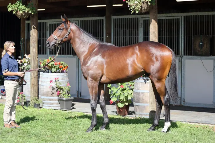 EMINENT (IRE) (Bay 2014-Stud 2019). 3 wins-1 at 2-at 1610m, 2000m, £174,552, €340,500, A$172,000, Deauville Prix Guillaume d'Ornano, Gr.2, Newmarket Craven S., Gr.3, 2d ATC Ranvet S., Gr.1, 3d Leopardstown Irish Champion S., Gr.1, 4th The Derby, Gr.1. Out of SP You’ll Be Mine, a half-sister to SW Diamondsandrubies (Curragh Pretty Polly S., Gr.1). Grandson of SW Quarter Moon. His oldest progeny are yearlings. 1st dam DIGGILOU, by Iffraaj. Unraced. Half-sister to Perfect Rhyme. This is her first foal. 2nd dam DAGMAR, by Danehill. Winner at 1350m in Aust. Half-sister to YOU'RE CANNY. Dam of 7 named foals, 5 to race, 1 winner, inc:- Perfect Rhyme (Poet's Voice). 2 wins at 1400m, 1600m, A$365,735, 2d Australian Oaks, Gr.1, ATC Adrian Knox S., Gr.3, Newcastle JC Tibbie S., Gr.3, ATC TAB Highway P., 4th Illawarra TC Arrowfield Classic, Gr.3. 3rd dam TECHNIQUES, by Palace Music. 5 wins-1 at 2-1100m to 1400m, A$221,810, Newcastle JC Newmarket H., Gr.3, AJC Razor Sharp H., L, 3d AJC Light Fingers S., Gr.2, STC Missile S., Gr.3, 4th AJC PJ Bell H., L, STC Triscay S., L, Birthday Card H., L. Half-sister to ALERT ME, Mad Desire (dam of GIVEN). Dam of 8 named foals, 6 to race, all winners, inc:- YOU'RE CANNY (Canny Lad). 4 wins-3 at 2-1000m to 1206m, A$221,785, Canberra RC Black Opal S., L. Vite Loni. 3 wins 1200m to 1600m, ATC Bowermans Office Furniture P. Pionero. 3 wins 1400m to 1800m, HKJC Paterson H., Hoi Yuen H. 4th dam Gypsy Alert, by Solitary Hail. 10 wins 1000m to 1290m, AJC Mary Gilmore H., STC Audley Welter H., VATC Florence H., AJC Tesio H., 2d SAJC Swettenham Stud S., Gr.3, STC Festival H., L, 3d AJC Analie H., L, VATC Barton H., L. Half-sister to WITH ME (dam of ACCOMPLICE), Alerted by Me (dam of QUARANTE LOVE). Dam of 10 named foals, 9 to race, 7 winners, inc:- ALERT ME (Genghiz). 9 wins 1150m to 1600m, A$285,910, STC Frederick Clissold H., Gr.3, 2d STC Canterbury S., Gr.2, 3d AJC Hall Mark S., L, 4th Newcastle JC Newmarket H., Gr.3, STC Satellite S., L, Festival H., L. TECHNIQUES (Palace Music). 5 wins. See above. Mad Desire. 2 wins at 1000m, 1400m, VRC American H. Dam of- GIVEN (Canny Lad). 5 wins-4 in succession-at 1100m, 1200m, A$116,575, MRC Geoffrey Bellmaine S., L, 2d MRC Summoned S., L. Dam of- GREEN ROLLER (Flying Spur). 5 wins 1600m to 2400m, A$200,330, TRC Strutt S., L, 3d VRC Galilee Series Final H., L. Bequests. 3 wins at 1200m in Aust. Dam of 3 winners- UGO FOSCOLO (Zacinto). Top Male on The 2015-16 NZ 3YO Free H (1200m-1600m). 6 wins-2 at 2, 1100m to 1600m, NZ$379,750, New Zealand Two Thousand Guineas, Gr.1, Waikato RC James & Annie Sarten Memorial S., Gr.2, Hamilton Vets Equine S., L. Sopraffina. Winner at 1000m in Aust. Dam of 4 winners- GET IN THE SPIRIT (Spirit of Boom). Winner at 2 at 1000m, A$106,000, in 2021-22, VRC Maribyrnong Trial S., L. |