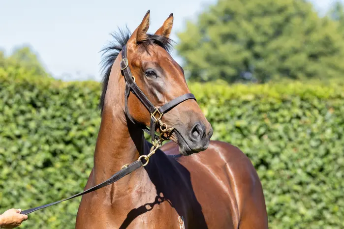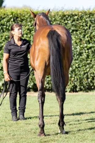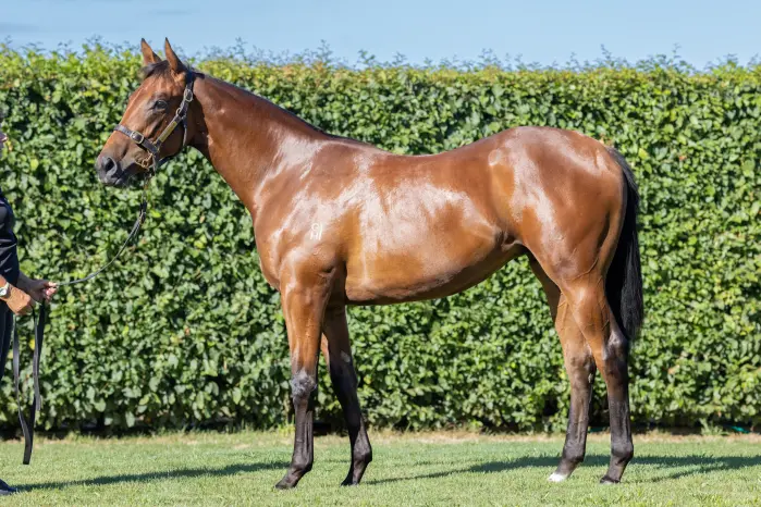 SHOOTING TO WIN (AUS) (Chestnut 2011-Stud 2015). 4 wins-2 at 2, MRC Caulfield Guineas, Gr.1. Sire of 201 rnrs, 118 wnrs, inc. SW Mascarpone (Waikato RC Foxbridge P., Gr.2), Extra Time, Ms Catherine, Tailleur, SP Dom to Shoot, Victorem, Kubrick, Shotmaker, Charleton Eddie, Majestic Shot, Good and Proper, Intrepidacious, Mystery Shot and of Fatale Femme, Picarones, Shooting for Gold, Eclair Breeze, Hillaby, Residue, etc. 1st dam DRAMATIST, by Lope de Vega. Winner at 1300m in Aust. Half-sister to AFFABLE, Gracious Prospect. This is her second foal. Her first foal is a 2YO. 2nd dam LADY GRACIOUS, by Redoute's Choice. 2 wins at 1200m, 1250m, AJC Randwickprincess.com H., STC De Bortoli Wines H., 3d STC Freeway Hotel H., Wolf Blass Wines H. Half-sister to TURFFONTEIN, Royal Missile, Graces Spirit (dam of VALIANT SPIRIT - BEAUTY SPIRIT (H.K.), VERGARA). Dam of 8 named foals, all winners, inc:- AFFABLE (Husson). 2 wins at 2 at 1000m, 1600m, A$95,175, VRC Gibson Carmichael S., L, 2d MRC Routley's 2YO H. Dam of 2 winners- Agreeable. 3 wins-1 at 2-at 1140m, 1400m, A$252,195, to 2021-22, MRC Bill Collins H., Hyland Race Colours H., 3d MRC Tile Importer H., 4th MRC Quezette S., Gr.3, MVRC Atlantic Jewel S., L. Gracious Prospect (Tale of the Cat). 7 wins 1200m to 1600m, A$540,470, VRC Lawn H., Primacy H., Flemington H., 2d MVRC St Albans S., L, Bendigo Guineas, L, 3d VRC TAB Rewards S., Gr.3, MRC Kevin Heffernan S., Gr.3, VRC March S., L, ATC Fernhill H., L, SAJC HC Nitschke S., L, 4th ATC Schweppervescence H., Gr.3. Bentles. 6 wins-3 in succession-1350m to 1600m, A$156,285, BRC St Vincent's Blue Angels H., Mt Franklin H., Ipswich TC Sirromet Winery H. Gracious Garcon. 4 wins at 1100m, 1200m to 2021-22, 2d MRC Ladbrokes P. 3rd dam SPIRIT OF GRACE, by Dr Grace. 4 wins-1 at 2-1200m to 1600m, AJC Brighton H., STC Konami H., 2d STC Parramatta Eels H., Petersham H. Half-sister to Bails, Broadband. Dam of 11 foals, 10 to race, 7 winners, inc:- TURFFONTEIN (Johannesburg). 5 wins-1 at 2-1200m to 1600m, A$1,271,250, MRC Sir Rupert Clarke S., Gr.1, MVRC William Reid S., Gr.1, Queensland Guineas, Gr.2, MRC Wellington Racing Club S., L, 2d VRC Patinack Classic, Gr.1, Seppelt Salinger S., Gr.2, MRC Caulfield Sprint H., Gr.2, AJC South Pacific Classic, Gr.3, 3d BTC Doomben Ten Thousand S., Gr.1, MRC Sir Rupert Clarke S., Gr.1. Sire. Royal Missile (Smart Missile). 5 wins-3 in succession-1100m to 1400m, A$290,200, WATC Hosemasters P., Kirin Megumi P., Tabtouch H., Glenroy Chaff H., 2d WATC Cyril Flower H., L, 4th Bunbury S., L. Graces Spirit. Unplaced. Dam of 4 winners- VALIANT SPIRIT - BEAUTY SPIRIT (H.K.) (Duporth). 6 wins 1400m to 2000m, A$186,165, HK$4,312,850, to 2021-22, MRC Autumn Classic, Gr.2, HKJC Peacock H., Inch Arran H., Austin H.