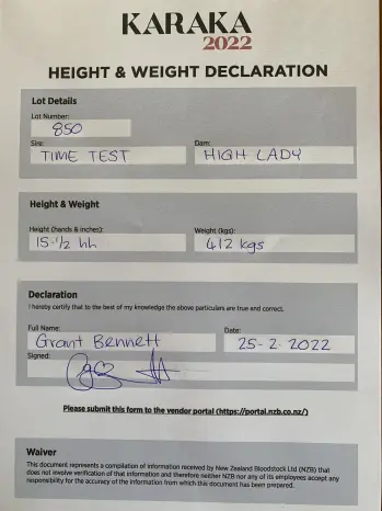 TIME TEST (GB) (Bay 2012-Stud GB 2018, NZ 2018). 6 wins-1 at 2-7f to 10½f, Newmarket Joel S., Gr.2. Out of SW Passage of Time. His oldest SH-bred progeny are 2YOs. His NH-bred progeny inc SW Rocchigiani (Baden-Baden Zukunfts Rennen, Gr.3), Romantic Time, Tardis, The King's Horses, SP Sunset Shiraz and of Nuvolari, Tiempo Star, Justice Protecol, Love Interest, Ribbon Rose, Turn Back Time, etc. 1st dam HIGH LADY, by High Chaparral. Unraced. Sister to Gundown, three-quarter-sister to DESCARADO. This is her first foal. 2nd dam LADY OF THE HOUSE, by Housebuster. 6 wins-3 in succession-at 1400m, 1600m, NZ$86,100, ARC Lion Red H., Jacobsen Headstones H., WRC Central Forklifts H., 2d ARC Winter H., 3d ARC Cole-N-Co H., Ecolab H., Lindauer H., Newmarket Fashion Friday H., Dilmah Earl Grey Tea H., 4th Rotorua S., L. Half-sister to DESCARADO, SIMIGAN, Carey Grant, Matiri King. Dam of 8 named foals, 5 to race, 4 winners, inc:- Gundown (High Chaparral). 4 wins 1400m to 2200m, NZ$120,600, A$115,710, ARC Headquarters Viaduct H., Counties RC Franklin Long Roofing H., Moe Optical Cup, 2d Counties RC Championship S., Gr.2, Manawatu Classic, Gr.3, ARC 0800 Horsevets H., MRC Ladbrokes H. Shockaholic. 4 wins 1200m to 1600m, A$133,915, VRC National Jockeys Trust H., 2d MRC David McGee H., Beck Property Group H. 3rd dam KARAMEA LADY, by Lord Ballina. Raced once. Dam of 12 foals, 11 to race, all winners, inc:- DESCARADO (High Chaparral). 5 wins 1200m to 2400m, NZ$28,813, A$2,577,900, MRC Caulfield Cup, Gr.1, Caulfield S., Gr.1, STC Hill S., Gr.2, 2d Australian Derby, Gr.1, VRC LKS Mackinnon S., Gr.1, ATC Ranvet S., Gr.1, STC Tulloch S., Gr.2, Wellington Guineas, Gr.2, CJC Guineas Trial, 3d STC Phar Lap S., Gr.2. SIMIGAN (Honor Grades). 5 wins 1600m to 2400m, NZ$18,100, A$165,515, Clarence River JC Grafton Cup, Gr.3, STC Shop-a-Docket H., Waikato RC Dunstan Stayers Championship Qualifier, Avondale JC South Auckland Racing Club H., 3d STC Stayers' Cup, L. Matiri King (Generous). 3 wins 1600m to 2200m, HKJC Ewo Challenge Trophy, 2d HKJC Gascoigne H., 3d Avondale Guineas, Gr.2. Carey Grant (Famous Star). 2 wins at 1200m, 2d Counties RC Radio Pacific H., 3d ARC King's P., Gr.3, Waikato Guineas, Gr.3, STC Darby Munro S., L, 4th Levin RC Bayer Classic, Gr.1, STC Eskimo Prince H., L. 4th dam DORMEZ VOUS, by Forty Winks II. Raced twice. Three-quarter-sister to Dreamland (dam of LINGARTON). Dam of 6 foals, 4 to race, 3 winners, inc:- Newton's Third - Newton's Folly (Aust.). 16 wins 1800m to 2800m, NZ$93,015, A$10,600, HBJC Coca-Cola H., Feilding Cup, VATC Murrumbeena H. (Lady) Purr. Unraced. Grandam of- GLIDING (Lord Ballina). 11 wins-3 in succession-1600m to 4000m, US$158,215, NZ$127,385 in U.S.A. and NZ, Rotorua Cup, Gr.3. |