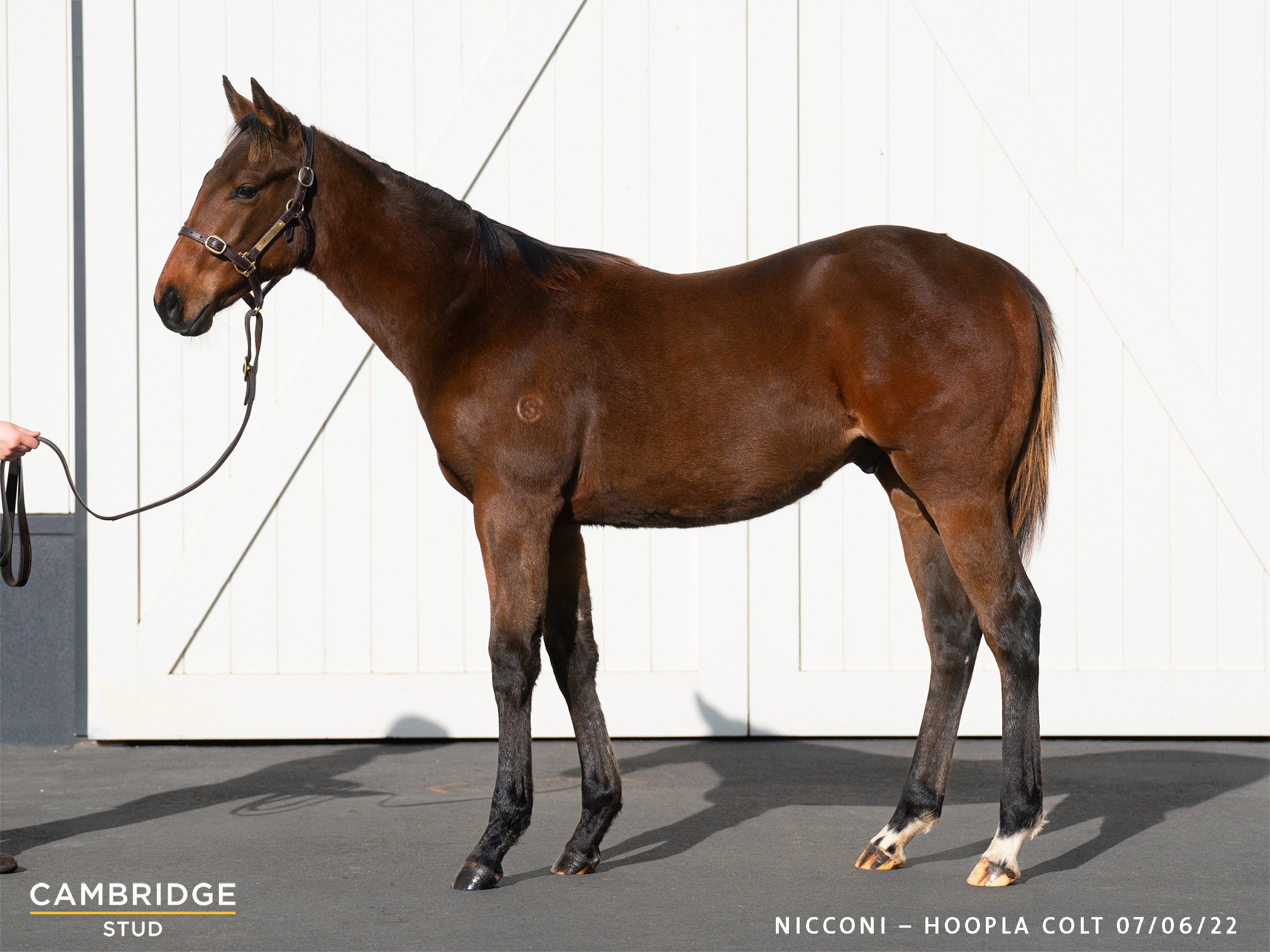NICCONI (AUS) (Bay 2005-Stud 2010). 6 wins-1 at 2, VRC Lightning S., Gr.1. Sire of 675 rnrs, 461 wnrs, 24 SW, inc. SW Nature Strip (ATC TJ Smith S., Gr.1), Graceful Girl, Niccanova, Faatinah, Sircconi, Chill Party, Nicoscene, Time Awaits, Concealer, Criminal Defence - King Tourbillon (H.K.), Tony Nicconi, Hear the Chant, State Solicitor, Caipirinha, Scorched Earth, The Bopper, Skyt, Nistaan, William Thomas, It's Been a Battle, etc. 1st dam HOOPLA, by Hinchinbrook. Winner at 2 at 1000m in Aust. This is her first foal. 2nd dam Our Miss Jones, by Darci Brahma. Winner at 1200m, A$170,150, MVRC Dr Sheahan P., 2d SAJC Schweppes Oaks, Gr.1, MRC BMW H., ESP Tecforce 2YO P., 3d Moonee Valley Fillies Classic, Gr.2, MVRC Typhoon Tracy S., L, 4th MRC William Crockett S., L. Sister to MARIANNE (dam of YALETOWN), three-quarter-sister to Leotie, half-sister to Prairie Star. Dam of 4 named foals, 3 to race, 2 winners, inc:- Norah. Winner at 1400m in 2020-21 in Aust. 3rd dam MARYANN JONES, by Fasliyev. Winner at 1200m. Half-sister to DYLAN'S PROMISE. Dam of 5 named foals, all winners- MARIANNE (Darci Brahma). 3 wins 1200m to 1600m, A$351,900, MVRC Alexandra S., L, MRC LUCRF Jockeys Trust H., 2d VRC AV Kewney S., Gr.2, MRC Angus Armanasco S., Gr.2, Thousand Guineas Prelude, Gr.2, VRC Schweppervescence Trophy, Gr.3, MRC Kevin Hayes S., Gr.3, 3d MVRC Sunline S., Gr.2, SAJC Queen of the South S., Gr.2, MRC Anniversary Vase, L, ATC Tab.com.au H. Dam of- YALETOWN (Vancouver). 2 wins at 1400m, 2000m, A$150,615, in 2020-21, ATC Tulloch S., Gr.2, 4th ATC Phar Lap S., Gr.2. Our Miss Jones (Darci Brahma). Winner. See above. Prairie Star (High Chaparral). 5 wins 1600m to 2100m, NZ$82,025, ARC Dunstan Feeds Qualifier, Waikato RC Vision Forest Lake H., Legacy Lodge H., Counties RC Franklin Long Roofing H., 3d Manawatu Breeders' S., L, 4th Avondale Guineas, Gr.2, Counties Cup, Gr.2. Dam of- Fortress Command - Sun Fortress (Sing.) (Sebring). 4 wins-2 at 2-1350m to 1500m, A$211,415, to 2020-21, ATC Quincy Seltzer H., 3d ATC Schweppervescence H., Gr.3, 4th ATC Champagne S., Gr.1. Leotie (Darci Brahma). 3 wins-1 at 2-at 1106m, 1400m, A$115,350, MRC Wedrive.com.au H., 2d MRC Quezette S., Gr.3. Producer. 4th dam Madonna, by Rigoletto. 2 wins at 1100m, 1400m, A$97,055, SAJC Smoke Free H., Semo Car Spoilers H., 2d SAJC Adelaide Guineas, Gr.3, Classic Mile, L, 3d Australasian Oaks, Gr.1, South Australian Oaks, Gr.1, VATC Coongy H., Gr.3, SAJC Spring S., Gr.3, Rain Lover P., Gr.3. Three-quarter-sister to Maamur. Dam of 9 named foals, 8 to race, 5 winners, inc:- DYLAN'S PROMISE (Dylan Thomas). 8 wins-2 at 2-1450m to 2500m, Clairwood Gold Circle Oaks, Gr.2-twice, Devon Air S., L. Producer. Fortress Madonna. 2 wins at 1330m, 1423m in Aust. Dam of 2 winners-