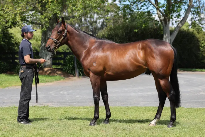 SAXON WARRIOR (JPN) (Bay 2015-Stud Ire. 2019, Aust. 2019). 4 wins-3 at 2-at 1m, The Two Thousand Guineas, Gr.1. Out of SW Maybe (Curragh Moyglare Stud S., Gr.1). His oldest SH-bred progeny are 2YOs. His NH-bred progeny inc Ser Sed, Victoria Road, Killybegs Warrior, Behind the Scenes, Buccabay, Gan Teorainn, Papagallo, Rage of Bamby, Thornbrook and of the placegetters Belon, Greenland, Saxon Scene, Wild Rover, etc. 1st dam VERDANT, by Redwood. Placed. Half-sister to Bettws, Crystalline (dam of BASS STRAIT). This is her first foal. 2nd dam CLEAR ROSE, by Deputy Governor. Joint top filly on The 1995-96 3YO Free H. 6 wins-1 at 2-at 1000m, 1600m, NZ$273,425, A$7,500, New Zealand One Thousand Guineas, Gr.1, BOP RC Japan-New Zealand International Trophy, Gr.2, WRC Desert Gold S., Gr.3, Manawatu RC Eulogy S., Gr.3, Counties RC Eddie Farnell H., 2d New Zealand Derby, Gr.1, 3d Te Aroha JC New Zealand Thoroughbred Breeders' S., Gr.2, Avondale JC Staples Rodway H., 4th GCTC AD Hollindale Cup, Gr.2. Sister to LAMOUR (dam of WARM SMYTZER). Dam of 11 foals, 10 to race, 5 winners, inc:- Bettws (Zabeel). 2 wins at 1600m, 1950m, 2d SAJC Marina Pier H., 3d SAJC Hill Smith S., L. Crystalline. Winner at 2000m. Dam of 4 winners- BASS STRAIT (Holy Roman Emperor). 4 wins 1300m to 1700m, A$466,725, WATC RJ Peters S., Gr.3, MRC TMB Printing H., 2d WATC RJ Peters S., Gr.3, MRC David Jones Cup, Gr.3, WATC Carbine Club of WA S., L, 3d WATC CB Cox S., Gr.2-twice, Bendigo JC Yalumba Golden Mile, L, 4th MVRC Alister Clark S., Gr.2, WATC Belmont Sprint, Gr.3, Asian Beau S., Gr.3, MRC TS Carlyon Cup, Gr.3. Badgers Nuts. Winner at 1350m in 2021-22, BRC Mount Franklin P. Ruppertsberg. Raced twice. Dam of 4 winners- Adolay (Fast 'n' Famous). 3 wins 1100m to 2100m, ARC Grace Removals Group H., 2d CJC Inglewood S., L, 4th CJC Warstep S., L. Producer. Meritaggio. 5 wins 1400m to 1600m, BOP RC Preston Rowe Paterson H. Avert. Unraced. Dam of 4 winners- Preventable. 4 wins in succession to 1600m, A$103,155, MRC Betfair H. 3rd dam THOSADA ROSE, by Namnan. 3 wins-2 at 2-at 1100m, 1200m, HBJC Gold Trail S., Gr.3, Manawatu RC Nursery H., 4th WRC Wakefield Challenge S., Gr.2. Dam of 7 named foals, all winners, inc:- CLEAR ROSE (Deputy Governor). 6 wins. See above. LAMOUR (Deputy Governor). 3 wins-1 at 2-1000m to 1600m, CJC Welcome S., L, WRC Super Series Consolation H., Yes for the Stadium Improvers H., 2d Queensland Oaks, Gr.1. Dam of 5 winners- WARM SMYTZER (Zabeel). 2 wins at 1400m, 2200m, Geelong RC Oaks Trial S., L, VATC Arborea H. Dam of 5 winners- Maraaseem. 4 wins 1300m to 1600m, A$205,223, VRC Rivette Series Final H., MRC Le Pine Funerals H., AR Blackwood H. Producer.
