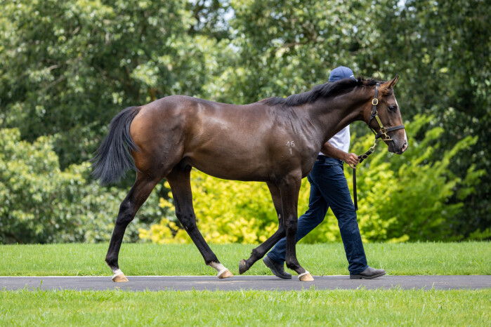 U S NAVY FLAG (USA) (Bay or Brown 2015-Stud in Ire. 2019, NZ 2019). 5 wins-4 at 2-6f to 7f, Newmarket July Cup, Gr.1. Brother to SW Roly Poly. His oldest SH-bred progeny are 2YOs and inc the placegetters Platinum Designs, etc. His NH-bred progeny inc SW Love Reigns (Saratoga Bolton Landing S., L), Ocean Vision and of Stripesof Stars, Nibras Rainbow, Chelsea Green, Ibiza Love, Kaasib, Mister Staple, Moqui Marble, etc. 1st dam IRELAND'S TEARDROP, by Fastnet Rock. Winner at 2500m, Deauville Prix de la Mare Elan. Half-sister to TRAFFIC JAM (dam of PLACE DU CARROUSEL). This is her sixth foal. Her fifth foal is a 2YO. Her fourth foal is an unraced 3YO. Dam of two foals to race- Last Sight (f. by Showcasing). Winner at 2 at 900m, 2d WRC Wellesley S., L, 3d Taranaki 2YO Classic, Gr.3. Jamieson's Tipple (g. by Charm Spirit). Placed to 2022-23. 2nd dam PLACE DE L'ETOILE, by Sadler's Wells. 2 wins-1 at 2-at 1600m, 1800m, Chantilly Prix de l'Ile d'Amour, Saint-Cloud Prixblush. Three-quarter-sister to WINGED CUPID. Dam of 5 foals, all raced, 4 winners, inc:- TRAFFIC JAM (Duke of Marmalade). 3 wins at 2400m, 3000m, €181,935, Chantilly Prix du Conseil de Paris, Gr.2, 2d Deauville Prix de Pomone, Gr.2, Grand Prix de Compiegne, L, 3d Vichy Prix Hubert Baguenault de Puchesse, L, 4th Chantilly Prix Vermeille, Gr.1. Dam of- PLACE DU CARROUSEL (Lope de Vega). 3 wins 1800m to 2100m, €401,750, in 2022, ParisLongchamp Prix de l'Opera, Gr.1, Saint-Cloud Prix Cleopatre, Gr.3, 2d ParisLongchamp Prix Saint-Alary, Gr.1. 3rd dam Sweet Emotion, by Bering. Winner at 1m, Newmarket Wood Ditton S., 2d Ascot Swinley S., L. Half-sister to Elisium (dam of RUSSIAN ROCK), Hoity Toity (dam of LILLIE LANGTRY, COUNT OF LIMONADE, DANILOVNA). Dam of 9 named foals, all raced, 6 winners, inc:- WINGED CUPID (In the Wings). 3 wins-2 at 2-at 1m, 8¼f, Windsor Midsummer S., L, Newbury 2YO S., 2d Doncaster Racing Post Trophy, Gr.1, Windsor Winter Hill S., Gr.3, 4th York S., Gr.2. 4th dam HIWAAYATI, by Shadeed. Unraced. Half-sister to LEAD ON TIME, GREAT COMMOTION, Keyala. Dam of 12 foals, 9 to race, 6 winners, inc:- Hoity Toity. Unraced. Dam of 6 winners- LILLIE LANGTRY (Danehill Dancer). Joint Champion 3YO Female Miler in GB in 2010. 5 wins-3 at 2-6f to 1m, £608,098, €301,201, Royal Ascot Coronation S., Gr.1, Leopardstown Matron S., Gr.1. Dam of- MINDING (Galileo). Horse of the Year in Europe in 2016. 9 wins-3 at 2 and 3 in succession-6f to 1½m, The Oaks, Gr.1, The One Thousand Guineas, Gr.1, Ascot Queen Elizabeth II S., Gr.1. TUESDAY (Galileo). 2 wins at 1m, 1½m, £480,461, €196,560, in 2022, The Oaks, Gr.1, 2d Irish One Thousand Guineas, Gr.1. EMPRESS JOSEPHINE (Galileo). 2 wins at 1m, Irish One Thousand Guineas, Gr.1, 3d Keeneland First Lady S., Gr.1. |