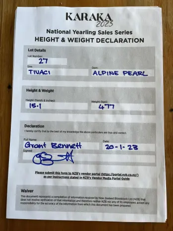 TIVACI (AUS) (Bay 2012-Stud 2017). 6 wins from 1000m to 1600m, ATC All Aged S., Gr.1. Sire of 93 rnrs, 34 wnrs, inc. SW Never Been Kissed (ATC Flight S., Gr.1), Wolverine, One Kiss, SP Just Maybe, Outfit and of Hoops, Kana, Celevacci, Draft Day, Healing Game, Third Time Round, Coyote, Jimmy Dean, Police, The Landing, Turn it Up Tommy, Don't Ask, Eyes to Eye, Jilted Lover, Tadita, Wolf Prince, Wolf Queen, Lippy, Cassidy, etc. 1st dam ALPINE PEARL, by Black Minnaloushe. Winner at 2000m. Half-sister to ALPINE HEIGHTS, Alpine Julz (dam of MANA NUI). This is her fifth living foal. Her fourth foal is a 2YO. Dam of two foals to race- Alpine Falls (g. by Sacred Falls). Placed at 3 in 2021-22 in Aust. Cya Maria (f. by Ghibellines). Placed to 2021-22. 2nd dam ALPINE DELIGHT, by Bluebird. 9 wins 1800m to 2400m, NZ$110,650, Southland RC Invercargill Gold Cup, L-twice, CJC Dunedin Cup Trial, WRC Summer Cup, CJC Fitzgerald Arms Tavern H., Yesberg Insurance Services H., 2d Otago RC Dunedin Gold Cup, Gr.3. Half-sister to ADVENTADOR, WINNING GLORY, Southern Heights (dam of HONEY RIDER). Dam of 4 named foals, all raced, 3 winners, inc:- ALPINE HEIGHTS (Spartacus). 12 wins 1600m to 2400m, NZ$224,838, WRC Trentham S., Gr.3, Otago RC Dunedin Gold Cup, L, CJC Founders Cup, Otago RC Queenstown Cup, 2d CJC Spring Classic, L. Alpine Julz. Winner at 2200m. Dam of- MANA NUI (No Nay Never). 2 wins at 1200m, 1400m, NZ$99,350, A$15,500, in 2021-22, Hawke's Bay Guineas, Gr.2, 4th New Zealand Two Thousand Guineas, Gr.1. 3rd dam ALPINE BEAUTY, by Khozaam. Winner at 1600m, 3d SAJC Victoria Park H. Sister to Lovers Knot (dam of VIEWED), half-sister to Aurum Heights, Waitryst. Dam of 11 foals, 9 to race, 7 winners, inc:- ADVENTADOR (Fast 'n' Famous). 7 wins at 1200m, NZ$277,150, WRC Telegraph H., Gr.1, Levin S., L, Hawkes Bay NZ Bloodstock Leasing & Finance Sprint H., 3d Hawkes Bay City of Napier Sprint H., L. WINNING GLORY (One Cool Cat). 8 wins 1300m to 2300m, A$520,000, Newcastle Gold Cup, Gr.3, ATC St Johns Park Bowling Club H., 2d ATC Tattersalls Club Cup, L, 3d ATC Premier's Cup, L, Winter Challenge H., L. ALPINE DELIGHT (Bluebird). 9 wins. See above. Divine Shiva. 2 wins at 1600m, 3d ARC Ellerslie Event Centre H. Dam of- Divine Sava (Savabeel). Winner at 1950m in 2021-22, 2d Cambridge JC Maara Grange 2YO S., 3d CJC Inglewood S., L. Southern Heights. 2 wins at 1400m, 1600m. Dam of- HONEY RIDER (Pins). 4 wins-1 at 2-at 1200m, 1300m, NZ$86,075, Hawkes Bay Gold Trail S., Gr.3, 2d Cambridge Breeders' S., Gr.3, Wanganui JC Castletown S., L. Southern Belle. Winner at 1200m. Grandam of- SECOND SLIP (Alamosa). 8 wins-4 in succession-1100m to 1400m, NZ$20,250, A$369,825, to 2021-22, SAJC Leon Macdonald S., L, VRC 2d SAJC Matrice S., L, Balaklava Cup, L, 3d SAJC Matrice S., L. |