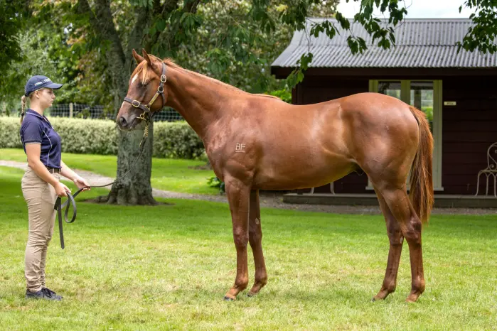 ALMANZOR (FR) (Bay or Brown 2013-Stud France 2018, NZ 2018). 8 wins-3 at 2, Chantilly Prix du Jockey Club, Gr.1. Leading Sire of 2YO's in NZ in 2021-22. Sire of 151 rnrs, 55 wnrs. His oldest SH-bred progeny are 3YOs and inc SW Manzoice (VRC Victoria Derby, Gr.1), Dynastic, SP Virtuous Circle, Andalus, King's Crossing, etc. His NH-bred progeny inc SW Around Midnight, Rajapour, Lassaut, Unanimous Consent, etc. 1st dam MONTRACHET, by High Chaparral. 5 wins 1400m to 1800m, NZ$83,895, CJC Coca-Cola H., Lindauer Enlighten H., Avon City Ford H., NZ Tax Refunds H., 2d CJC David Emerson Accountant H., Phil & Corin Murfitt H., 3d Ashburton RC Ashburton Cup. Half-sister to VOSNE ROMANEE, Meursault, Zenaida (dam of MACROURA). This is her second foal. Her first foal is a 2YO. 2nd dam MADISON AVENUE, by Morcon. Unraced. Half-sister to HEAR THAT BELL. Dam of 8 named foals, 7 to race, 5 winners, inc:- VOSNE ROMANEE (Electronic Zone). Horse of the Year in NZ in 2009-10. Champion Middle Distance in NZ in 2009-10. 9 wins 1400m to 2040m, NZ$1,254,400, A$17,500, ARC Zabeel Classic, Gr.1, Hawkes Bay Kelt Capital S., Gr.1, ARC New Zealand S., Gr.1, Rangitikei Gold Cup, L, Hawkes Bay Hastings RSA H., 2d CJC Coupland's Bakeries Mile, Gr.2, WRC Thompson H., Gr.3, Hawkes Bay Platinum Homes H., 3d ARC New Zealand S., Gr.1, Hawke's Bay Gold Cup, Gr.3, Hawkes Bay GR Kelt Memorial H., L, 4th AJC Queen Elizabeth S., Gr.1, Otaki Maori RC WFA S., Gr.1, Manawatu RC Awapuni Gold Cup, Gr.2-twice, Wanganui S., L. Meursault (Ekraar). 6 wins at 1200m, 1400m, NZ$117,530, Otago RC Fred Ferris Memorial Trophy H., 3d CJC Great Easter S., L, BOP RC Tauranga Classic, L, 4th Otago RC White Robe Lodge H., Gr.3, Hororata RC South Island Thoroughbred Breeders' S., Gr.3, CJC Timaru S., L. Zenaida. Winner at 1600m, 2d ATC TAB Rewards H. Dam of 2 winners- MACROURA (Snitzel). 4 wins-3 in succession at 2-1000m to 1200m, A$306,590, MVRC Typhoon Tracy S., Gr.3, Scone RC Woodlands S., L, ATC Cellarbrations 2YO H., 3d ATC Rendr Delivery Sprint H. 3rd dam MADISON SQUARE, by Marceau. Unraced. Half-sister to Gallant Heights (dam of ALLEGRO). Dam of 8 foals, 7 to race, 6 winners, inc:- HEAR THAT BELL (Ring the Bell). 9 wins 1400m to 2600m, NZ$25,600, A$342,155, VRC Queen Elizabeth S., Gr.2, Werribee Cup, L, VRC International Festival H., 2d AJC Sydney Cup, Gr.1, VATC TS Carlyon Cup, Gr.2, 3d VRC Japan Trophy H., L, 4th AJC Chairmans H., Gr.3. 4th dam GARDEN HEIGHTS, by Philoctetes. Unraced. Half-sister to BATTLE HEIGHTS, ARCTIC HEIGHTS, GOLD HEIGHTS (dam of NOBLE HEIGHTS), MONTY, Claudine (dam of MAPPERLEY HEIGHTS, ROYAL HEIGHTS). Dam of 5 named foals, 3 to race, inc:- Gallant Heights. Raced twice. Dam of 7 winners- ALLEGRO (Red Tempo). Joint Head of The 1994-95 NZ 3YO Free H. 9 wins-1 at 2-1100m to 1600m, WRC Captain Cook S., Gr.1, Waikato Draught Sprint, Gr.1, Otaki Maori RC WFA S., Gr.1. |