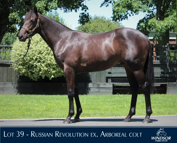 RUSSIAN REVOLUTION (AUS) (Bay 2013-Stud 2018). 7 wins-2 at 2, ATC Galaxy H., Gr.1. Leading First Season Sire in Aust. in 2021-22. Sire of SW Revolutionary Miss (MRC Blue Diamond Prelude (f), Gr.2), Rise of the Masses, SP Communist, Russian Conquest, Russian Roni, Perfect Proposal, Physical Graffiti and of Ekaterina, Kaygeebee, Russian Warrior, Fission, Insurrection, Spicy Hotpot, etc. His oldest progeny are 3YOs. 1st dam ARBOREAL, by Lonhro. Placed at 3 in Aust. Half-sister to Marsupial - Street Cry Success (Sing.). This is her second foal. Dam of one foal to race- Trobriand (c. by Kermadec). Winner at 2 at only start at 1200m in 2022-23. 2nd dam KOALA BEAR, by Exceed and Excel. 2 wins-1 at 2-at 1050m, 1400m, A$98,703, SAJC Cinderella S., L, MRC Race-Tech H., 4th MRC Blue Diamond Preview (f), L, SAJC Queen Adelaide S., L. Half-sister to FLYING MASCOT. Dam of 6 named foals, 5 to race, 3 winners, inc:- Marsupial - Street Cry Success (Sing.) (Street Cry). 8 wins-1 at 2-1100m to 1400m, A$325,335, S$176,765, to 2022 in Aust. and Singapore, ATC Agency Projects Choisir H., BRC Makers Mark P., 2d BRC Queensland Day P., L, 4th BRC Fred Best Classic, Gr.3, Canberra RC Black Opal S., Gr.3. Gumnuts. 2 wins at 1200m to 2022-23 in Aust. 3rd dam LUCKY MASCOT, by Zabeel. Placed at 3 in Aust. Sister to Maythehorsebemagic, World Exclusive (dam of EXCLUSIVE LASS), Axiom (dam of XTRAVAGANT, HE'S REMARKABLE). Dam of 10 foals, 9 to race, 7 winners, inc:- FLYING MASCOT (Tavistock). 6 wins 1300m to 1600m, A$565,525, to 2021-22, VRC Matron S., Gr.3, MRC Mannerism S., Gr.3, MVRC Tesio S., Gr.3, MRC Clanbrooke Racing H., 2d MRC Geoffery Bellmaine S., Gr.3, Bert Bryant H., 3d MVRC Sunline S., Gr.2. KOALA BEAR (Exceed and Excel). 2 wins. See above. 4th dam ARLETTY, by Centaine. 8 wins 1150m to 2000m, NZ$72,800, A$340,250, AJC Villiers S., Gr.2, STC Queen of the Turf S., Gr.2, ARC Royal S., Gr.3, Ladies Mile, Gr.3, AJC Breeders' Classic, L, 2d AJC Angst H., L, ARC Soliloquy S., L. Sister to FIRETAINE, Spillway, River Century (dam of LEGS, GUYNO), three-quarter-sister to SIXTY SECONDS, SPOTTSWOODE, Centico. Dam of 13 foals, 11 to race, 9 winners, inc:- Maythehorsebemagic (Zabeel). 12 wins-3 in succession-1400m to 3900m, 2d BRC Queen's Cup, Gr.3, VRC Andrew Ramsden S., L. World Exclusive. 2 wins at 1716m, 1750m in Aust. Dam of 2 winners- EXCLUSIVE LASS (Nicconi). 3 wins at 1100m, 1200m, A$189,200, Geelong RC Rosemont Stud S., L, 3d MRC How Now S., Gr.3. Producer. Axiom. Unraced. Dam of 6 winners- XTRAVAGANT (Pentire). Champion 3YO in NZ in 2015-16. 6 wins-1 at 2 and 3 in succession-1200m to 1600m, New Zealand Two Thousand Guineas, Gr.1, Waikato Sprint, Gr.1, Cambridge Breeders S., Gr.3. Sire.