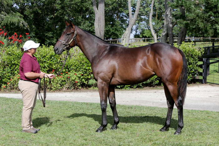 ALMANZOR (FR) (Bay or Brown 2013-Stud France 2018, NZ 2018). 8 wins-3 at 2, Chantilly Prix du Jockey Club, Gr.1. Leading Sire of 2YO's in NZ in 2021-22. Sire of 151 rnrs, 55 wnrs. His oldest SH-bred progeny are 3YOs and inc SW Manzoice (VRC Victoria Derby, Gr.1), Dynastic, SP Virtuous Circle, Andalus, King's Crossing, etc. His NH-bred progeny inc SW Around Midnight, Rajapour, Lassaut, Unanimous Consent, etc. 1st dam POPPY STAR, by Savabeel. Winner at 1200m, 2d ARC Dunstan Feeds Qualifier, Taranaki RC Devon Hotel H., 3d Matamata RC NZB Insurance Pearl Series H., WRC Shoe Clinic H. Half-sister to Raleigh. This is her second foal. Her first foal is a 2YO. 2nd dam POPPIES LAST, by Masterclass. Winner at 1300m. Half-sister to Miss Saigon (dam of SATINKA). Dam of 8 named foals, all raced, 5 winners, inc:- Raleigh (O'Reilly). 5 wins-3 in succession-1000m to 1200m, S$307,164, 3d Singapore 3YO Sprint, L, 4th Singapore 3YO Classic, L. 3rd dam MODINKA, by Mussorgsky. 4 wins at 1200m, HBJC Ocean Beach H. Sister to GUERILLA. Dam of 9 foals, 8 to race, 5 winners, inc:- Springvale Dancer - New Leaf (H.K.). 3 wins-1 at 2-1000m to 1900m, HKJC American Club Challenge Cup, Tate's Cairn H., 2d HKJC Piccadilly H. Miss Saigon. Raced once. Dam of 7 winners- SATINKA (Stravinsky). 4 wins-2 at 2-1200m to 2000m, NZ$279,575, ARC Eight Carat Classic, Gr.2, Royal S., Gr.2, Matamata Breeders' S., Gr.2, Avondale JC 2YO S., 3d ARC Diamond S., Gr.1, Levin Classic, Gr.1, Waikato RC James & Annie Sarten Memorial S., L. Producer. She Wishes (Kenfair). 3 wins-1 at 2-at 800m, 1200m, ARC Fayette Park 3YO H., 2d Hawkes Bay Gold Trail S., Gr.3, Avondale JC Classic S., L, Wanganui JC Waikato Stud S., L, 3d AJC PJ Bell H., L. Dam of- RANGIRANGDOO (Pentire). 10 wins-4 in succession-1200m to 1600m, A$2,234,740, AJC Doncaster H., Gr.1, ATC George Ryder S., Gr.1, MVRC Crystal Mile H., Gr.2, STC Expressway S., Gr.2, AJC Tramway H., Gr.3, 2d ATC George Main S., Gr.1, AJC Epsom H., Gr.1, Chipping Norton S., Gr.1, STC Ranvet S., Gr.1-twice, Apollo S., Gr.2, Shannon S., Gr.2, MVRC Schweppes Crystal Mile H., Gr.2, 4th ATC Queen Elizabeth S., Gr.1, Chipping Norton S., Gr.1, Canterbury S., Gr.2, NSW Tatt's RC Tramway H., Gr.3. Master Hunter - Friendly Gains (H.K.) (O'Reilly). 4 wins-2 at 2-1000m to 1200m, NZ$23,250, HK$4,661,750, HKJC Fujian H., ARC Cathy Campbell Communications H., 2d Taranaki 2YO Classic, Gr.3, HKJC Sha Tin Sprint Trophy, L, 4th HKJC Bauhinia Sprint Trophy, L. Lily Bollinger. Unraced. Dam of 2 winners- Lady Cuvee (Savabeel). 2 wins at 1400m, 1500m, A$148,790, ATC Events by ATC H., 3d BRC Queensland Oaks, Gr.1. Tattinger. Winner at 1600m. Grandam of- SHOUT THE BAR (Not a Single Doubt). 5 wins 1150m to 2000m, A$1,344,075, to 2021-22, ATC Vinery Stud S., Gr.1, VRC Empire Rose S., Gr.1, MVRC Sunline S., Gr.2, 2d Illawarra TC Kembla Grange Classic, Gr.3, 3d VRC Frances Tressady S., Gr.3. |