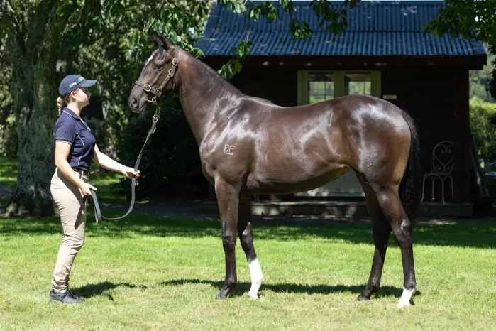 PREFERMENT (NZ) (Bay 2011-Stud 2017). 5 wins from 2000m to 2500m, Victoria Derby, Gr.1, ATC BMW S., Gr.1. Brother to SW Rezoned. Sire of SP Smirk, Tap Dancer and of Canny Man, Legatus, Cosmo Appeal, Horace, Prefer Us, Rocket Lad, Enraptured, Twigman, Peefore, Prefer to be Ready and of the placegetters Dunwoody, Musgrave, Baguio, Cherokee Cherry, Embossing, Isometric, Like it Sweet, Maria, Superior Sam, etc. 1st dam STAND FIRM, by Perfectly Ready. 3 wins at 1200m, 1400m, 2d Waikato RC NZI H. Half-sister to SECRET SPIRIT, Sword in Stone - Columbus County (H.K.). This is her second foal. Her first foal is a 2YO. 2nd dam SPIRIT OF SANDFORD, by Kilimanjaro. Winner at 2000m. Sister to Bakup. Dam of 6 named foals, 5 to race, 3 winners, inc:- SECRET SPIRIT (Swiss Ace). 4 wins in succession-2 at 2-at 1200m, 1400m, NZ$151,150, ARC Bonecrusher S., Gr.3, Great Northern Foal S., L, Levin RC Ryder S., L, Wanganui JC O'Leary S., L, 3d ARC Soliloquy S., L. Sword in Stone - Columbus County (H.K.) (Redwood). 3 wins at 1600m, 1800m, NZ$17,900, HK$13,308,500, HKJC Time Warp H., Reunification Cup, 2d HKJC Standard Chartered Champions & Chater Cup, Gr.1, 3d HKJC Longines Hong Kong Vase, Gr.1, Waikato Guineas, Gr.2, HKJC Jockey Club Cup, Gr.2, 4th HKJC Hong Kong Vase, Gr.1, Sha Tin Trophy H., Gr.2, Jockey Club Cup, Gr.2, Premier P., Gr.3-twice. 3rd dam DASTARIA, by Stark South. 4 wins at 2000m, 2100m, Waikato RC Ethereal H., Avondale JC Dunstan Stayers' Championship Qualifer, 2d Waikato RC Eprinex H., 4th ARC HIH Insurance Classic, L. Half-sister to WALTERMITTY. Dam of 7 foals, 6 to race, 5 winners, inc:- Bakup (Kilimanjaro). 6 wins 2000m to 2500m, NZ$143,750, A$19,365, ARC Auckland Co-Op Taxis H., Hawkes Bay Bluewater Hotel H., Avondale JC Carol's TAB H., Waikato RC Complete Construction H., 2d CJC Metropolitan Trophy, Gr.3, 3d Manawatu Cup, Gr.3, 4th VRC St Leger, L. Bedford. 8 wins 1600m to 3300m, A$437,455, to 2022-23, MRC Mal Seccull H., Ladbrokes Multiverse H., Neds Toolbox H., Long Fine H., Ladbrokes for Challenge H., 4th MRC Mornington Cup Prelude, L, BRC Tails S., L. Plymouth Road. 8 wins 1200m to 2400m, A$286,630, ATC TAB Rewards H., Evergreen Turf H., Agency Real Estate H., MRC Karingal FNC Reunion H. Sheiswhatsheis. 4 wins 1600m to 2200m, 3d Westland RC West Coast Miss Scenicland S., BOP RC Creedence Revisited S. Dam of- Miss Balvenie. 3 wins at 1000m, 1100m to 2022-23, MRC Ladbroke it H. 4th dam DARIA'S FUN, by Go Fun. Champion stayer in NZ in 1988. 12 wins 1400m to 3200m, NZ$511,765, A$14,600, Wellington Cup, Gr.1, (3200m course record), ARC Queen Elizabeth H., Gr.3, WRC Trentham S., Gr.3, Counties Cup, L, ARC Epsom Breeders' H., Avondale JC New Zealand Sires' Championship S., Ambassador H., 2d Auckland Cup, Gr.1, 3d ARC Queen Elizabeth H., Gr.3, Alison S., L. Dam of 7 foals, 5 to race, all winners- WALTERMITTY (Grosvenor). 5 wins 1600m to 3200m, NZ$163,035, A$10,500, New Zealand Cup, Gr.2, ARC Mitchelson Cup, L, Ecolab H. |