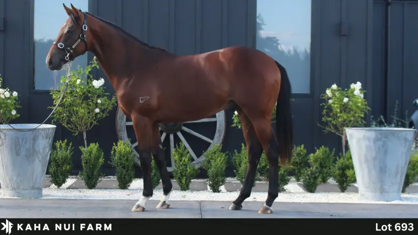 U S NAVY FLAG (USA) (Bay or Brown 2015-Stud in Ire. 2019, NZ 2019). 5 wins-4 at 2-6f to 7f, Newmarket July Cup, Gr.1. Brother to SW Roly Poly. His oldest SH-bred progeny are 2YOs and inc the placegetters Platinum Designs, etc. His NH-bred progeny inc SW Love Reigns (Saratoga Bolton Landing S., L), Ocean Vision and of Stripesof Stars, Nibras Rainbow, Chelsea Green, Ibiza Love, Kaasib, Mister Staple, Moqui Marble, etc. 1st dam CARDRONA, by O'Reilly. Winner at 1200m, 3d Otago RC Southern Motor Group H. Three-quarter-sister to Palace General. This is her second foal. Her first foal is a 2YO. 2nd dam PINDERELLA, by Pins. Raced 3 times. Sister to Perfect Pins, blood-sister to CREPE DE CHINE, GLAM SLAM, Pretty (dam of BONNY O'REILLY, PRETTY TO SEA), half-sister to Palace General, Zinly. Dam of 5 named foals, 4 to race, 2 winners, inc:- 3rd dam LA CENT, by Centaine. Winner at 2 at 1100m, 3d Hawkes Bay Courier Post Juvenile H., Waikato RC Hamilton Vets Juvenile H. Sister to STARMAN II, Escada (dam of GLAMOUR PUSS, VISION AND POWER, RARE INSIGHT, ESCADAIRE), Cazuleigh (dam of THE FATZ), Gio (dam of CREPE DE CHINE, ARENTI, GLAM SLAM), three-quarter-sister to GIORGIO, LA ROSE NOIR, Double Roy, Habaine, half-sister to Khairleigh (dam of DANZIGA). Dam of 14 foals, all raced, 8 winners, inc:- Perfect Pins (Pins). Champion 3YO Sprinter in Malaysia in 2009. 6 wins 1000m to 1200m, 3d Singapore TC Krisflyer International Sprint, Gr.1. Palace General (O'Reilly). 13 wins-6 in succession-1000m to 1400m in Macau, 2d Macau Chairman's Challenge Cup, L, Spring Trophy, L, Summer Trophy, L, 3d Macau Chairman's Challenge Cup, L, Macau Cup, L. Zinly (Danasinga). 9 wins at 1200m, 1400m, S$629,768, 2d Singapore TC Open H.-twice, 3d Singapore TC Lion City Cup, L, Singapore 4YO Sprint, L. Penny Opera. 5 wins-2 at 2-at 1000m, 1200m, STC Pony Express 2YO H. Dam of- Special King (Magnus). 4 wins at 1100m, S$304,821, 2d Singapore TC Kranji S., 3d Singapore TC Garden City Trophy, L, Kranji A S., Kranji S. Morethanapenny. Placed at 3 in Aust. Dam of 4 winners- Flying Krupt (Krupt). 5 wins-3 in succession-1050m to 1400m, A$233,300, SAJC Holdfast Insurance H., 2d SAJC City of Adelaide H., L. 4th dam CELIA LEIGH, by Sound Reason. 3 wins at 2 at 800m, 1200m, VATC Proud Miss H. Half-sister to GIORGIO, Habania. Dam of 11 foals, all winners, inc:- STARMAN II (Centaine). 7 wins at 1200m, 1600m in Malaysia, Selangor Gold Cup, L, Singapore TC Raffles Cup, L, Selangor TC Super Level S. Escada (Centaine). 4 wins 1100m to 1400m, VRC Wrap Around H., Avondale JC Ford Telstar 3YO H., 2d MVRC Tesio S., Gr.3. Dam of 11 winners- VISION AND POWER (Carnegie). 10 wins-1 at 2-1400m to 2000m, A$2,072,675, AJC Doncaster H., Gr.1, STC George Ryder S., Gr.1. GLAMOUR PUSS (Tale of the Cat). 9 wins at 1200m, 1300m, NZ$11,900, A$1,236,300, VRC Salinger S., Gr.1, SAJC Goodwood H., Gr.1. Producer. |
