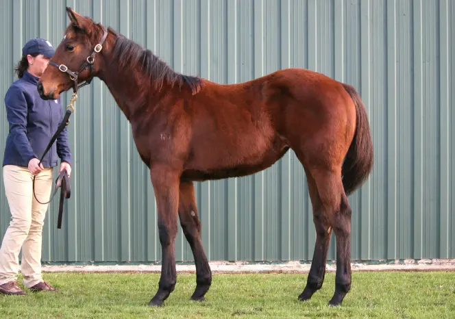 VADAMOS (FR) (Bay 2011-Stud 2017). 8 wins from 1600m to 2400m, Chantilly Prix du Moulin de Longchamp, Gr.1. Leading Second Season Sire in NZ in 2021-22. Sire of 259 rnrs, 126 wnrs, inc. SW La Crique (Matamata RC Arrowfield Stud P., Gr.1), Devastate, Grace's Secret, Art de Triomphe, Spycatcher, SP Kazalark, Missy Moola, Warsaw, Caboche, Messidor, Luisa Casati and of Ivanka, Oo de Lally, High Fibre, Iken, etc. 1st dam SILK, by Pentire. 2 wins at 2000m. This is her third foal. Her second foal is a yearling. Her first foal is a 2YO. 2nd dam DE'COLLETAGE, by Ekraar. 3 wins 1200m to 1580m, Rotorua RC Vero.co.nz H., 2d ARC Hirepool H., Waikato RC Lodge City Rentals H., 3d Waikato RC Loch Haven Series Final H. Sister to EKSTREME, half-sister to Maradona, Pellegrini. Dam of 3 foals, 2 to race, both winners, inc:- I'm Buxom. Winner at 1300m, 2d MRC No Fuss Events H. 3rd dam CASHCADE, by Anziyan. Winner at 1100m, 2d Waikato RC Jardine Bloodstock Services H. Half-sister to BLACKROCK COLLEGE, (Master) Veloce, Carnivale Queen (dam of SPURCRAFT). Dam of 11 foals, 9 to race, 8 winners, inc:- EKSTREME (Ekraar). 7 wins 1200m to 2100m, NZ$322,450, A$65,000, WRC Captain Cook S., Gr.1, Waikato RC Cal Isuzu S., Gr.2, Cambridge JC Travis S., Gr.2, Masterton RC Lowland S., Gr.3, Cambridge JC New Zealand Bloodstock Insurance 3YO S., 2d BTC Doomben Roses, Gr.3, WRC Hutt News H., 3d BRC Brisbane Cup, Gr.2. Dam of 4 winners- Ekstrememiss. 5 wins at 2000m, 2200m, NZ$83,244, to 2022-23, CJC Clean Up Canterbury H., Amateur Championship H. Maradona (Mr. Nancho). Winner at 1400m, Hawkes Bay Forbes 3YO H., 3d Hawke's Bay Guineas, Gr.2, Hawkes Bay Russell Roads 3YO H. Pellegrini (Mr. Nancho). 6 wins-3 in succession-1200m to 1400m, Te Aroha JC Marks Ewen & Associates S., BRC Bundaberg Rum H., Cambridge JC Raffles Farm H., BOP RC Gartshore H., 3d Ipswich TC Eye Liner S., L. Mr Boomsday. Winner at 2 at 1250m, ATC TAB Early Quaddie 2YO H. 4th dam MARSCADE, by St Hilarion. Winner at 1200m, 3d CJC TVNZ H. Dam of 9 foals, 7 to race, 4 winners, inc:- BLACKROCK COLLEGE (Volksraad). 5 wins-1 at 2-1200m to 1600m, NZ$160,700, A$5,000, WRC Desert Gold S., Gr.3, Masterton RC Lowland S., Gr.3, WRC Anniversary H., L, 2d New Zealand One Thousand Guineas, Gr.1, Waikato RC Sir Tristram Fillies Classic, Gr.2. Dam of- Sultry Assassin (Keeper). 6 wins 1400m to 2200m, Counties RC Vernon & Vazey Truck Parts H., 3d CJC Canterbury Breeders S., L. (Master) Veloce (Volksraad). Winner at 1600m, 2d ARC Eclipse S., Gr.3. Carnivale Queen. Placed at 3 in Aust. Dam of- SPURCRAFT (Jet Spur). 10 wins 900m to 1110m, A$462,875, BRC Bribie H., L, TAB H., Captain Sonador H., SCTC Coastline BMW M Sport H., BRC Xplore H., 2d BRC Chief de Beers H., L, 4th BRC Bribie H., L. |