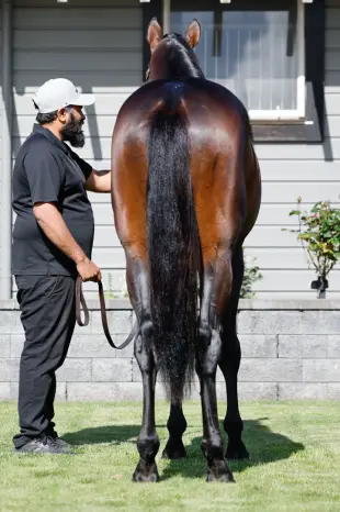 TARZINO (NZ) (Bay 2012-Stud 2017). 4 wins from 1400m to 2500m, Victoria Derby, Gr.1. Sire of 105 rnrs, 41 wnrs, inc. SW Gypsy Goddess (BRC Queensland Oaks, Gr.1), Jungle Magnate - Beautyverse (H.K.), SP Mountain Guest, Tarex, Bitcoin, Foreign Raider and of Natural Mystic, Artzino, Born Hustler, Crouch, Torranzino, Chayse 'n' Noah, Cristalino, Kerchak, Star Ballot, Stark Raving, Te Toki, By Nine, Strongbow, etc. 1st dam MARY OF MODENA, by Encosta de Lago. Placed at 3 in Aust. Half-sister to Lady of the Garter (dam of STONEDANCE). This is her eleventh foal. Her tenth foal is an unraced 3YO. Dam of six foals to race, five winners, inc:- CHAILLOT (f. by Testa Rossa). 6 wins-2 at 2 and 3 in succession-1200m to 1400m, A$632,175, to 2022-23, VRC Frances Tressady S., Gr.3, Anzac Day S., L, MRC Testa Rossa S., L, SCTC Sunshine Coast Cup, L, VRC Rokon P., 3d Tattersall's Tiara, Gr.1, MRC Ladies Day Vase, Gr.3, 4th VRC Empire Rose S., Gr.1. Media Man (g. by Press Statement). 5 wins to 1500m, A$120,300, to 2022-23 in Aust. Bay of Modena (f. by Mossman). 2 wins at 1000m in Aust. Titanium Jack (g. by Testa Rossa). Winner at 1200m. Tanned (g. by Big Brown). Winner at 1728m in Aust. 2nd dam CROWNING TRIBUTE, by Diesis. Unraced. Three-quarter-sister to CHINESE JUSTICE (dam of STRIKE HARD, DR MORE, PRESUMED INNOCENT), Sharpatan (dam of ISOLDA), half-sister to City Honours, Tambara (dam of UPSTAGED). Dam of 9 foals, 6 to race, 3 winners, inc:- Lady of the Garter. Placed at 3 in Aust. Dam of- STONEDANCE (Red Giant). Champion 2YO in Singapore in 2016. 4 wins to 1200m, S$322,852, Singapore TC Aushorse Golden Horseshoe, L. 3rd dam IKEBANA, by Sadler's Wells. Winner at 1¼m, Sandown Crest Hotels S. Sister to Youm Jadeed (dam of YOUHADYOURWARNING), half-sister to Guilty Secret, Tobolsk, Taiwanese (dam of CHINESE JUSTICE). Dam of 11 named foals, 5 to race, 3 winners, inc:- City Honours (Darshaan). Winner at 2 at 1m, £395,764, Doncaster Amco Corporation 2YO S., 2d The Derby, Gr.1, Irish Derby, Gr.1. Sire. Tambara. Unraced. Dam of 5 winners- UPSTAGED (In the Wings). 3 wins at 1200m, 1600m, NZ$24,500, A$149,400, SAJC Thomas Elder S., L, 2d Avondale Gold Cup, Gr.1, BTC Doomben Roses S., Gr.3, Ballarat Cup, L. Dam of 6 winners- Pemberley (Darci Brahma). 7 wins 1400m to 2050m, A$272,265, 3d MRC Herbert Power S., Gr.2, Brisbane Cup, Gr.2. Outshine (Darci Brahma). 4 wins-3 in succession-1400m to 2015m, 2d CJC Canterbury Belle S., L. Dam of 3 winners- Lord Ardmore (Reliable Man). 5 wins 1400m to 1900m, NZ$57,340, A$458,950, to 2022-23, 3d ATC Premier's Cup, Gr.3. El Pauji (Flying Spur). 6 wins-1 at 2-to 1600m, A$359,387, 2d SAJC CS Hayes Memorial Cup, L, 3d VRC Rose of Kingston S., Gr.2. Grandam of- CHEERS BROTHERS (Deep Field). 6 wins-4 in succession-1500m to 1800m in Macau, Macau Derby, L. |