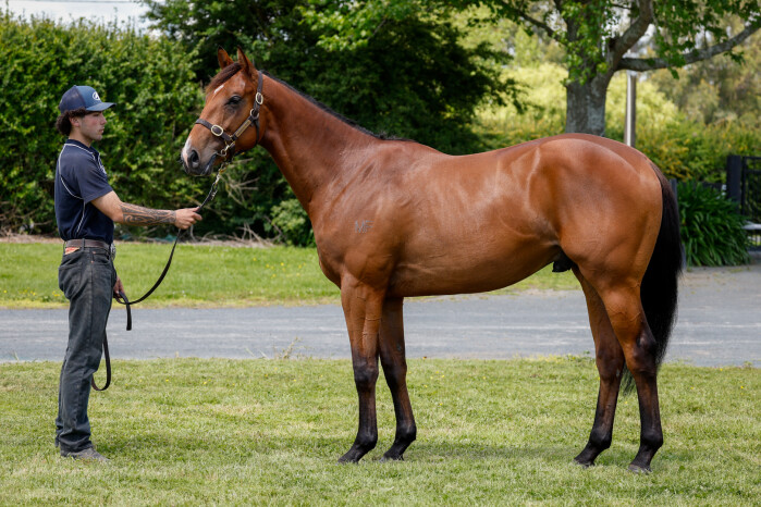 JUSTIFY (USA) (Chestnut 2015-Stud U.S.A. 2019, Aust. 2019). 6 wins 7f to 1½m, Kentucky Derby, Gr.1. Half-brother to SW The Lieutenant. Sire of 166 rnrs, 70 wnrs, 16 SW. His oldest SH-bred progeny are 3YOs and inc SW Learning to Fly (ATC Reisling S., Gr.2), Air Assault, Legacies and of Californian, etc. His NH-bred progeny inc SW Aspen Grove (Belmont Oaks, Gr.1), Arabian Lion, Ramatuelle, City of Troy, Statuette, etc. 1st dam NO TRICKS, by Savabeel. 4 wins 1300m to 2000m, NZ$66,300, A$125,500, Qld Tatt's RC Daybreak Lover S., L, CJC Warstep S., L, 2d CJC Inglewood S., L, ARC Tip Top S., Edge Nights with Marty & Steph H., 4th ARC Great Northern Guineas, Gr.2, Wellington Guineas, Gr.2, ARC Mr Tiz Trophy, Gr.3, Ipswich Cup, L. This is her fourth foal. Dam of two foals to race. 2nd dam MEZAIRE, by Al Akbar. 6 wins 1600m to 2050m in Aust. Half-sister to AMAZING CHARM. Dam of 4 foals, all raced, 2 winners- NO TRICKS (Savabeel). 4 wins. See above. Hayleys Comet - Chinese Scholar (Mac.). 5 wins-1 at 2-at 1100m, 1200m in NZ and Macau, 2d Marton JC Rangitikei Tyre Centre 2YO H. 3rd dam GENUINE CHARMER, by Great Charmer. Unraced. Dam of 8 named foals, 7 to race, 3 winners, inc:- AMAZING CHARM (Amazing Dancer). 9 wins 1600m to 2200m, NZ$104,145, Southland RC Invercargill Gold Cup, L, Riverton Cup, Wairio Cup-twice, Hawkes Bay Avis Rent-a-Car HB H., 2d Waikouaiti Cup, L, Otago RC Wrightson Real Estate H., CJC Yesberg Insurance Services H., Wanganui JC Red Lion H., Wairio JC Wairio Cup, North Canterbury Cup, Gore Cup, Taranaki RC Carters H., 3d WRC Carters H., CJC Inter-Island Horse Transport H., 4th CJC Winter Classic S.H., L, Waikouaiti Cup, L. Irish Charmer. 5 wins 1600m to 3231m, CJC Schweppes H., Coaster's Tavern H., 3d MVRC Essendon Hyundai 145 Highweight H. 4th dam BONAFIDE, by Pharly. Winner at 2100m in France. Sister to BELL TEMPO, half-sister to BLUE CHIP, BORGIA, Blue Mambo, Brunella, Bojador, Banlieu. Dam of 4 named foals, 3 to race, inc:- Bonafide Coup. Placed in NZ and Aust. 5th dam BLAUE WOGE, by Kaiseradler. 2 wins in Germany. Half-sister to Blauer Prinz, Blaue Flamme (dam of BEO). Dam of 14 foals, 13 to race, 11 winners, inc:- BLUE CHIP (Neckar). 8 wins 1700m to 2100m in France and Germany, Saint-Cloud Prix Caracalla, Gr.3, 2d Saint-Cloud Prix Exbury, Gr.3, Longchamp Prix de Satory, L, 3d Longchamp Prix du Nabob, L. BELL TEMPO (Pharly). 4 wins 1600m to 2100m, Deauville Prix de la Ville de Trouville, L, Grand Handicap de Deauville, L, 3d Longchamp Prix Saint-Roman, Gr.3, Deauville Prix Ridgway, L, Bordeaux Grand Prix des Provinces, L.