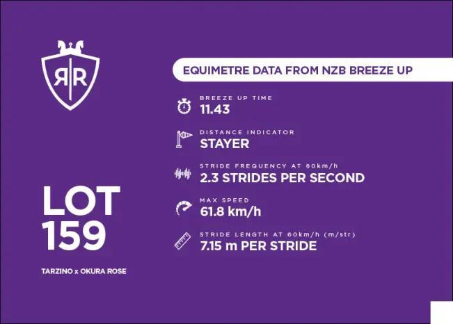 TARZINO (NZ) (Bay 2012-Stud 2017). 4 wins from 1400m to 2500m, Victoria Derby, Gr.1. Sire of 105 rnrs, 41 wnrs, inc. SW Gypsy Goddess (BRC Queensland Oaks, Gr.1), Jungle Magnate - Beautyverse (H.K.), SP Mountain Guest, Tarex, Bitcoin, Foreign Raider and of Natural Mystic, Artzino, Born Hustler, Crouch, Torranzino, Chayse 'n' Noah, Cristalino, Kerchak, Star Ballot, Stark Raving, Te Toki, By Nine, Strongbow, etc. 1st dam OKURA ROSE, by Makfi. Unraced. Half-sister to Samski, Spina Rosa (dam of THE INFERNO). This is her third foal. Her second foal is an unraced 3YO. Her first foal is unraced. 2nd dam GYPSY GEENA, by Woodman. Winner at 1600m, 2d MRC Moduline P., 3d Waikato RC Davinci Solutions H. Half-sister to LOTTERIA, Rose of Sharon. Dam of 7 foals, 6 to race, 4 winners, inc:- Samski (Exceed and Excel). 4 wins 1050m to 1200m, 3d MRC Chairman's S., L. Spina Rosa. Placed at 3 in Aust. Dam of 2 winners- THE INFERNO (Holy Roman Emperor). Horse of the Year in Singapore in 2020. 9 wins-4 in succession-1000m to 1600m, A$929,925, S$906,573, MVRC Ian McEwen S., Gr.2, Singapore TC Lion City Cup, L, Aushorse Golden Horseshoe, L, Saas Fee S., L, 2d MVRC AJ Moir S., Gr.1. D'Aguilar. 7 wins-3 in succession-1350m to 2000m, A$412,200, to 2022-23, Pakenham RC William Newton VC H., VRC M Kiely Trophy. 3rd dam Rose Reward, by Sir Tristram. 3 wins-1 at 2-1300m to 2000m, A$121,840, Albury Cup, AJC Governor Macquarie 2YO H., Fujitsu the Integrators H., 3d VATC One Thousand Guineas, Gr.1, City Tattersall's Club Cup, L, AJC Thermal Power H., Lone Star Steakhouse & Saloon H., Grace Bros H., 4th STC Canterbury Guineas, Gr.1, VRC Wakeful S., Gr.2, AJC Silver Shadow S., Gr.2. Three-quarter-sister to CHIMING KNIGHT, Night Club, Twistalot. Dam of 9 foals, 7 to race, 5 winners, inc:- LOTTERIA (Redoute's Choice). 8 wins-5 in succession-1200m to 1600m, A$1,491,560, AJC Flight S., Gr.1, VRC Myer Classic, Gr.1, AJC Surround S., Gr.2, STC Shannon S., Gr.2, Newcastle JC Spring S., Gr.3, AJC Show County H., L, 2d MVRC WS Cox P., Gr.1. Dam of 6 winners- Pink Ivory (Redwood). 3 wins 1600m to 1880m, A$228,480, to 2022-23, ATC Download the TAB App H., 2d ATC Aspiration H., Gr.3. Fonssagrives. Winner at 2400m in Aust. Dam of 4 winners- Statuesquely (Medaglia d'Oro). 2 wins at 1400m, 1600m, A$144,940, ATC ANZ Bloodstock News H., 2d Gosford RC Belle of the Turf S., Gr.3. Bacio del Vinto. Unraced. Dam of 5 winners- MARRONI (Makfi). 7 wins 1400m to 2300m, NZ$239,531, A$28,200, to 2022-23, Manawatu Cup, Gr.3, 2d BOP RC Japan Trophy, Gr.2. Rose of Sharon (Encosta de Lago). Winner at 1250m, A$131,275, 2d AJC James HB Carr S., L, 3d Queensland Oaks, Gr.1. Dam of 4 winners- Time is Precious (Snitzel). Winner at 2 at 1000m, A$125,450, ATC Harrolds Victory Vein 2YO P., 2d ATC Magic Night S., Gr.3. La Roseraie. Placed in Aust. Dam of- Truly Reliable (Reliable Man). 2 wins at 1300m, 1400m, A$101,693, 2d WATC Belmont Classic, L, All Flags Signs H., 3d WATC Aquanita S., L. |