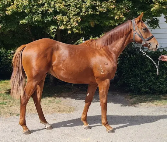 PURE CHAMPION (IRE) (Bay 2007-Stud 2015). 8 wins-1 at 2-from 1200m to 1800m, Hawkes Bay Windsor Park P., Gr.1. Sire of 35 rnrs, 14 wnrs, inc. SP Tyler Eight, Riviera Rebel and of Megalomaniac, Peecee Pussycat, Celebre, Malfurion, Street Fightin Man, Illusion of Paris, He's Tunza Grunt, Dabble, Lim's Puncak Jaya, Hidalgo, Vindicator, Manhattan Spector and of the placegetters Muscovado, Relentless Kayden, etc. 1st dam POINT PARK, by Thorn Park. Unraced. Three-quarter-sister to Miss Thorn, half-sister to TORLESSE, Truthful, Mystique (dam of REPLIQUE), Mystify. This is her eighth living foal. Her seventh foal is a 2YO. Dam of four foals to race, all winners- Vino Valentino (f by Zacinto). Winner at 1400m in 2022-23, 3d Auckland TR Gavelhouse Plus H., Waikato Draught H. Tilly Dunnage (f by Mastercraftsman). 5 wins-3 in succession-at 1600m, 2147m, 2d Otago RC Brocklebanks Dry Cleaners H. Macron (g by Guillotine). Winner at 1400m. Bella Vika (f by Alamosa). Winner at 1350m in Aust. 2nd dam SEAMIST, by Beaufort Sea. 1990 Wrightson Southern Filly of the Year. 12 wins 1400m to 2000m, NZ$367,615, A$2,500, ARC New Zealand S., Gr.1, BOP RC Japan-New Zealand International Trophy, Gr.2, Waikato RC Highview Stud S., Gr.3, Manawatu RC Awapuni Gold Cup, Gr.3, Otago RC James Hazlett S.H., L, Dunedin Guineas, L, CJC Warstep S., L, Otago Mannequin S., L, Ashburton CRC Inglewood S., L, Gore Guineas, L, 2d WRC Thorndon Mile, Gr.1, New Zealand One Thousand Guineas, Gr.1, Te Aroha JC New Zealand Thoroughbred Breeders' S., Gr.2, Otago RC White Robe Lodge H., Gr.3, 3d ARC Easter H., Gr.1, WRC Thorndon Mile, Gr.1, Te Aroha JC New Zealand Thoroughbred Breeders' S., Gr.2. Dam of 10 foals, 8 to race, 7 winners, inc:- TORLESSE (Volksraad). 12 wins-4 in succession-1200m to 3200m, NZ$287,775, A$38,300, New Zealand Cup, Gr.2, CJC Gold Cup, Gr.3, Spring Classic H., Gr.3, Otago RC Dunedin Gold Cup, Gr.3, 3d New Zealand Cup, Gr.2. Truthful (Trustful). 8 wins 1200m to 2130m, NZ$83,375, Otago RC Rotary Club of Mosgiel H., 3d CJC Timaru S., L, Timaru Cup, L. Mystique (Montjeu). 4 wins 1200m to 2000m, CJC The Informant H., North Canterbury Cup, 2d CJC Warstep S., L, Metropolitan Trophy, L. Dam of- REPLIQUE (Darci Brahma). 2 wins at 1400m, 1600m, Southland Guineas, L, CJC NZB Festival Sale H., 2d Otago RC Dunedin Guineas, L. Mystify (Montjeu). 3 wins at 1600m, 2500m, 2d Otago RC Dunedin Guineas, L, North Canterbury RC Canterbury S., L, 3d CJC Warstep S., L. Spray. Raced once. Dam of 10 winners- Corsage (Volksraad). 3 wins-1 at 2-1100m to 1400m, NZ$142,675, S$132,432 in NZ and Singapore, 2d Ashburton RC Ray Coupland S., L, 3d ARC Diamond S., Gr.1, Matamata Breeders' S., Gr.2. Dam of- AOTEA LAD (Savabeel). 5 wins-1 at 2-1100m to 1600m, NZ$424,467, to 2022-23, WRC Wakefield Challenge S., Gr.2, 2d ARC Eclipse S., Gr.3, Matamata RC Slipper S., Gr.3, ARC Karaka 2YO Million, RL, 3d Hawke's Bay Guineas, Gr.2, Matamata RC Kaimai S., L. Miss Thorn (Thorn Park). 5 wins-1 at 2 and 3 in succession-at 1100m, 1400m, 3d Matamata Breeders' S., Gr.2. Producer. |