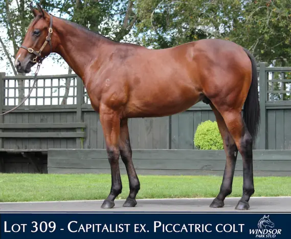 CAPITALIST (AUS) (Chestnut 2013-Stud 2017). 4 wins at 2, ATC Golden Slipper S., Gr.1. Sire of 331 rnrs, 218 wnrs, 15 SW, inc. SW Captivant (ATC Champagne S., Gr.1), Comrade Rosa, Lazzago, Marine One, Cannonball, Encap, Sebonack, Kalashnikov, I'mlovin'ya, Appin Girl, Sovereign Fund, Economics, King Kapa, Profiteer, Tycoon Humma, SP Mexico, Veecee, Latizia, Clemenceau, Gleneagles, Shihonka, Keenan, Miss Drakova, etc. 1st dam PICCATRIC, by Fastnet Rock. 2 wins at 1400m, 2100m in Aust. Sister to My True Love. This is her first foal. 2nd dam LECTRICE, by Encosta de Lago. 4 wins-2 at 2-1200m to 1800m, A$199,675, SAJC Jansz S., Gr.3, MRC Saxony H., WJ (Bill) Adams 2YO H., VRC Havelock H., 4th VRC Thoroughbred Breeders S., Gr.3. Half-sister to LEICA GUV, LIGHT FANTASTIC. Dam of 8 named foals, 7 to race, 4 winners, inc:- My True Love (Fastnet Rock). 3 wins at 1300m, 1400m, A$213,235, ATC Wilson Asset Management H., Tab.com.au H., 2d BRC Dane Ripper S., Gr.2, Sunshine Coast Guineas, Gr.3, 3d ATC TAB Rewards P. 3rd dam LEICA OR NOT, by Kendor. Winner at 1000m in Aust. Three-quarter-sister to Chandrika (dam of FANTASTIC BLUE), half-sister to PHARAOH, Lansdowne Road - Supreme Ruler (Mal.). Dam of 9 named foals, 7 to race, 5 winners, inc:- LEICA GUV (Deputy Governor). Champion 3YO in NZ in 2001-02. Top of The 2001-02 NZ 3YO Free H. (1650m+). 10 wins-2 at 2 and 3 in succession-1150m to 2400m, NZ$468,325, A$16,000, New Zealand Derby, Gr.1, ARC Great Northern Guineas, Gr.2, Avondale Guineas, Gr.2, Counties Cup, Gr.2, Whangarei RC Northland Breeders' S., L, 3d New Zealand Two Thousand Guineas, Gr.1, ARC Queen Elizabeth H., Gr.2, Cornwall H., Gr.3, 4th STC Canterbury Guineas, Gr.1, Hawke's Bay Guineas, Gr.3. LIGHT FANTASTIC (Danehill Dancer). 5 wins in succession 1100m to 1600m, A$1,063,400, VRC Australian Guineas, Gr.1, MRC JJ Liston S., Gr.2, Perri Cutten Cup, Gr.2, MVRC Mitchell McKenzie S., L, 2d AJC All Aged S., Gr.1, MRC Futurity S., Gr.1, MVRC Norman Carlyon S., Gr.2, 3d VRC Gilgai S., Gr.2, 4th MVRC William Reid S., Gr.1, MRC CF Orr S., Gr.1. LECTRICE (Encosta de Lago). 4 wins. See above. Krysia. Placed at 3 in Aust. Dam of 2 winners- Whatalovelyday (Domesday). 3 wins 1350m to 1600m, A$117,050, SCTC Creative Stone H., 3d BRC The Roses S., Gr.2. Dam of- BENEDETTA (Hellbent). 6 wins-4 in succession-1100m to 1300m, A$879,125, to 2023-24, MRC WW Cockram S., Gr.3, VRC Inglis Sprint, 3d VRC Bobbie Lewis H., Gr.2, Sunlight Classic, L. Whatafox (Foxwedge). Winner at 1400m, A$141,350, in 2022-23, 2d Moonee Valley Fillies Classic, Gr.2, VRC Taj Rossi Series Final H., L. 4th dam CHATEAU LEICA, by Century. Raced once. Half-sister to LEICA PLANET, Gold Apple - Dynamite Ace (Mal.), Lady Leica (dam of CANTORIST). Dam of 9 named foals, 7 to race, 6 winners, inc:-