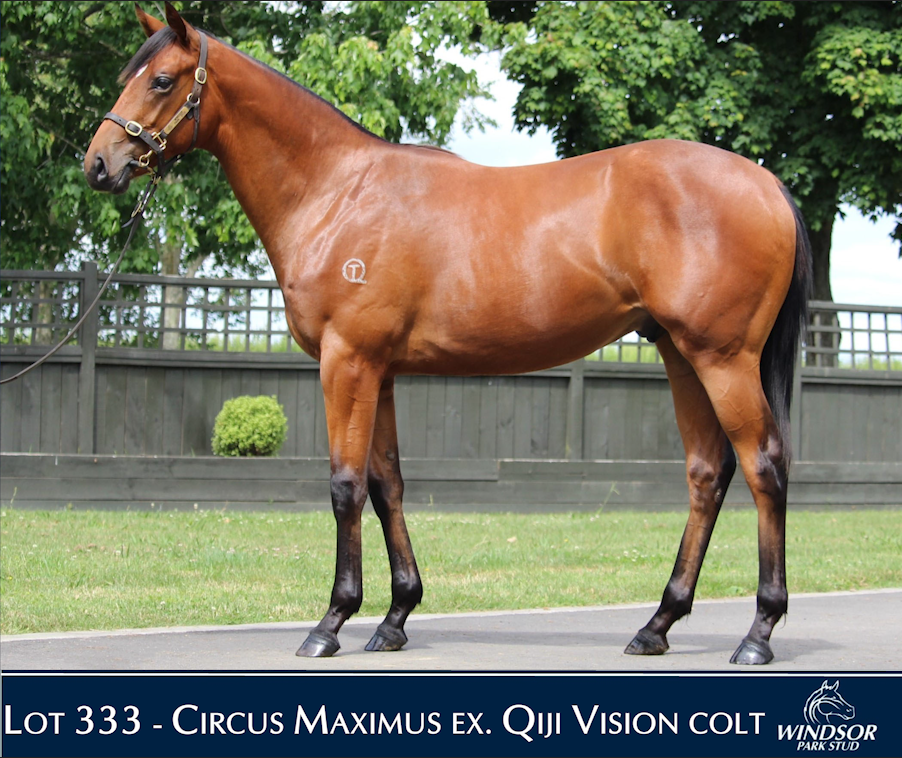 CIRCUS MAXIMUS (IRE) (Bay 2016-Stud Ire. 2021, NZ 2021). Champion 3YO Miler in France in 2019. Champion Older Male Miler in Ireland in 2020. 5 wins-1 at 2-1m to 1¼m, Royal Ascot St James's Palace S., Gr.1, Queen Anne S., Gr.1, ParisLongchamp Prix du Moulin de Longchamp, Gr.1, Chester Dee S., L, 2d Breeders' Cup Mile, Gr.1. Out of SW Duntle. Related to SW Artorius, etc. His oldest SH-bred progeny are yearlings. 1st dam QIJI VISION, by Iffraaj. Unraced. Sister to WHO DARES WINS, half-sister to Mae West (dam of MY BELLA MAE). This is her second foal. Her first foal is a 2YO. 2nd dam Wee Tipple, by Centaine. 3 wins 1000m to 1400m, WRC Bob Charles H., 2d Manawatu RC Flying H., L, WRC Dulux New Zealand Colour Map H. Dam of 9 foals, 7 to race, all winners, inc:- WHO DARES WINS (Iffraaj). 10 wins-3 in succession-1600m to 2100m, NZ$330,800, CJC Canterbury Gold Cup, Gr.3, Easter Cup, L, South Canterbury RC Timaru Cup, L, CJC Christchurch Casino H., Gore Cup, CJC Cashmere Estate H., Christchurch Casino H., 2d CJC Canterbury Gold Cup, Gr.3, Metropolitan Trophy, L, 3d CJC Spring Classic, L, Otago RC Dunedin Gold Cup, L, 4th CJC Winter Cup, Gr.3. Mae West (Sir Percy). 5 wins 1300m to 1600m, NZ$91,575, Hawkes Bay DHL Global Express Sprint H., Rita Best H., Matamata RC Duncan & Ebbett H., 3d WRC Anniversary H., Gr.3, Wairarapa Thoroughbred Breeders' S., L, 4th WRC Cuddle S., Gr.3. Dam of 2 winners- MY BELLA MAE (Deep Field). 5 wins-3 in succession-at 1100m, 1200m, A$571,680, in 2022-23, WATC Placid Ark S., L, Cyril Flower S., L, Amelia Park P., Furphy H., 2d WATC RS Crawford S., L. Banrock. 4 wins 1400m to 2200m, ARC Auckland Co-Op Taxis H., Counties RC Lone Star Pukekohe H., 2d ARC Dunstan Feeds Championship Final. Flynn. 5 wins 1500m to 1600m, CJC Speight's H. Rockburn. 2 wins at 1400m, 1600m in 2022-23, Hawkes Bay LA Ladies Day S. 3rd dam LADY BUBBLES, by Lord Ballina. Winner at 1400m. Sister to Talk Talk, Zilezal, Fine Talk (dam of BRAVE LANCER). Dam of 6 named foals, all winners, inc:- Wee Tipple (Centaine). 3 wins. See above. 4th dam BABBLE, by King Canary. 5 wins 1200m to 1410m, WRC Burnham Welter H., 3d CJC Ferrymead H., Otago RC Prince Charles H. Half-sister to SHUDUP. Dam of 10 foals, 9 to race, 7 winners, inc:- Talk Talk (Lord Ballina). Joint third top filly on The 1991-92 NZ 2YO Free H. 2 wins-1 at 2-at 1200m, 1575m, ARC DB Sports Watch Welter H., 3d Matamata Breeders' S., Gr.2, 4th Manawatu RC Eulogy S., Gr.3. Dam of- Rumour Has it Now (Traditionally). 3 wins at 1400m, 1600m, 2d Manawatu Breeders' S., L, 3d Feilding JC Anzac H., L. Producer. Fine Talk. Winner at 2 at 1000m, WRC Naenae Hotel 2YO H. Dam of 5 winners- BRAVE LANCER (Bahhare). 10 wins-4 in succession-1600m to 2540m, NZ$3,125, A$378,455, STC Winter Cup, L, 2d Geelong Cup, Gr.3. |