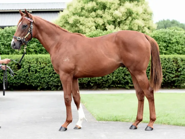 JUSTIFY (USA) (Chestnut 2015-Stud U.S.A. 2019, Aust. 2019). 6 wins 7f to 1½m, Kentucky Derby, Gr.1. Leading First Season Sire in Aust. in 2022-23. Sire of 213 rnrs, 99 wnrs, 22 SW, 5 G1 wnrs. His oldest SH-bred progeny are 3YOs and inc SW Learning to Fly (ATC Reisling S., Gr.2), Air Assault, Star of Justice, Legacies, etc. His NH-bred progeny inc SW City of Troy (Newmarket Dewhurst S., Gr.1), Opera Singer, Aspen Grove, etc. 1st dam AOTEA MISS, by Makfi. Unraced. Half-sister to AOTEA LAD, Safura. This is her second foal. Her first foal is a 2YO. 2nd dam Corsage, by Volksraad. Joint second filly on 2008-09 NZ 2YO Free H. 3 wins-1 at 2-1100m to 1400m, NZ$142,675, S$132,432 in NZ and Singapore, 2d Ashburton RC Ray Coupland S., L, BOP RC Oak Tree Restaurant 3YO P., 3d ARC Diamond S., Gr.1, Matamata Breeders' S., Gr.2, ARC Sunline Vase, L, 4th New Zealand Two Thousand Guineas, Gr.1, Hawkes Bay Gold Trail S., Gr.3, Lowland S., Gr.3. Three-quarter-sister to TORLESSE, half-sister to Miss Thorn. Dam of 7 foals, 5 to race, 3 winners, inc:- AOTEA LAD (Savabeel). Third Leading NZ 2YO Male on 2018-19 International Ratings. 5 wins-1 at 2-1100m to 1600m, NZ$403,042, to 2022-23, WRC Wakefield Challenge S., Gr.2, Waikato RC Traffic Management Waikato Ltd H., BOP RC Frocked Up Girls H., Wanganui JC Dunstan Feeds Qualifier, 2d ARC Eclipse S., Gr.3, Matamata RC Slipper S., Gr.3, ARC Karaka 2YO Million, RL, 3d Hawke's Bay Guineas, Gr.2, 4th Whangarei RC Northland Breeders' S., Gr.3. Safura (Almanzor). Winner at 2000m in 2022-23, 3d Waikato RC Royal S., Gr.2. Rezeki (Ardrossan). Placed at 3 in 2023-24, 3d Hawkes Bay El Roca Trophy, L. 3rd dam SPRAY, by Entrepreneur. Raced once. Half-sister to TORLESSE, Truthful, Mystique (dam of REPLIQUE), Mystify. Dam of 11 named foals, 10 to race, all winners, inc:- Corsage (Volksraad). 3 wins. See above. Miss Thorn (Thorn Park). 5 wins-1 at 2 and 3 in succession-at 1100m, 1400m, 3d Matamata Breeders' S., Gr.2. Producer. 4th dam SEAMIST, by Beaufort Sea. 1990 Wrightson Southern Filly of the Year. 12 wins 1400m to 2000m, NZ$367,615, A$2,500, ARC New Zealand S., Gr.1, BOP RC Japan-New Zealand International Trophy, Gr.2, Waikato RC Highview Stud S., Gr.3, Manawatu RC Awapuni Gold Cup, Gr.3, Otago RC James Hazlett S.H., L, Dunedin Guineas, L, CJC Warstep S., L, 2d New Zealand One Thousand Guineas, Gr.1. Dam of 10 foals, 8 to race, 7 winners, inc:- TORLESSE (Volksraad). 12 wins-4 in succession-1200m to 3200m, NZ$287,775, A$38,300, New Zealand Cup, Gr.2, CJC Gold Cup, Gr.3. Mystique (Montjeu). 4 wins 1200m to 2000m, CJC The Informant H., North Canterbury Cup, 2d CJC Warstep S., L, Metropolitan Trophy, L. Dam of-