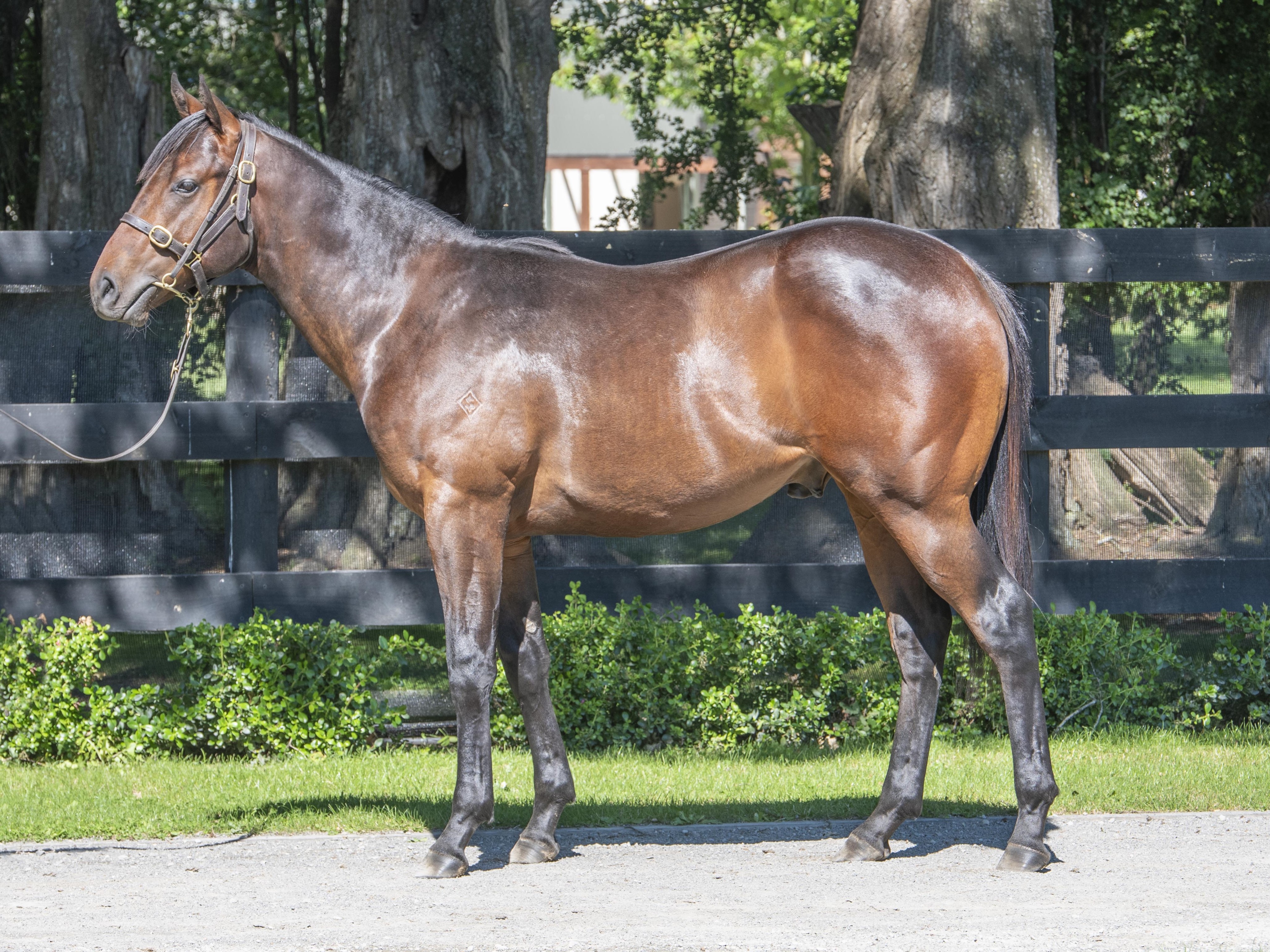 LUCKY VEGA (IRE) (Bay 2018-Stud Aust. 2021, Ire. 2022). 2 wins at 2 at 6f, £165,624, €172,645, Curragh Phoenix S., Gr.1, 2d Royal Ascot St James's Palace S., Gr.1, Newmarket Middle Park S., Gr.1, Curragh Railway S., Gr.2, 3d The Two Thousand Guineas, Gr.1, 4th Irish Two Thousand Guineas, Gr.1. Grandson of SW Satwa Queen (Longchamp Prix de l’Opera, Gr.1), a half-sister to SW Spadoun. His oldest progeny are yearlings. 1st dam BADEA, by Darci Brahma. 2 wins at 1200m, 1600m, 3d Whangarei RC Northland Business Systems H. Half-sister to LILIKOI. This is her first foal. 2nd dam BARBADINE, by Giant's Causeway. 3 wins 1900m to 2300m in Ireland and NZ, 2d Waikato RC Nottingham Castle Hotel H. Half-sister to REQUINTO, Independence Day, Compelling (dam of LAST KINGDOM), Filia (dam of DETERMINED KINGDOM). Dam of 6 foals, all raced, 3 winners- LILIKOI (Charm Spirit). 3 wins 1200m to 1600m, Manawatu RC Eulogy S., Gr.3, 3d ARC Royal S., Gr.2. Granadilla. Winner at 1400m. Dam of 2 winners- Pure Imagination. 3 wins at 1200m to 2022-23, BOP RC Ray White Greerton H. Swazi. Winner at 1000m in 2022-23, 3d WRC Wellington Guineas Prelude. DAMSON, by Entrepreneur. Champion 2YO Filly in Ireland in 2004. Joint Champion 2YO Filly in GB in 2004. 4 wins in succession at 2 at 5f, 6f, Curragh Phoenix S., Gr.1, Royal Ascot Queen Mary S., Gr.2, Naas Swordlestown Stud Sprint S., L, 3d Newmarket Cheveley Park S., Gr.1. Half-sister to GEMINIANI. Dam of 13 foals, 11 to race, 9 winners, inc:- REQUINTO (Dansili). 4 wins at 2 at 5f, Doncaster Flying Childers S., Gr.2, Goodwood Molecomb S., Gr.3, Tipperary S., L. Sire. Independence Day (Dansili). 4 wins-1 at 2-5f to 6f, 2d Curragh S., Gr.3, Tipperary S., L. Compelling. Winner at 7¼f in Ireland. Dam of 3 winners- LAST KINGDOM (Frankel). 5 wins-3 in succession-1600m to 1800m, €111,910, A$5,100, HK$2,830,150, Maisons-Laffitte Prix Daphnis, Gr.3, HKJC Deep Water Bay H., 4th Deauville Prix Guillaume d'Ornano, Gr.2. Ivyetsu (Tapit). Winner at 2, 3d Gulfstream Park Sweetest Chant S., Gr.3. Mondelice. Unraced. Dam of 2 winners- DUBAI HONOUR (Pride of Dubai). 6 wins-1 at 2 and 3 in succession-1643m to 2011m, £479,791, €342,000, A$3,651,500, HK$4,210,000, to 2022-23, ATC Queen Elizabeth S., Gr.1, Ranvet S., Gr.1, Deauville Prix Guillaume d'Ornano, Gr.2, ParisLongchamp Prix Dollar, Gr.2, Newmarket Bet365 H., Haydock 2YO S., 2d Ascot Champion S., Gr.1, York S., Gr.2, Kempton September S., Gr.3, 3d HKJC Queen Elizabeth II Cup, Gr.1, 4th York International S., Gr.1, Sandown Eclipse S., Gr.1, HKJC Hong Kong Cup, Gr.1.