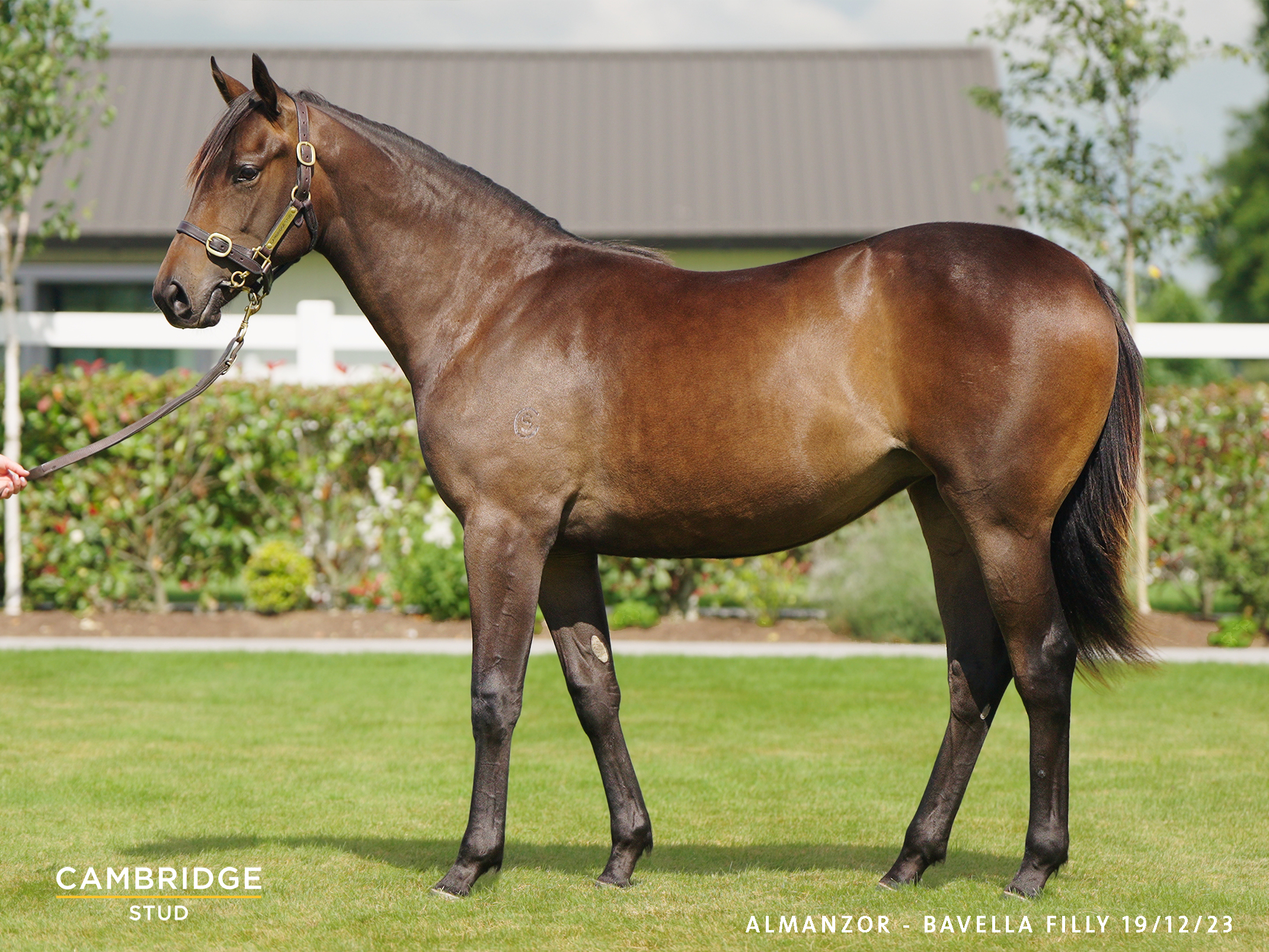 ALMANZOR (FR) (Bay or Brown 2013-Stud 2018). 8 wins-3 at 2, Chantilly Prix du Jockey Club, Gr.1. Leading Sire of 2YOs in NZ in 2021-22. Sire of 282 rnrs, 138 wnrs, 10 SW, inc. SW Manzoice (VRC Victoria Derby, Gr.1), Castle Way, Athabascan, Cheval d'Or, (Lord) Dynastic, Around Midnight, Rajapour, Katoucha, Lassaut, Unanimous Consent, SP Mary Shan, Andalus, Blue Solitaire, Devildom, Holymanz, Marvelouz, Mehzebeen, etc. 1st dam BAVELLA, by Snitzel. 3 wins-2 at 2-880m to 1200m, NZ$138,750, Counties Challenge S., L, ARC Partners Life 2YO H., Waikato RC Ten Sovereigns H., 2d ARC King's P., Gr.3, Soliloquy S., Gr.3, Hawkes Bay Gold Trail S., Gr.3, 3d ARC Mr Tiz Trophy, Gr.3, 4th ARC Diamond S., Gr.1, New Zealand One Thousand Guineas, Gr.1. Half-sister to PINARELLO, (LA) VERNAZZA. This is her first foal. 2nd dam ZONZA, by Zabeel. 5 wins 1400m to 2000m, NZ$79,800, A$111,750, MRC Ladies Day Vase, Gr.3, ARC Celebrating Habibi Mile H., Waikato RC Valachi Downs H., Hawkes Bay Tumu ITM Metric Mile H., 2d ATC Lord Mayor's Cup, L, ARC Champion Stakes Prelude, L, 4th Hawkes Bay Spring Classic, Gr.1, BOP RC Japan-New Zealand International Trophy, Gr.2, ARC Westbury Classic, Gr.3. Half-sister to Our Shakira. Dam of 6 named foals, 5 to race, 3 winners, inc:- PINARELLO (Tavistock). 4 wins 1600m to 2400m, NZ$131,075, A$621,500, BRC Queensland Derby, Gr.1, Auckland TR Championship S., Gr.2, Ecochill H. (LA) VERNAZZA (More Than Ready). Second NZ 2YO Filly on 2019-20 International Ratings. 2 wins at 2 at 1200m, NZ$127,200, Matamata Breeders' S., Gr.2, ARC NZB Insurance Pearl Series 2YO S., 2d ARC Diamond S., Gr.1, 4th Waikato RC J Swap Sprint H., Gr.3. BAVELLA (Snitzel). 3 wins. See above. Zazon. Placed at 3 in 2022-23. 3rd dam SONET, by Gold Brose. Raced once. Dam of 11 named foals, all raced, 8 winners, inc:- ZONZA (Zabeel). 5 wins. See above. Our Shakira (Cullen). 2 wins-1 at 2-at 1000m, 1200m, 3d CJC Canterbury Belle S., L, Middle Park P. Dam of 5 winners- Emilio. 2 wins at 1400m, 1600m, 2d Southland RC Sheet Metalcraft H. Maranello. 2 wins at 1200m, 1400m, 2d Taranaki RC Frederics Restaurant H. Whenever Wherever. 3 wins to 1200m, 2d SAJC Commercial Finance Aus H. So Much Mour. 12 wins 1150m to 1600m, NZ$145,541, to 2022-23, CJC Mechanix Bishopdale H., Waikato RC Cal Isuzu H., 2d Avondale JC West Brook Cellar Door H., 3d Counties RC Pukekohe Cossie Club H. Lucky Selection. Winner at 1000m, HKJC Swaine Cup, 2d HKJC Tak Shing P. Cascatella. Winner at 1200m in 2022-23, 3d Auckland TR Dunstan Feeds Qualifier. Materazzi. Winner at 1400m, 3d QTC Valentines Day Packages H. Pentara. Winner at 1560m in 2022-23. Putmoney Takemoney. Winner at 1200m in Singapore. |