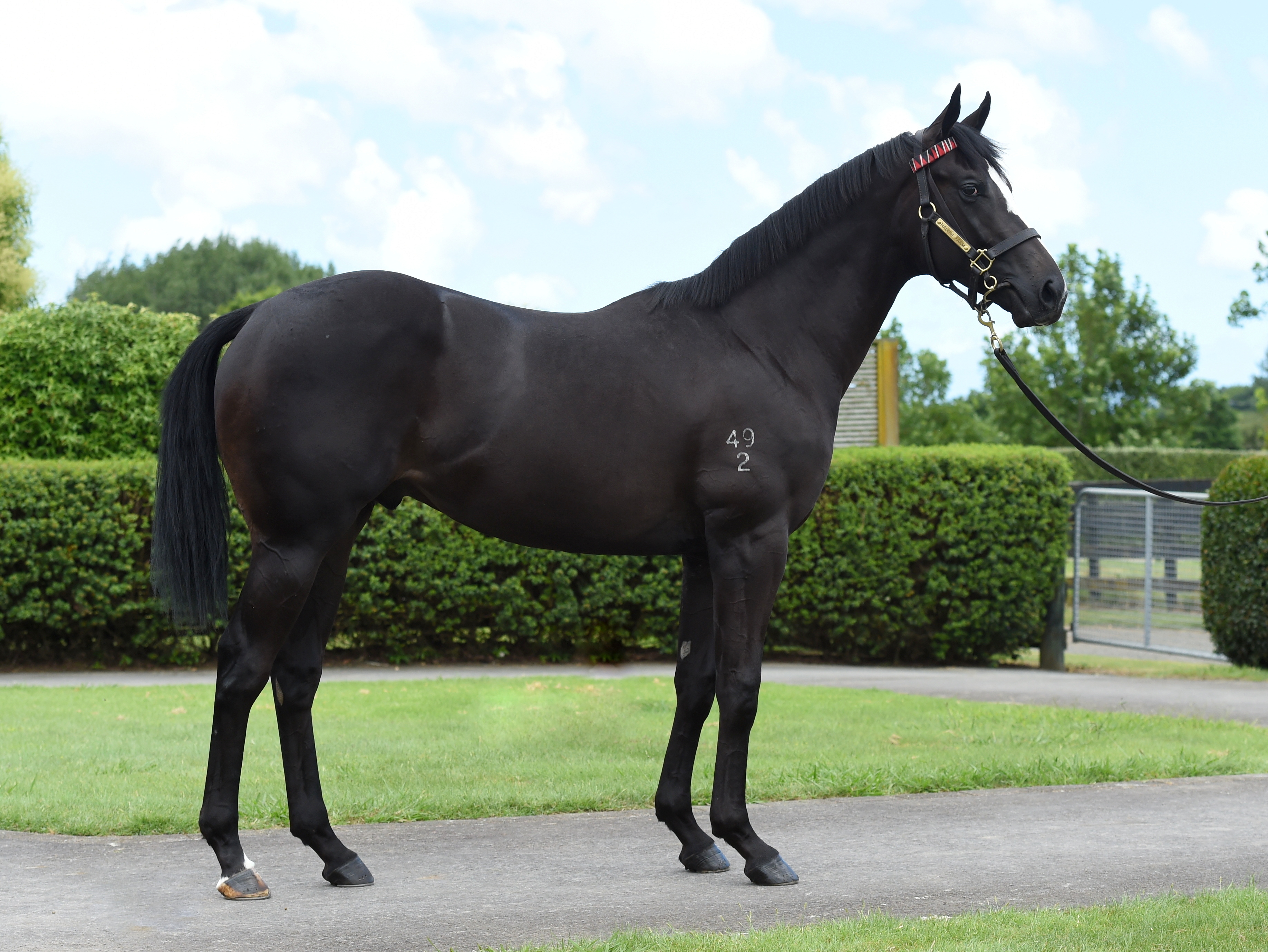 U S NAVY FLAG (USA) (Bay or Brown 2015-Stud in Ire. 2019, NZ 2019). 5 wins-4 at 2-6f to 7f, Newmarket July Cup, Gr.1. Leading First Season Sire in NZ in 2022-23. Sire of 166 rnrs, 56 wnrs. His oldest SH-bred progeny are 3YOs and inc SW Chantilly Lace (Wanganui JC Castletown S., L), SP Aprilia, Penvose Lad, To Catch a Thief, Warning Signal, etc. His NH-bred progeny inc SW Love Reigns, Ocean Vision, SP Catherine of Siena, etc. 1st dam DREAM ON, by Dream Ahead. 2 wins at 1300m, 1600m, Matamata Mitre 10 H. This is her second foal. Her first foal is a 2YO. 2nd dam SASSYBELLA, by Viking Ruler. 2 wins at 1900m, 2050m in Aust. Half-sister to CRONUS, PRAVDA (dam of THE GOOD FIGHT, PRAVANA), Al Bayan (dam of COMMUNIQUE), Milliyet (dam of SAMANTHA MISS). Dam of 9 named foals, 8 to race, 4 winners, inc:- Valentino Rossa. 5 wins 1300m to 1600m, A$334,625, ATC City Tattersalls Club H., TAB Rewards H., 2d VRC Australian Trainers' Association H. Sassy Jo. 6 wins 1355m to 2200m, A$80,675, SAJC Hughes Chauffeured Limousines H., 2d SAJC Access Hardware H., Pam Nunn's Big Six Oh H. 3rd dam FOREIGN COPY, by Bold Venture. Unraced. Three-quarter-sister to Sovereign Command (dam of ENVOY), Gold Ingot (dam of GOLDEN ERA), half-sister to Van Fleet (dam of CAMPANIA), Gold Street (dam of GOLD STREAK). Dam of 12 named foals, 9 to race, 8 winners, inc:- CRONUS (Zabeel). 11 wins 1600m to 3200m, NZ$174,425, A$793,460, HK$140,000, SAJC Adelaide Cup, Gr.1, Manawatu RC Awapuni Gold Cup, Gr.2, Hawke's Bay Cup, Gr.2, GCTC Prime Minister's Cup, Gr.2. PRAVDA (Zabeel). 8 wins-3 in succession-1400m to 2400m, A$453,385, Taranaki Cup, Gr.2, AJC Chairman's H., Gr.3. Dam of- THE GOOD FIGHT (High Chaparral). 5 wins 1400m to 2800m, NZ$217,087, A$205,050, Rotorua Cup, Gr.3, 2d Wellington Cup, Gr.3. PRAVANA (Anabaa). 5 wins 1200m to 1600m, AJC Aspiration H., L. Zebizan. Winner at 1400m in Aust. Grandam of- ARTISTRY (Shamardal). 8 wins-3 in succession-1100m to 1600m, ATC Newcastle Newmarket H., Gr.3, VRC Hong Kong Jockey Club S., Gr.3. LIL MISS SWISS (Rip Van Winkle). 6 wins 1400m to 2200m, NZ$104,487, Riverton Cup, L, Amberley Cup. Indian Flower. Unplaced. Dam of- FLOWER OF WAR (War Chant). 9 wins-4 in succession-1100m to 1300m, WATC Cyril Flower H., L, 2d WATC Sheila Gwynne Classic, L. Al Bayan. Raced once. Dam of 5 winners- COMMUNIQUE (Redwood). 5 wins 1600m to 2100m, NZ$145,850, ARC Sunline Vase, Gr.3, 3d CJC Coupland's Bakeries Mile, Gr.2. Milliyet. Unraced. Dam of 7 winners- SAMANTHA MISS (Redoute's Choice). Champion 3YO Filly in Australia in 2009. 7 wins-2 at 2 and 5 in succession-1150m to 2500m, A$1,763,260, AJC Champagne S., Gr.1, Flight S., Gr.1. Dam of- MISS FABULASS (Frankel). 3 wins 1100m to 1400m, ATC Tea Rose S., Gr.2, Qld Tatt's RC Spirit of Boom Fillies & Mares Classic, L. |