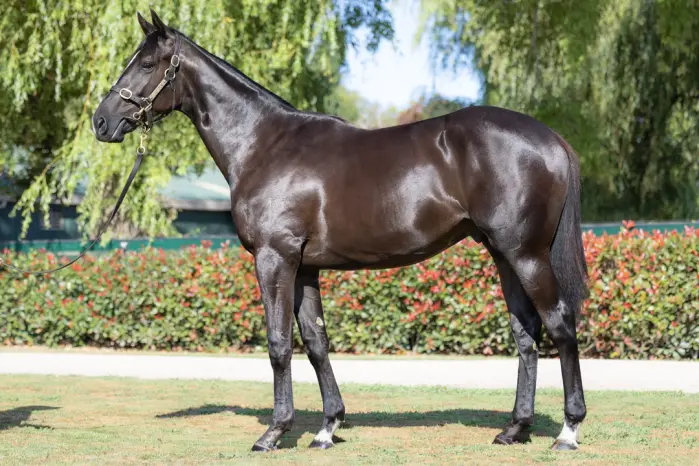 VADAMOS (FR) (Bay 2011-Stud 2017). 8 wins from 1600m to 2400m, Prix du Moulin de Longchamp, Gr.1. Leading Second Season Sire in NZ in 2021-22. Sire of 282 rnrs, 146 wnrs, inc. SW La Crique (Matamata RC Arrowfield Stud P., Gr.1), Spycatcher, Devastate, Grace's Secret, Art de Triomphe, Luisa Casati, SP Kazalark, Missy Moola, Warsaw, Caboche, Messidor, Permare, Wine Barron and of Miss Dynamite, Ivanka, etc. 1st dam KALEIDOSCOPE, by Pins. 6 wins 1200m to 1600m, ARC Ideal Electrical Suppliers H., ATC Sportsyear Diary H., ARC Air Tahiti Nui H., Counties RC HR Fisken & Sons H., 2d ARC Westbury Club H. Blood-sister to LEGS (dam of WOLFWHISTLE), Tiptoes (dam of TIPTRONIC), half-sister to Maythehorsebemagic, World Exclusive (dam of EXCLUSIVE LASS), Lucky Mascot (dam of FLYING MASCOT, KOALA BEAR), Axiom (dam of XTRAVAGANT, HE'S REMARKABLE). This is her fourth foal. Her third foal is an unraced 3YO. Dam of two foals to race, both winners- Prismatic (g. by Savabeel). 3 wins at 1600m, 2200m to 2023-24, Waikato RC Silverton Alexander H., Matamata RC AP Gollan Registered Valuers H., 2d CJC Commodore Hotel H., NZB Airfreight Road to Jericho H. Kingfisher (g. by Savabeel). 3 wins at 1200m, 1400m in 2022-23, Auckland TR Haunui Farm H., Avondale JC Great Southern Television S. 2nd dam ARLETTY, by Centaine. 8 wins 1150m to 2000m, NZ$72,800, A$340,250, AJC Villiers S., Gr.2, STC Queen of the Turf S., Gr.2, ARC Royal S., Gr.3, Ladies Mile, Gr.3, AJC Breeders' Classic, L, 2d AJC Angst H., L, ARC Soliloquy S., L. Sister to FIRETAINE, Spillway, River Century (dam of LEGS, GUYNO), three-quarter-sister to SIXTY SECONDS, SPOTTSWOODE, Centico. Dam of 13 foals, 11 to race, 9 winners, inc:- Maythehorsebemagic (Zabeel). 12 wins-3 in succession-1400m to 3900m, 2d BRC Queen's Cup, Gr.3, VRC Andrew Ramsden S., L. World Exclusive. 2 wins at 1716m, 1750m in Aust. Dam of 2 winners- EXCLUSIVE LASS (Nicconi). 3 wins at 1100m, 1200m, A$189,200, Geelong RC Rosemont Stud S., L, 3d MRC How Now S., Gr.3. Dam of- Boyfriend (Snitzel). Placed at 2, 2d ATC Todman S., Gr.2. Lucky Mascot. Placed at 3 in Aust. Dam of 7 winners- FLYING MASCOT (Tavistock). 6 wins 1300m to 1600m, A$565,525, VRC Matron S., Gr.3, MRC Mannerism S., Gr.3, MVRC Tesio S., Gr.3. KOALA BEAR (Exceed and Excel). 2 wins-1 at 2-at 1050m, 1400m, A$98,703, SAJC Cinderella S., L, MRC Race-Tech H. Dam of 4 winners- Marsupial - Street Cry Success (Sing.) (Street Cry). 10 wins-1 at 2-1100m to 1600m to 2023, 2d BRC Queensland Day P., L. Arboreal. Placed at 3 in Aust. Dam of- TROBRIAND (Kermadec). 4 wins-3 in succession at 2-1100m to 1400m to 2023-24, Waikato RC Eclipse S., Gr.2. Axiom. Unraced. Dam of 7 winners- XTRAVAGANT (Pentire). Champion 3YO in NZ in 2015-16. 6 wins-1 at 2 and 3 in succession-1200m to 1600m, NZ$467,500, A$15,000, New Zealand Two Thousand Guineas, Gr.1, Waikato Sprint, Gr.1. Sire. HE'S REMARKABLE (Pentire). 6 wins 1300m to 1600m, NZ$270,625, A$361,900, Newcastle JC Newmarket H., Gr.3. Sire. |