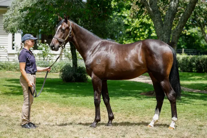 TIVACI (AUS) (Bay 2012-Stud 2017). 6 wins to 1600m, ATC All Aged S., Gr.1. Sire of 155 rnrs, 67 wnrs, inc. SW Never Been Kissed (ATC Flight S., Gr.1), Wolverine, One Kiss, SP Lowe Flying, Hoops, Just Maybe, Outfit and of Bella Ragazza, Planned Encounter, Wolfy, Free Willed, Kana, Lippy, Okay Cupid, Tivaci Princess, Verifier, Celevacci, Draft Day, Healing Game, Jimmy Dean, The Replicant, Third Time Round, Wolf Prince, etc. 1st dam MERIDIAN, by Power. Unraced. Half-sister to GUNSTOCK, The Irishman. This is her second living foal. Her first foal is a 2YO. 2nd dam ZERANTI, by Zabeel. Unraced. Dam of 5 foals, 3 to race, all winners, inc:- GUNSTOCK (Tavistock). 4 wins at 1600m, 2000m, A$376,685, to 2022-23, MRC Coongy Cup, Gr.3, Caulfield Classic, Gr.3, Catanach's Jewellers H., 2d VRC Villa Paradiso Trophy H., 3d VRC Super Impose S., L. The Irishman (Tavistock). 4 wins to 1650m, to 2022-23, HKJC Shan Kwong H., ATC TAB H., HKJC Cuckoo H., 2d ATC Phar Lap S., Gr.2, Carbine Club S., Gr.3, ARC Uncle Remus S., L, 3d Hong Kong Classic Mile, L. 3rd dam MERANTI, by Woodman. Placed at 3 in Aust. Half-sister to SNAPSHOTS, Express a Smile (dam of SEA SIREN, LADY DEHERE, ORATORIO, DISCORSI). Dam of 8 foals, 7 to race, 6 winners, inc:- Our Lucky Baby. 7 wins-5 in succession-at 1200m, HKJC Briar H., Big Wave Bay H., Kai Yip H., Cornwall H., South China Morning Post Cup H. 4th dam HOLD THAT SMILE, by Haulpak. 4 wins at 2 at 1000m, 1200m, A$227,550, WATC Karrakatta P., Gr.1, Queen's P., Gr.3, Gimcrack S., L, Initial 2YO P. Sister to CARRY A SMILE, half-sister to Vintage Silver (dam of VITAL SILVER, SILVER EMPIRE), Silver Slipper (dam of SCUFFS). Dam of 9 foals, 7 to race, 4 winners, inc:- SNAPSHOTS (Success Express). 2 wins at 2 at 1200m, A$117,580, AJC Keith Mackay H., L, 2d AJC Silver Shadow S., Gr.2. Producer. Express a Smile. Unraced. Dam of 7 winners- SEA SIREN (Fastnet Rock). 7 wins-3 in succession-1200m to 1350m, A$1,681,830, BTC Cup, Gr.1, MVRC Manikato S., Gr.1. Dam of- WARM HEART (Galileo). 5 wins-3 in succession-1¼m to 1½m, in 2023, Yorkshire Oaks, Gr.1, ParisLongchamp Prix Vermeille, Gr.1. LADY DEHERE (Dehere). 4 wins at 2 880m to 1200m, Matamata Breeders' S., Gr.2, Waikato RC Super Bonus Classique, RL. Dam of 5 winners- ORACY (Zabeel). 7 wins-5 in succession-1450m to 1800m, R1,285,000, Turffontein Gauteng Guineas, Gr.2, Dingaans H., Gr.2. Sire. Ruthless Lady (Keeper). Winner at 2, 2d ARC Soliloquy S., L. Dam of- RUTHLESS DAME (Tavistock). 3 wins-2 at 2-at 1200m, 1300m, A$655,875, to 2022-23, SAJC Robert Sangster S., Gr.1. ORATORIO (Stravinsky). 4 wins-3 at 2-at 1000m, 1200m, A$511,550, MVRC CS Hayes S., Gr.3, BTC Tommy Smith Slipper S., L. Sire. Dubai Express. Placed at 3. Grandam of- CHABAUD (Lookin at Lucky). 4 wins 1200m to 2500m, A$213,145, SAJC South Australia Fillies Classic, Gr.3, TTC Tasmanian Oaks, L. Producer. |