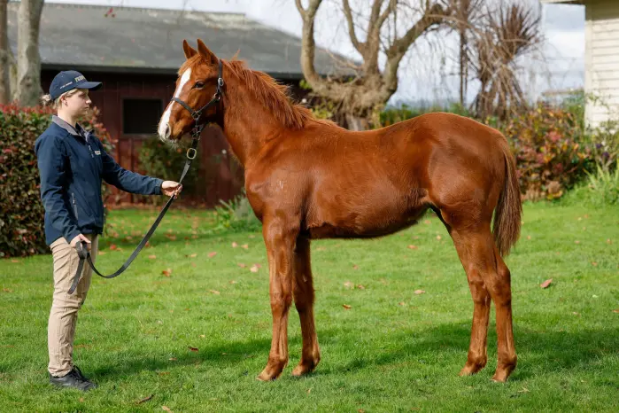 SWEYNESSE (AUS) (Bay or Brown 2011-Stud 2016). 4 wins-1 at 2, ATC Gloaming S., Gr.3. Leading First Season Sire in NZ in 2019-20. Sire of 157 rnrs, 77 wnrs, inc. SW Lucky Sweynesse (HKJC Centenary Sprint Cup, Gr.1), Only Words, Dragon Queen, Trust in You, Special Swey, Bonita Aurelia, Brix, SP Explosively - Solid Impact (H.K.), Signora Nera, Beau Rouge and of Famous Rainbow, Orlov, Satness, Petty's Legacy, etc. 1st dam Hasstobemagic, by Scissor Kick. Winner at 1300m, 2d Counties Challenge S., L. Half-sister to COEUR VOLANTE. This is her first foal. 2nd dam SHANINA, by Testa Rossa. 5 wins 1200m to 1400m, A$101,045, 2d Illawarra TC AJ Bert Lillye Memorial H., 3d ATC Hyland Race Colours H. Half-sister to Maid of Ore. Dam of 3 named foals, 2 to race, both winners, inc:- COEUR VOLANTE (Proisir). 3 wins in succession-1 at 2-1200m to 1400m, A$407,790, to 2023-24, MRC Thousand Guineas Prelude, Gr.2, MVRC Scarborough S., Gr.3, 4th MRC Thousand Guineas, Gr.1. Hasstobemagic (Scissor Kick). Winner. See above. 3rd dam FEISTY ROSE, by Fusaichi Pegasus. Winner at 1500m in Aust. Three-quarter-sister to Latino, half-sister to ROSE OF PEACE, Never Listen. Dam of 11 named foals, 10 to race, 8 winners, inc:- Maid of Ore (Duporth). 8 wins-4 in succession-1000m to 2000m, A$348,270, ATC Task Retail Technology H., Agency Real Estate H., 2d Albury Gold Cup, L, ATC Precise Fire H., 3d Canberra Cup, L, Canberra Mile H., Canberra Mile, MVRC Midway Concrete H., 4th Ipswich Cup, L. Feisty Lion. 2 wins at 1009m, 1200m in 2022-23 in Aust. Great Grats. 3 wins 1100m to 1450m in Aust. Legacy Rose. Winner at 1170m in 2023-24 in Aust. 4th dam ROSE O' WAR, by Danehill. 7 wins 1200m to 1622m, A$891,025, MVRC Anthea Crawford S., Gr.2, VATC Angus Armanasco S., Gr.3, VRC Vanity S., L, MVRC Great Western S., L, 2d VRC Oaks, Gr.1, VRC AV Kewney S., Gr.2, Wakeful S., Gr.2, Saab H., Gr.2, SAJC Morphettville Guineas, L, 4th Moonee Valley Oaks, Gr.3. Sister to DANEHILL EXPRESS, Chiu Chow Kid, three-quarter-sister to KING OF DANES, half-sister to MR VITALITY, GUNNAMATTA, Impulsive Rhythm, Serene City (dam of CITIRECRUIT). Dam of 13 foals, 12 to race, 10 winners, inc:- ROSE OF PEACE (Hussonet). 2 wins at 1200m, 1300m, A$177,870, ATC Wenona Girl H., L, 2d STC Perfection Fresh Inglis Bonus 2YO H., ATC James Boag H., 3d ATC Surround S., Gr.2, Scone RC Dark Jewel Classic, L, 4th VRC Wakeful S., Gr.2, MVRC Alexandra S., L. Never Listen (Trusting). 2 wins at 1400m, 2200m, A$240,750, 2d VRC Oaks, Gr.1. Hingus Rose. 7 wins-2 at 2-1050m to 1400m, A$258,800, BRC Kiss & Make Up Aquis Farm 2YO H., Qld Tatt's RC Functions at Tattersalls 2YO H. Federosa. 3 wins at 1200m, 1600m, A$88,540, MVRC Signage Concepts H. Star Wars. 6 wins 1200m to 1400m, A$221,480, ATC TAB Rewards H.-twice. |