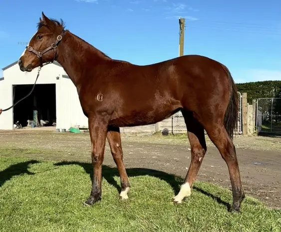 SWORD OF STATE (AUS) (Bay or Brown 2018-Stud 2022). Champion 2YO in NZ in 2020-21. 6 wins-4 at 2-at 1100m, 1200m, NZ$295,150, A$37,850, ARC Diamond S., Gr.1, Auckland TR Almanzor Trophy, Gr.3, King's P., Gr.3, Matamata RC Slipper S., Gr.3, 2d GCTC Gold Coast Guineas, Gr.3, 3d ARC Eclipse S., Gr.2. Out of SP In the Vanguard. Grandson of SW Sharp (AJC Light Fingers S., Gr.2). His oldest progeny are foals. 1st dam LADY OF JEWELS, by Turn Me Loose. Unraced. This is her first foal. 2nd dam ALCALDESA, by Nom du Jeu. 3 wins 1340m to 2100m, Wanganui Guineas, L, 2d Otaki Maori RC New Zealand Bloodstock Insurance Pearl Series H., Marton JC Power Farming H. Half-sister to LORD TURBO - LITTLE DRAGON (H.K.), Rapid Falls. Dam of 3 foals, 1 to race, 1 winner, inc:- Lord Esperanza. Winner at 1400m. 3rd dam Sitting on a Hill, by City on a Hill. Winner at 2 at 1200m, WRC Speight's 2YO H., 2d WRC Hynds Pipe Systems Cup, 3d Manawatu RC Eulogy S., Gr.3, Marton JC Pioneer H. Sister to Mr Benny Hill. Dam of 8 named foals, 7 to race, 5 winners, inc:- LORD TURBO - LITTLE DRAGON (H.K.) (Perfectly Ready). 8 wins-1 at 2 and 3 in succession-1200m to 1800m, NZ$67,060, HK$4,745,850, Wanganui Guineas, L, Marton JC Coombe Smith Rangitikei 2YO H., HKJC Pedder H., Lung Hang H., Taipa H., King Kwong H., 2d Otaki Maori RC Sunrans Spa H., HKJC Community Chest Cup, Jockey Club Road H., Fortune Room H., Man Yiu H., 3d Levin RC Otaki Christmas at the Races H., HKJC Finance Street H., Arc de Triomphe Championships H., 4th Hawke's Bay Guineas, Gr.2, Wellington Guineas, Gr.2. ALCALDESA (Nom du Jeu). 3 wins. See above. Rapid Falls (Sacred Falls). 5 wins 1400m to 2200m, NZ$194,862, to 2022-23, Auckland TR Karaka Cup, Taranaki RC Wairoa Cup, ARC Ellerslie Jewellers H., Waikato RC Waikato Draught H., 2d Auckland TR Dunstan Feeds Final H., Hawkes Bay Stella Artois H., Counties RC Heart of Racing H., 3d WRC New Zealand St Leger, L, Marton JC NZB Insurance Pearl Series H., 4th Waikato Cup, Gr.3, Feilding Gold Cup, L. Only Tiger. 3 wins 1880m to 2110m, A$124,260, ATC Bowermans Furniture H., 2d ATC Evergreen Turf H., Winter Racing H., 3d ATC Bowermans H. Sentry. Winner at 2000m in 2023-24. Lake Hayes. Placed at 3 in Aust. Dam of- Ferrari Girl. 3 wins at 1200m, 1400m to 2023-24 in Aust. 4th dam IVY DARLING, by Ivory Hunter. Unraced. Dam of 8 foals, 7 to race, 6 winners, inc:- Sitting on a Hill (City on a Hill). Winner. See above. Mr Benny Hill (City on a Hill). 8 wins at 1200m, 1400m, NZ$188,925, CJC Rich Hill Stud H., 123Racing.com H., Kauri Stables H., WRC Knottingly Farm 3YO H., Manawatu RC Ashhurst Business Houses H., 2d Marton 1600 H., L, CJC Enterprise Homes H., WRC Capital City Ford H., 4th WRC Captain Cook S., Gr.1, Taranaki RC Mason Appliances 4YO H., L. |