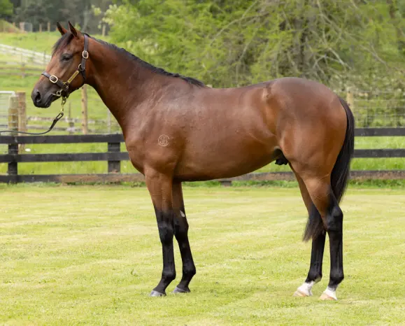 TOO DARN HOT (GB) (Bay 2016-Stud GB 2020, Aust. 2020). 6 wins-4 at 2, Newmarket Dewhurst S., Gr.1. Leading First Season Sire in Aust. in 2023-24. Sire of 168 rnrs, 70 wnrs, 12 SW. His oldest SH-bred progeny are 3YOs and inc SW Broadsiding (ATC Champagne S., Gr.1), SP Arabian Summer, Too Darn Lizzie, Silmarillion, Trembles, Superalloy, etc. His NH-bred progeny inc SW Fallen Angel, Darnation, Etes Vous Prets, etc. 1st dam Prosecco, by Stravinsky. 4 wins 1200m to 1600m, NZ$82,445, Manawatu RC Bennett Currie H., Seales Winslow H., 2d CJC Great Easter S., L, WRC Vernon Vazey Truck Parts H., Marton JC Winston Peters Cup. Half-sister to DIJON BLEU, Passione. This is her second foal. Her first foal is an unraced 3YO. 2nd dam PRISTINO, by More Than Ready. Unraced. Half-sister to SO PRISTINE, RESTORED, Taylor's Command (dam of SWIFT WITNESS). Dam of 9 named foals, 8 to race, 6 winners- DIJON BLEU (Burgundy). NZ Bloodstock Filly of the Year in 2017-18. Top filly on the 2017-18 3YO Free H. (1200m-1600m). 6 wins-1 at 2 and 3 in succession-1100m to 2000m, NZ$307,700, Waikato RC Sir Tristram Fillies Classic, Gr.2, Hawkes Bay Gold Trail S., Gr.3, WRC Desert Gold S., Gr.3, ARC Soliloquy S., L, Wanganui JC O'Learys S., L, 2d New Zealand One Thousand Guineas, Gr.1, Manawatu RC Eulogy S., Gr.3. Passione (Proisir). 3 wins at 1400m, NZ$33,175, A$94,500, MRC Royal Meeting All Class H., Evergreen Turf H., 2d Hawkes Bay Dan d'Esposito Memorial H., 3d WRC Desert Gold S., Gr.3, MRC Ladbrokes Odds Surge H. Prosecco (Stravinsky). 4 wins. See above. 3rd dam PRISTINE KRISTINE, by Spinning World. Placed at 2 in U.S.A. Half-sister to LONG GONE BLUES, Blusazul (dam of EL BULUBU). Dam of 8 named foals, 6 to race, 5 winners, inc:- SO PRISTINE (Zabeel). 7 wins 1400m to 2200m, NZ$118,000, A$132,500, SAJC Queen of the South S., Gr.2, Waikato RC UDC Finance H., ARC Dunstan Feeds Championship Final, Avondale JC Loan Market Highland Park H., Counties RC Ezygo Golfcarts H., 2d Cambridge JC Presland Tocker Insurance H., 3d Manawatu Cup, Gr.3, 4th Marton Cup, L. Producer. RESTORED (Red Ransom). 4 wins 1600m to 2000m, NZ$3,750, S$428,386 in NZ and Singapore, Singapore TC Queen Elizabeth II Cup, L, MRA Cup. Taylor's Command. Winner at 1109m, 2d MVRC Cameron Boyd 21st H., Simpson Constructions H. Dam of 4 winners- SWIFT WITNESS (Star Witness). 2 wins-1 at 2-at 1100m, 1200m, A$333,125, ATC Silver Shadow S., Gr.2, GCTC Gold Pearl 2YO H., 2d ATC Reisling S., Gr.2, 3d ATC Tea Rose S., Gr.2, Wyong Magic Millions 2YO Classic, RL, 4th ATC Flight S., Gr.1. Terminology (Star Witness). 2 wins at 1100m, 1200m, A$284,760, GCTC Magic Millions P., ATC Australian Turf Club H., 2d Gosford Guineas, L, 4th Wyong Magic Millions 2YO Classic, RL. Delovely. Winner at 1200m. Dam of 5 winners-