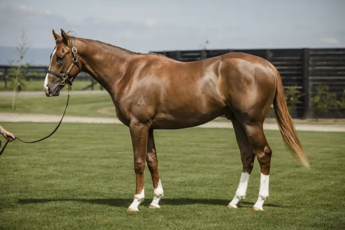 EXCEED AND EXCEL (AUS) (Bay 2000-Stud 2004). 7 wins-2 at 2, VRC Newmarket H., Gr.1. Champion Sire in Aust. in 2012-13. Sire of 2603 rnrs, 1834 wnrs, 217 SW, 19 G1 wnrs. His SH-bred progeny inc SW Guelph (MRC Thousand Guineas, Gr.1), Flamberge, Bivouac, Mr Stunning, Helmet, September Run, Cylinder, Microphone, etc. His NH-bred progeny inc SW Excelebration, Mawj, Queen Supreme, Mischief Magic, etc. 1st dam COTTONED ON, by Hard Spun. Unraced. This is her fourth foal. Her third foal is an unraced 3YO. Dam of one foal to race. 2nd dam MARVEEN, by Orientate. 6 wins-1 at 2 and 3 in succession-1000m to 1800m, A$663,845, VRC Desirable S., L, MRC Merson Cooper S., L, Gold Coast Bracelet, L, VRC Chester H., Decjuba Fashion P., MRC BMW Melbourne H., 2d MRC Sandown Guineas, Gr.2, Queensland Guineas, Gr.2, VRC Matron S., Gr.3, Ottawa S., L, MRC Blue Diamond Preview (f), L, 3d VRC Chubb S., L, MRC Hareeba S., L. Half-sister to Stoneblack, Jestajewel (dam of PAMPELONNE), Bella Jewel (dam of ROCKSHAFT - OCEAN FORTUNE (Mal.)). Dam of 6 named foals, 4 to race, 3 winners, inc:- Radegast. 5 wins 1300m to 2212m, to 2023-24 in NZ and Aust. 3rd dam SHINY, by Forest Glow. 4 wins-1 at 2-1313m to 1463m, SAJC Monde Bleu H., 2d SAJC Ericsson Communications H., Double Vice H., 3d MVRC Toy Factory H., Kevin Sheedy H. Half-sister to Lord Sheraton, Smooth - Cosmolife (H.K.), Polishing (dam of DANZIPPO), Vreeland (dam of DANGLISSA). Dam of 11 named foals, 10 to race, 9 winners, inc:- MARVEEN (Orientate). 6 wins. See above. Stoneblack (Danzero). 10 wins-2 at 2-1500m to 3221m, A$529,376, MVRC Tattsbe.com H., MRC Chortle 2YO H., SAJC Pro Bitumen Pty Ltd H., 2d VRC Anzac Day S., L, 3d VRC Henry Bucks S., L, Gibson Carmichael S., L. Jestajewel (Rory's Jester). 2 wins-1 at 2-at 900m, 1000m, MVRC Cathay Pacific Holidays Flying H., 3d VRC Ottawa S., L. Dam of 4 winners- PAMPELONNE (Rock of Gibraltar). 5 wins-3 in succession-1100m to 1400m, A$822,660, ATC Shorts H., Gr.2, Gosford Guineas, L, Scone RC Inglis Guineas, 3d ATC Razor Sharp H., L, 4th MRC Schillaci S., Gr.2. Bella Jewel. 2 wins at 2 at 1000m, 1100m, SAJC It's Our Buy 2YO H. Dam of- ROCKSHAFT - OCEAN FORTUNE (Mal.) (Choisir). 5 wins-2 at 2-1100m to 1400m, A$116,070, 95,016Rgt, SAJC Breeders' S., Gr.3. Jester Jewel. Placed at 3 in Aust. Dam of 2 winners- PURE AQUA (Headwater). Winner at 2 at 1050m, A$96,845, in 2023-24, SAJC Without Fear S., L, 2d SAJC Stonehaven Wines 2YO H. 4th dam POLISHED, by Vain. Winner at 2 at 1200m, AJC Ionian H. Three-quarter-sister to Diamond Day, half-sister to Diamond Cutter. Dam of 11 foals, 10 to race, 6 winners, inc:- Vreeland. Placed at 3 in Aust. Dam of 7 winners-