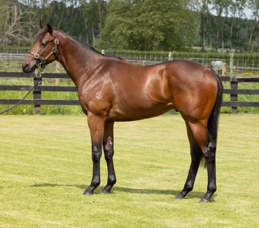 ARDROSSAN (AUS) (Bay 2014-Stud 2019). 4 wins-2 at 2, ARC Concorde H., Gr.3. Sire of 41 rnrs, 18 wnrs, inc. SW Codigo (WRC Wellesley S., L), Beau Dazzler, Loch Katrine, Saltcoats, SP Yaldi, Renovations, Rezeki and of Sindee, Sky Heart, Nikaia, Cannon Hill, Pure Alpha, Sako, Maracatu, Jazzclub, Ardee Boy, China Pearl, Pacifico, Touchofclass and of the placegetters Rhythm 'n' Spice, Carajillo, Saluto, etc. 1st dam ESCALERA, by Hussonet. Unraced. Half-sister to MR MOJO RISIN'. This is her fifth foal. Her fourth foal is an unraced 3YO. Dam of one foal to race- O'Not a Doubt (g by Not a Single Doubt). 3 wins at 1200m, 1400m in Aust. 2nd dam La Scala, by Bahhare. Winner at 2 at 1000m, 3d Whangarei RC Northland Breeders' S., L. Half-sister to FINAL DESTINATION (dam of FINAL FORM). Dam of 9 foals, 8 to race, 6 winners, inc:- MR MOJO RISIN' (Deep Field). 4 wins 1200m to 1600m, NZ$120,210, A$87,600, to 2023-24, Otaki Maori RC Anzac Mile, L, MVRC Christmas at the Valley H., 2d Hawke's Bay Guineas, Gr.2, Wanganui Guineas, L. Five Crowns. 6 wins 1250m to 1600m, A$170,580, to 2023-24, BRC SP Quality Concrete H., Opera Regional Tour H., 3d BRC Country Music Raceday H. 3rd dam LOGICAL LADY, by Sound Reason. Winner at 1200m. Half-sister to SOCIETY BEAU, SANDBLASTER, Zamfir, Irish Belle (dam of IRISH FLING). Dam of 9 foals, 8 to race, all winners, inc:- FINAL DESTINATION (O'Reilly). Champion 3YO Miler in NZ in 2001-02. Top filly on The 2001-02 NZ 3YO Free H. 5 wins in succession 1400m to 1709m, US$138,120, NZ$207,375, New Zealand One Thousand Guineas, Gr.1, Levin RC Bayer Classic, Gr.1, Santa Anita Buena Vista H., Gr.2, Hollywood Park Allowance, 2d Taranaki 2YO Classic, Gr.3, 3d Hollywood Park Wilshire H., Gr.3, 4th WRC Desert Gold S., Gr.3. Dam of 6 winners- FINAL FORM (Deep Impact). 3 wins at 1600m, 1800m, 89,747,000Â¥, Fukushima Radio Nikkei Sho, Gr.3, 2d Tokyo Saudi Arabia Royal Cup Fuji S., Gr.3, 3d Hanshin Cup, Gr.2. La Scala (Bahhare). Winner. See above. Society Lady. 2 wins-1 at 2-at 1000m, 1200m, 4th Whangarei RC Westbury Stud S., L. Dam of 4 winners- Kingsman (Darci Brahma). 3 wins-1 at 2-1100m to 1400m, NZ$98,550, S$355,815, 2d Singapore TC Charity Bowl, L, 3d ARC Mr Tiz Trophy, Gr.3, Karaka Million, RL. 4th dam SOCIETY BAY, by Zephyr Bay. 6 wins-2 at 2-1200m to 1600m, NZ$106,525, A$264,350, VRC Edward Manifold S., Gr.2, MVRC Veuve Clicquot S., Gr.2, Waikato RC Noble Heights S., Gr.3, 2d QTC Stradbroke H., Gr.1. Half-sister to Beau Bacchus, Sacaya (dam of DUANETTE'S GIRL), The Pact, Lancaster, (My) Vanity (dam of REDDLAN), Aranda (dam of BEAU ZEPHYR). Dam of 11 foals, 10 to race, 8 winners, inc:- SOCIETY BEAU (Bigstone). 12 wins-3 in succession-1200m to 2020m, BOP RC Japan-New Zealand International Trophy, Gr.2. |