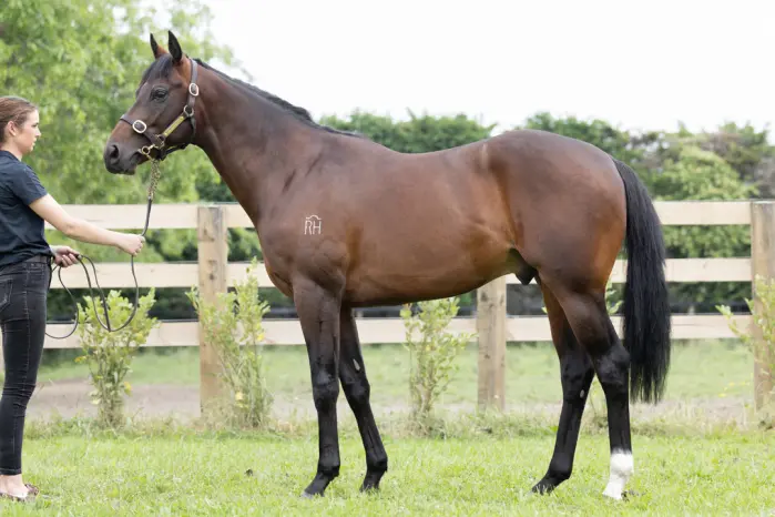 SATONO ALADDIN (JPN) (Bay 2011-Stud 2018). 8 wins-1 at 2, Tokyo Yasuda Kinen, Gr.1. Leading Sire of 2YOs in NZ in 2022-23. Sire of 292 rnrs, 155 wnrs, inc. SW Pennyweka (New Zealand Oaks, Gr.1), Lantern Way, Tokyo Tycoon, Sacred Satono, Lupo Solitario, Grand Impact, Raf Attack, Still Bangon, SP Firestorm, Nishino Lavanda, Japanese Emperor, Welcome News, Lady Ballantine and of Depasser, Grass Miyarabi, etc. 1st dam HUI HAI STARS, by Pour Moi. Winner at 2 at 1000m. Half-sister to Real Specialist. This is her third foal. Her second foal is an unraced 3YO. Her first foal is unraced. 2nd dam THERE'S NO DOUBT, by Pompeii Court. Unraced. Half-sister to DOLLARS'N GOLD, MADISON POINT, Que Sera, Hear's Hoping (dam of IFLOOXCOULDKILL). Dam of 11 named foals, 9 to race, 8 winners, inc:- Real Specialist (Storming Home). 9 wins 1200m to 1800m, HK$11,422,925, HKJC Chinese New Year Cup, Panasonic Cup, Canberra H., Singapore TC Trophy, Macau H., Viva Pataca H., HKU Education Alumni H., 2d HKJC Premier Cup, L, 3d HKJC Sha Tin Trophy, L, 4th HKJC Champions Mile, Gr.1, Jockey Club Mile, Gr.2. Irish Encore. 6 wins-3 in succession-at 1200m, 1300m, NZ$85,070, Waikato RC Lowe Schollum & Jones H., Classic Hits 98.6 FM H. Dam of 2 winners- Aris Aris. 5 wins 1100m to 1360m, NZ$128,855, to 2023-24, Waikato TR Dunstan Horsefeeds H., BOP RC Epic Journeys Royal Ascot H. Dutch Striker. 4 wins at 1400m, 1600m, Woodville-Pahiatua Cup, 4th WRC Desert Gold S., Gr.3, Masterton RC Lowland S., Gr.3. Producer. Miss Daisy. 7 wins 1200m to 1400m, NZ$79,575, WRC Vision Enhancement H., 2d Hawkes Bay NZ Bloodstock Mixed Bloodstock Sale H. Producer. 3rd dam French Polish, by Poil de Chameau. 3 wins-1 at 2-at 800m, 1400m, CJC Spring P., 2d Levin RC Bayer Classic, Gr.2, Manawatu RC Eulogy S., Gr.3, 4th WRC Wakefield Challenge S., Gr.2. Half-sister to Rule Enough, Clarehaven (dam of CLARE VALLEY, RED MACHINE, SHOWTIME). Dam of 11 foals, 9 to race, 7 winners, inc:- DOLLARS'N GOLD (Palace Music). 11 wins 1300m to 2000m, NZ$212,085, Marton JC Metric Mile, Gr.3, ARC Guineas Trial, L, Lion Red H., Waikato RC Fairview Motors H., 2d Rotorua Challenge P., Gr.3, BOP RC Kiwifruit Cup, L, Matamata Cup, L-twice, 3d CJC Winter Cup, Gr.3, Counties RC Metric Mile, L, 4th ARC Easter H., Gr.1, Marton Metric Mile H., L. MADISON POINT (Palace Music). 11 wins 1000m to 1600m, A$246,840, AJC Shorts H., Gr.3, Hall Mark S., L, Stanley Wootton H., STC Huamight H., 2d VRC Hilton on the Park Sprint H., L, 3d AJC Razor Sharp H., L. Que Sera (Daggers Drawn). 4 wins at 1400m, BOP RC Vero.co.nz H., Taumarunui RC Woods H., 2d CJC Canterbury Breeders' S., L. Producer. Hear's Hoping. Unraced. Dam of 8 winners-
