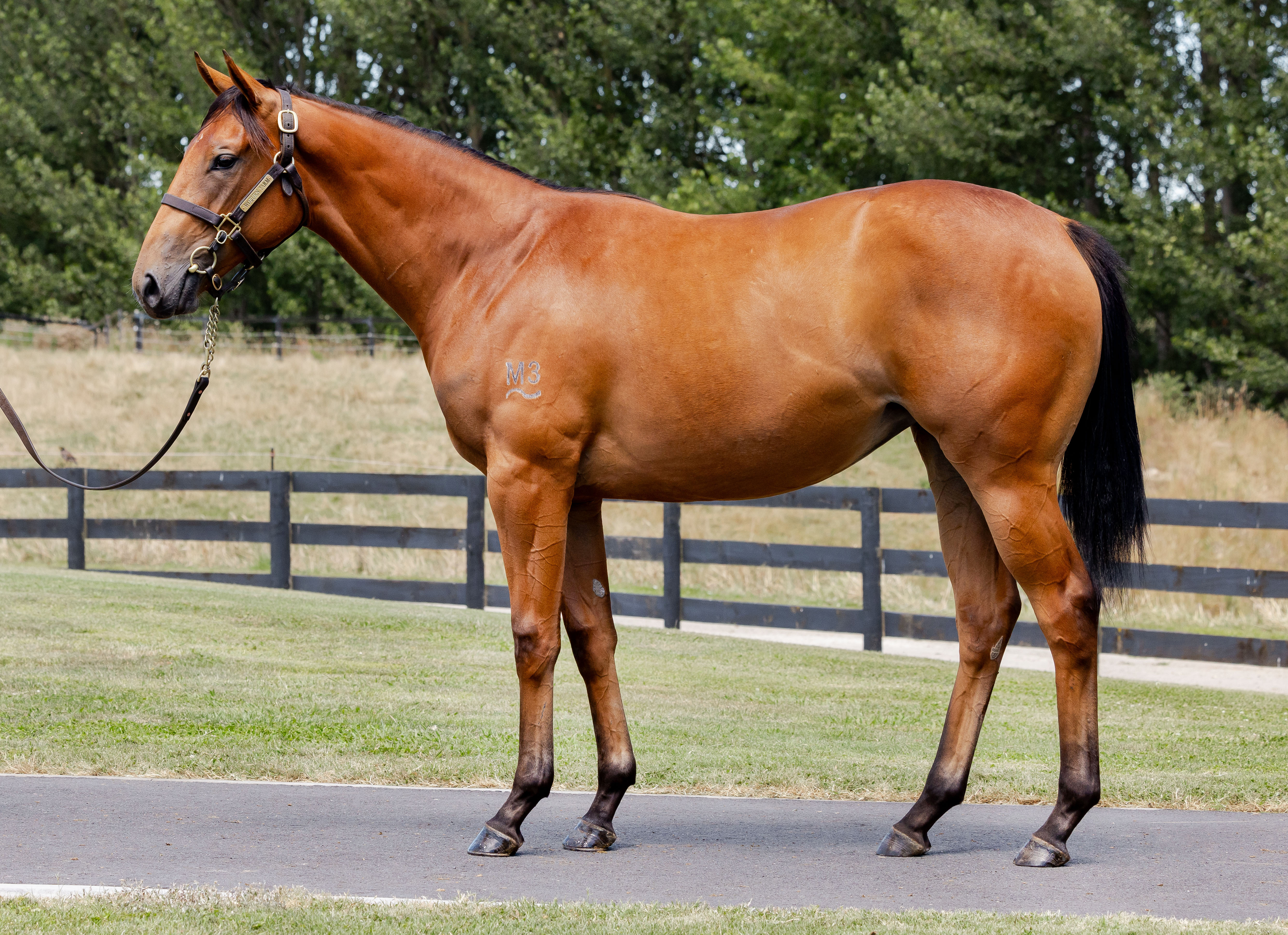 FARNAN (AUS) (Bay 2017-Stud 2021). Champion 2YO in Australia in 2019-20. 5 wins at 2 to 1200m, A$2,507,450, ATC Golden Slipper S., Gr.1, Todman S., Gr.2, Silver Slipper S., Gr.2, Wyong Magic Millions 2YO Classic, RL. Half-brother to SW Sandbar (ATC Lonhro P., L). Out of SW Tallow (VRC Vanity S., Gr.3), a half-sister to SP Mr Light Blue. Related to SW Beauty School, etc. Sire of SP North England, etc. His oldest progeny are 2YOs. 1st dam JENNIFER ECCLES, by Rip Van Winkle. Leading NZ 3YO Filly on 2019-20 International Ratings. NZ Bloodstock Filly of the Year in 2019-20. 4 wins-3 in succession-1600m to 2400m, NZ$509,650, New Zealand Oaks, Gr.1, ARC Eight Carat Classic, Gr.2, Hawkes Bay Lowland S., Gr.2, Waikato RC Sir Tristram Fillies Classic, Gr.2, 2d New Zealand One Thousand Guineas, Gr.1, Hawkes Bay Taupo Pak'nsave Fillies H., 3d ARC Soliloquy S., Gr.3, WRC Desert Gold S., Gr.3, ARC Auckland Futurity S., L, 4th Hawkes Bay Tarzino Trophy, Gr.1, Gold Trail S., Gr.3. This is her second foal. Her first foal is a 2YO. 2nd dam Platinum Elle, by Elnadim. 4 wins 1000m to 1600m, NZ$133,600, ARC Colleen Mangnall Prestige Real Estate H., CJC South Island Bloodstock Sale H., 2d CJC Millennium Hotels & Resorts H., Signature Travel H., BOP RC Fertco H., Marton JC Novartis H., 3d CJC Canterbury Breeders' S., L, 4th Matamata Cup, L. Dam of 8 foals, 6 to race, 3 winners, inc:- JENNIFER ECCLES (Rip Van Winkle). 4 wins. See above. He's Platinum. Winner at 1600m in 2023-24 in NZ, 3d HKJC Chung On H., Chevalier Building Supplies H. 3rd dam Lady Tee, by Zabeel. 2 wins-1 at 2-at 1200m, 1600m, WRC Lambert Westray H., 2d Waikato RC Logan Thoroughbred Insurance H., 3d Manawatu RC Eulogy S., Gr.3, Cambridge JC Deputy Governor Trophy. Half-sister to Tesoro (dam of PUTTANESCA). Dam of 2 named foals, both winners- Platinum Elle (Elnadim). 4 wins. See above. Makeadreamcometrue. 9 wins-3 in succession-1200m to 1900m, A$327,558, VRC AFL Life Members Association H., MRC Pfdfoods.com.au P.H., Kenvain H., Fox FM Boulevard H., Shannon H., 4th Cranbourne Cup, L. 4th dam WAIKIKI, by Crested Wave. 9 wins at 1600m, 2000m, NZ$264,820, Te Aroha JC New Zealand Thoroughbred Breeders' S., Gr.2-twice, ARC Clifford P., Gr.3, Cambridge JC Dulcie S., Gr.3, 2d ARC Great Northern Challenge S., Gr.2, Championship S., Gr.2, Matamata Cup, L, 3d Waikato RC Highview Stud S., Gr.3, Te Aroha JC Thames Valley S., Gr.3, 4th ARC Clifford P., Gr.2, Waikato RC International S., Gr.2, Counties RC Auckland Thoroughbred Breeders' S., Gr.3. Half-sister to HAPPY FEATURES, Morlin Maid (dam of LOVE OF MARY). Dam of 6 foals, 5 to race, 4 winners, inc:- Lady Tee (Zabeel). 2 wins. See above. Tesoro. 3 wins 1600m to 2100m, Hawkes Bay Hibernian Club H. Dam of 4 winners-