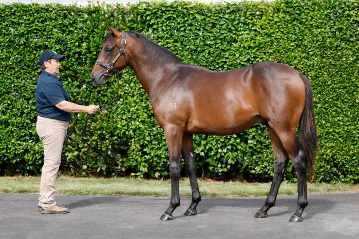 TOO DARN HOT (GB) (Bay 2016-Stud GB 2020, Aust. 2020). 6 wins-4 at 2, Newmarket Dewhurst S., Gr.1. Leading First Season Sire in Aust. in 2023-24. Sire of 226 rnrs, 107 wnrs, 17 SW. His oldest SH-bred progeny are 3YOs and inc SW Broadsiding (ATC Champagne S., Gr.1), Too Darn Discreet, Too Darn Lizzie, Perspiration, Silmarillion, etc. His NH-bred progeny inc SW Fallen Angel, Hotazhell, Darnation, Simmering, etc. 1st dam TULIP, by Tavistock. Unraced. Half-sister to AMARYLLIS, PAPILIO. This is her first foal. 2nd dam LAFLEUR, by Zabeel. Third top filly on The 2002-03 NZ 3YO Free H. 3 wins at 1600m, 2000m, NZ$191,975, ARC Royal S., Gr.2, Waikato RC Sir Tristram Fillies Classic, Gr.2, 2d ARC Queen Elizabeth H., Gr.2, 4th New Zealand Oaks, Gr.1, Counties Cup, Gr.2, ARC Lindauer Grandeur S., Gr.3, Manawatu Breeders' S., L. Sister to Zygadene (dam of WILDFLOWER), blood-sister to Zalika (dam of HUMIDOR), three-quarter-sister to Zasorceress. Dam of 10 named foals, 8 to race, 7 winners, inc:- AMARYLLIS (Red Ransom). 8 wins 1100m to 1300m, NZ$142,888, ARC Darley P., Gr.3, Blandford Lodge Yearling Draft H., Waikato RC Lodge City Rentals H., BOP RC Pollock & Sons H., 2d ARC Concorde H., Gr.2, 4th ARC Newmarket H., L, CJC Canterbury Breeders' S., L. Producer. PAPILIO (Redoute's Choice). 4 wins 1200m to 1600m, Hororata RC South Island Thoroughbred Breeders' S., L, Hawkes Bay Billy's Bar H. Dam of- Irish Butterfly. 8 wins 1205m to 3200m, A$432,520, to 2023-24, MRC Dexion Victoria H., Evergreen Turf H., Thoroughbred Club H. Enough. 2 wins at 1200m, 1400m, ARC Azamour H. 3rd dam DESERT LILY, by Green Desert. Winner at 2 at 5f in Ireland. Sister to Desert Darling (dam of HEART OFTHE DESERT - HOSTWIN DONATELLO (Mac.)), half-sister to Reem Albaraari (dam of MORSHDI, ILITSHE). Dam of 9 named foals, 8 to race, all winners, inc:- LAFLEUR (Zabeel). 3 wins. See above. Zygadene. Winner at 1600m, 2d Taranaki RC Oaks Trial. Dam of 4 winners- WILDFLOWER (Keeper). 4 wins 1500m to 1950m, NZ$227,175, Rotorua Challenge P., L, ARC Otakiri Reserve H., Manawatu RC Ale House H., 2d Waikato RC Herbie Dyke S., Gr.1, ARC Avondale Cup, Gr.2, 4th ARC City of Auckland Cup, Gr.3, Manawatu Breeders S., Gr.3. Star Jasmine. Winner at 1200m. Dam of 6 winners- Zasorceress (Zabeel). 2 wins at 1600m, 1800m, A$130,060, MVRC Schweppes Lemonade H., 2d VRC Schweppervescence Trophy, Gr.3, 3d ATC Adrian Knox S., Gr.3. Producer. 4th dam