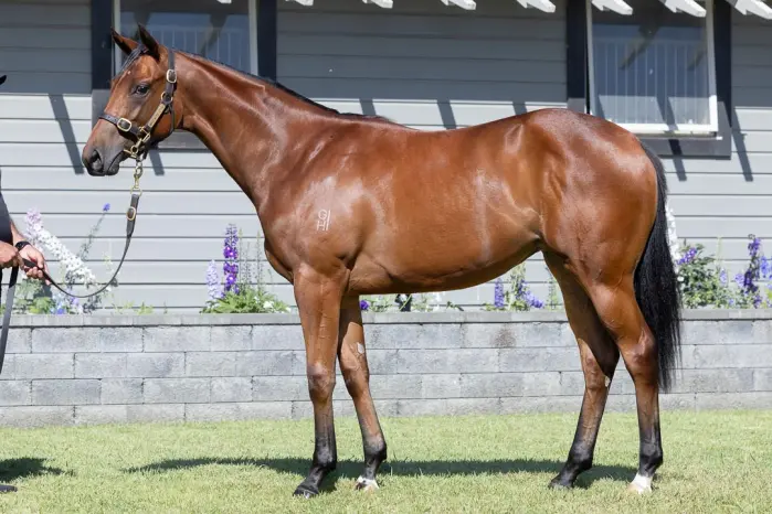 HELLO YOUMZAIN (FR) (Bay 2016-Stud in France 2021, NZ 2021). 5 wins-2 at 2-at 6f, Royal Ascot Diamond Jubilee S., Gr.1. Half-brother to SW Royal Youmzain. Sire of 42 rnrs, 17 wnrs. His oldest SH-bred progeny are 2YOs and inc the placegetters Hello Romeo, etc. His NH-bred progeny inc SW Misunderstood (ParisLongchamp Prix des Chenes, Gr.3), Electrolyte, SP Kullazain, Afentiko and of Allee de Bercy, Francescoli, Good Speed, etc. 1st dam KATIE'S CHOICE, by Redoute's Choice. Placed in Aust. Half-sister to Sebrakate, Quattro Katie, Walk the Streets (dam of STROLL). This is her seventh foal. Her sixth foal is a 2YO. Her fifth foal is an unraced 3YO. Dam of three foals to race, inc:- Holy Racket (g by Swiss Ace). 5 wins 955m to 1200m, A$221,300, to 2024-25, MVRC 55 Second Challenge Heat H., Musk Creek Farm H., 3d MVRC Legacy Centenary H., Ladbrokes 55 Second Challenge. Yulong Ready (c by More Than Ready). Placed at 2 in Aust. 2nd dam KAKAKAKATIE, by Zeditave. 5 wins at 1200m, A$169,840, AJC PJ Bell H., L, Wenona Girl H., L, STC Golden Slipper Festival H., 3d STC Research S., Gr.3, AJC Nivison H., L. Half-sister to Go Kate Go (dam of ACE OF DIAMONDS). Dam of 13 named foals, 12 to race, 9 winners, inc:- Sebrakate (Sebring). 6 wins-3 at 2-1000m to 1200m, A$322,815, VRC Cobcroft National Jockey Trust 2YO P., SAJC Luke Williams Bucks 2YO P., Laughing Jack Wines 2YO P., MRC Patrick G Carey Racing H., 2d MRC Vain S., Gr.3, 3d MRC HDF McNeil S., Gr.3, 4th VRC Danehill S., Gr.2. Quattro Katie (Zoustar). 2 wins at 1000m, 1200m, CJC Speight's H., 3d CJC Canterbury Belle S., L. Zoumeteor. 5 wins at 1000m, 1200m, A$394,085, to 2023-24, GCTC Magic Millions Country Cup, BRC Membership on Sale Now H. Darhad - Dream Come True (H.K.). 2 wins at 1000m, HKJC HK Exchanges Challenge H., 2d City Tatt's RC Victory Vein 2YO P., HKJC Ireland Trophy. Walk the Streets. Winner at 1600m, 2d ATC TAB H. Dam of 3 winners- STROLL (Snitzel). 3 wins-2 at 2-at 1000m, 1200m, A$274,100, BRC Mode S., L, Bill Carter S., L, 3d BRC Vo Rogue P., Gr.3, GCTC Gold Pearl S. 3rd dam ST. KATE, by Danehill. 3 wins-2 at 2-at 1000m, 2d BTC Unequalled 2YO H. Half-sister to BONANOVA (dam of BONAICHI, PRIMA NOVA), TELESTO, FRATERNITY, St. Katherine (dam of KITTENS, SAINT ENCOSTA, SHEER TALENT). Dam of 12 foals, 11 to race, 7 winners, inc:- KAKAKAKATIE (Zeditave). 5 wins. See above. St Kiara. Winner at 1200m, 2d MRC Jack Elliott 2YO H. Grandam of- Believe in Magic (Not a Single Doubt). Winner at 2 at 1100m, 2d WRC Wakefield Challenge S., Gr.2, Auckland TR Norwegian Park 2YO S. Go Kate Go. Winner at 1100m, 3d ATC Bar Coluzzi H. Dam of 5 winners- ACE OF DIAMONDS (Swiss Ace). 5 wins-3 in succession-1200m to 1600m, S$324,010, to 2024, Singapore Guineas, L, Singapore 3YO Sprint, L, 3d Singapore 3YO Classic, L. Moeraki (El Roca). 2 wins at 1200m, NZ$45,525, HK$2,340,150, HKJC Purves Quaich H., Kalanchoe H., 3d Matamata RC Slipper S., Gr.3. |