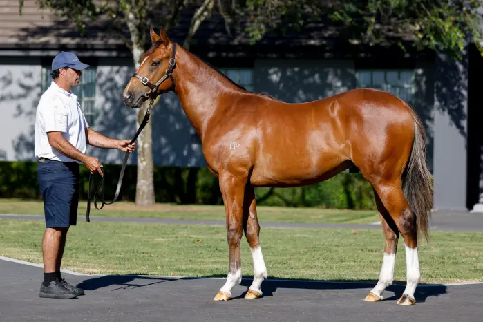 CHURCHILL (IRE) (Bay 2014-Stud 2018). 7 wins-5 at 2, The Two Thousand Guineas, Gr.1. Sire of 552 rnrs, 296 wnrs, 28 SW. His SH-bred progeny inc SW Attrition (MRC Toorak H., Gr.1), Churchillian, First Immortal, Imperialist, SP Robusto, Cigar Flick, Jenny Jerome, Arugamama, Super Chilled, Madame Odette, Narbold, etc. His NH-bred progeny inc SW Blue Rose Cen, Vadeni, Ladies Church, The Foxes, Survie, etc. 1st dam EVA DANIELA, by I Am Invincible. Winner at 1280m in Aust. Three-quarter-sister to Dancing Alone. This is her first foal. 2nd dam JEMERICA, by Captain Rio. 3 wins to 1200m, A$104,145, MRC Champagne Pommery Masters H., 2d MRC Cove Hotel H. Sister to IL QUELLO VELOCE, DONNA CATTIVA, blood-sister to TERRAVISTA, half-sister to Miles of Krishan (dam of GROWING EMPIRE), Menagerie (dam of HOLMES A COURT). Dam of 3 named foals, all winners- Piccola Signora. 4 wins at 1600m, 1800m, A$218,440, WATC Tabtouch-Better Your Bet H., Drummond Golf H., Seacorp H., 4th WATC Belmont Oaks, L. 3rd dam NISHAANI, by Gold Brose. Unraced. Sister to Parfore (dam of TERRAVISTA, TIGER TEES, BALL OF MUSCLE, OUR LUKAS, SUPER EASY), Golden Sparkle (dam of MOSSE). Dam of 8 named foals, all winners, inc:- IL QUELLO VELOCE (Captain Rio). Champion 2YO in NZ in 2007-08. 5 wins-2 at 2-1100m to 1400m, NZ$482,175, A$13,250, Manawatu Sires' Produce S., Gr.1, Manawatu Challenge S., Gr.3, 2d New Zealand Two Thousand Guineas, Gr.1, Matamata Breeders' S., Gr.2, Manawatu Challenge S., Gr.3, Taranaki Cup, Gr.3, 3d ARC Diamond S., Gr.1, Hawkes Bay Gold Trail S., Gr.3, 4th Hawkes Bay Mudgway Partsworld S., Gr.1, Egmont RC Postponed Classic, Gr.3. Grandam of- Gin a Tonic (Better Than Ready). 2 wins at 2 at 1200m, A$150,100, in 2023-24, BRC Stradbroke Season Sale 2YO H., Sky Racing 2YO P., 3d SCTC Ken Russell Memorial Classic, Gr.3, GCTC Quinn Family Law H. DONNA CATTIVA (Captain Rio). Winner at 2 at 1600m, A$91,380, SAJC Oaklands P., L, 2d VRC Gibson Carmichael S., L. Producer. Miles of Krishan (Snitzel). 5 wins 1200m to 1700m, A$269,810, VRC Murray Region H., Wilson Medic One H., MRC Grand Hotel Frankston P., 3d SAJC Queen of the South S., Gr.2. Dam of 2 winners- GROWING EMPIRE (Zoustar). 4 wins in succession-2 at 2-at 1100m, 1200m, A$2,919,650, to 2024-25, MRC HDF McNeil S., Gr.3, SAJC Breeders' S., Gr.3, VRC Poseidon S., L, MVRC Valley Pearl S., L, 2d MVRC Manikato S., Gr.1, ATC Prague Yearlings 2YO P., 3d ATC The Everest, Gr.1, VRC Coolmore Stud S., Gr.1. Dancing Alone (I Am Invincible). 6 wins-4 in succession-at 1000m, 1100m, A$220,400, to 2023-24, MRC Catanach's Jewellers Trophy H., 3d VRC Furphy Sprint, Gr.3, 4th ATC Toy Show H., Gr.3. Menagerie. Winner at 1400m in Aust. Dam of-