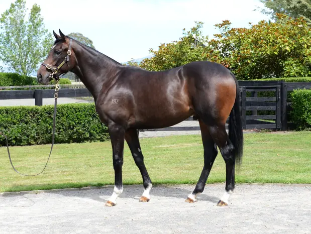 BRAZEN BEAU (AUS) (Brown 2011-Stud 2015). 5 wins-2 at 2, VRC Coolmore Stud S., Gr.1. Leading Sire of 2YOs in NZ in 2020-21. Sire of 526 rnrs, 318 wnrs, 26 SW, inc. SW Zapateo (ATC Galaxy H., Gr.1), On the Bubbles, Pretty Brazen, Exploring, The Ridler, Colada - Prince of Frog (H.K.), General Beau, Vadream, Windstormblack - Campione (H.K.), Sartorial Splendor, Dubai Station, Belsielle, Brazen Style, etc. 1st dam HIGH IMPULSE, by High Chaparral. Winner at 1800m in Aust. Half-sister to Fight and Defend. This is her fourth living foal. Her third foal is an unraced 3YO. Dam of two foals to race. 2nd dam STEAMHEAT, by Broad Brush. Unraced. Half-sister to NORTHERN METEOR, QUEEN OF THE HILL, RABBUKA, Justlikedawg, Comical Smile (dam of SMART MISSILE, KISS FROM A ROSE, SURGE AHEAD). Dam of 12 foals, all raced, 7 winners, inc:- Fight and Defend (Encosta de Lago). 2 wins at 1400m, 1550m, A$82,150, AJC Stylish Century H., 3d STC Gloaming S., Gr.3, 4th AJC Spring Champion S., Gr.1. Manila Heat. 5 wins 1822m to 3600m, A$87,020, SAJC Allan Scott Park H. Muzareta. 2 wins at 1500m, 1600m in Aust. Dam of 2 winners- Cristalina Lago. 2 wins-1 at 2-at 1010m, 1400m, MRC Polytrack H. Molten Rock. Winner at 1600m in Aust. Dam of- Mount Rinjani. Winner at 1519m in 2024-25, MVRC Drummond Golf P. Mixed Emotions. Winner at 1200m in Aust. Dam of 3 winners- Daily Beauty. 5 wins at 1200m, 1650m, HK$4,603,700, HKJC Orchid H. 3rd dam Explosive, by Fappiano. 2 wins at 6½f, 1m, 2d Sam Houston Park Prairie Dawn S., L. Three-quarter-sister to EBROS, half-sister to Forli Niner (dam of THE NINER ACCOUNT). Dam of 13 foals, 7 to race, 6 winners, inc:- NORTHERN METEOR (Encosta de Lago). 3 wins in succession at 1200m, 1250m, A$532,480, VRC Coolmore Stud S., Gr.1, City Tatt's RC Brian Crowley S., L, 2d AJC TJ Smith S., Gr.1, 4th VRC Newmarket H., Gr.1. QUEEN OF THE HILL (Danehill). 5 wins-1 at 2 and 3 in succession-to 1200m, A$296,000, MRC Thoroughbred Club S., Gr.3, How Now S., Gr.3. RABBUKA (Giant's Causeway). 16 wins-3 in succession-1400m to 3560m, A$620,930, STC Festival S., L, Frank Underwood Cup, L. Comical Smile. Unraced. Dam of 6 winners- SMART MISSILE (Fastnet Rock). 3 wins in succession-2 at 2-to 1200m, A$541,150, ATC Todman S., Gr.2, 2d ATC Golden Rose S., Gr.1. Sire. KISS FROM A ROSE (Encosta de Lago). 4 wins 1100m to 1250m, A$184,100, ATC Triscay S., L, 3d AJC Nivison H., L. Grandam of- PALAISIPAN (So You Think). 7 wins-4 in succession-1100m to 1400m, A$1,116,900, Qld Tatt's RC Tattersall's Tiara, Gr.1, BRC Dane Ripper S., Gr.2, 3d Qld Tatt's RC Tattersall's Tiara, Gr.1. SURGE AHEAD (Danehill Dancer). 5 wins 1112m to 1800m, A$257,450, VRC Connoisseur S., L, 3d MVRC Alister Clark S., Gr.2. My Moccasin. Unraced. Grandam of-