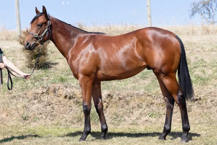 COOL AZA BEEL (NZ) (Brown 2017-Stud 2021). Champion 2YO in New Zealand in 2019-20. 4 wins at 2 at 800m, 1200m, NZ$707,560, ARC Diamond S., Gr.1, Karaka 2YO Million, RL, BOP RC Matamata Veterinary Services 2YO S., 2d Matamata RC Slipper S., Gr.3, 4th Counties Challenge S., L. Grandson of a half-sister to SW Malaguerra (VRC Darley Classic, Gr.1). Sire of Cool Aza Rene, etc. His oldest progeny are 2YOs. 1st dam HUSSON BOOTS, by Husson. 2 wins at 1000m, Ipswich TC Ausco Modular H., 2d BRC Darley Kingsford Smith Cup Day P., Gallopers Sports Club P., Graham Turner H., GCTC Eqpay H., Ipswich TC City of Ipswich H., 3d BRC James Boags P., Christmas Functions H., Superhero Saturday P. Half-sister to NEW PREDATOR, Vivy Air. This is her fourth foal. Her third foal is a 2YO. Her second foal is an unraced 3YO. Dam of one foal to race- She's Rich Enuff (f by Rich Enuff). 2 wins at 1406m to 2023-24 in Aust. 2nd dam HEAD OVER HEELS, by Fastnet Rock. Winner at 1107m, 2d VRC Johnstaff H., SAJC Allan Scott Park Morphettville H., MVRC Pulse Pharmacy H., 3d MRC Love a Show 2YO H. Half-sister to PRESENTLY, Another Time, Gifted Lass (dam of SERENA MISS). Dam of 8 named foals, 7 to race, all winners, inc:- NEW PREDATOR (New Approach). 5 wins 1200m to 1600m, R1,874,500, Turffontein Charity Mile, Gr.2, Greyville Drill Hall S., Gr.2, 2d Turffontein Dingaans H., Gr.2, Hawaii S., Gr.2, 3d Turffontein Horse Chestnut S., Gr.1-twice, Greyville Mercury Sprint, Gr.1, Turffontein Johannesburg Spring Challenge, Gr.2, 4th Greyville Gold Challenge, Gr.1, Turffontein Charity Mile, Gr.2, Johannesburg Spring Challenge, Gr.2, Greyville Drill Hall S., Gr.2, Turffontein Tony Ruffel S., Gr.3. Sire. Vivy Air (Hellbent). 2 wins-1 at 2-at 1212m, A$225,085, to 2023-24, 2d MRC Thousand Guineas Prelude, Gr.2, VRC Super Saturday P., 3d MRC Sandown Guineas, Gr.2, MVRC Alexandra S., Gr.3. 3rd dam CENTAINE'S GIFT, by Centaine. 5 wins 1850m to 2100m, STC Eveleigh H., 2d AJC Evening Peal H., STC Gnapur H. Half-sister to Notwithstanding, The Almighty One. Dam of 10 foals, 8 to race, 5 winners, inc:- PRESENTLY (Unbridled's Song). 10 wins-1 at 2-1000m to 1250m, A$476,320, AJC Hall Mark S., L, Razor Sharp H., L, Show County H., L, NSW Tatt's RC Carrington S., L, 2d STC Frederick Clissold S., Gr.3, Star Kingdom S., Gr.3, AJC Razor Sharp H., L, 3d STC Satellite S., L. Another Time (Gilded Time). Winner at 2 at 1000m, 2d Canberra RC Black Opal S., Gr.3. Producer. Snippet's Gift. Winner at 1200m in Aust. Grandam of- Coal Crusher (Turffontein). 9 wins-4 in succession-1000m to 1400m, A$1,810,140, to 2023-24, Newcastle JC Herald Hunter, 2d ATC Expressway S., Gr.2, Sydney S., Gr.3, 3d ATC Star Kingdom H., Gr.3. Gifted Lass. Raced twice. Dam of 6 winners- SERENA MISS (Iffraaj). 3 wins-2 at 2-1000m to 1400m, NZ$214,375, Waikato RC James & Annie Sarten Memorial S., Gr.2, Matamata Breeders' S., Gr.2, 2d WRC Wakefield Challenge S., Gr.2, Hawkes Bay Gold Trail S., Gr.3, 3d New Zealand Two Thousand Guineas, Gr.1. Dam of-